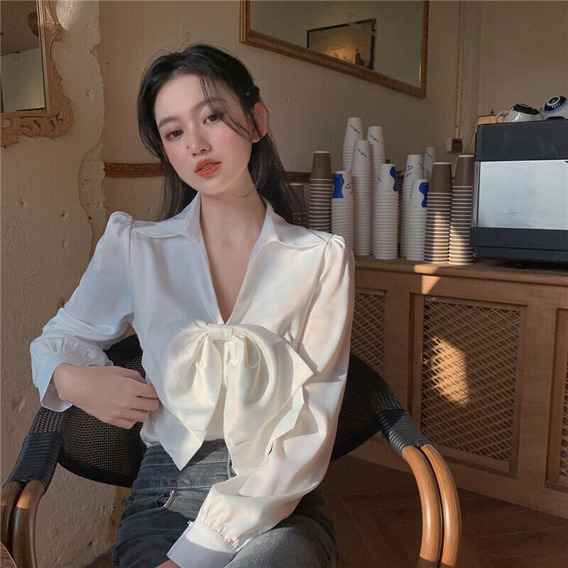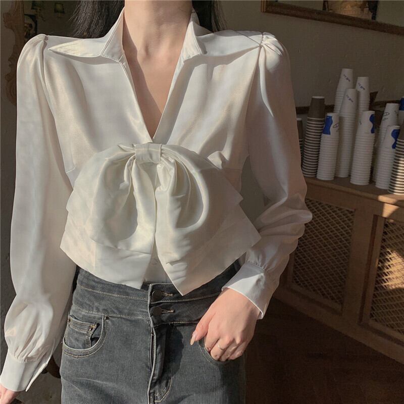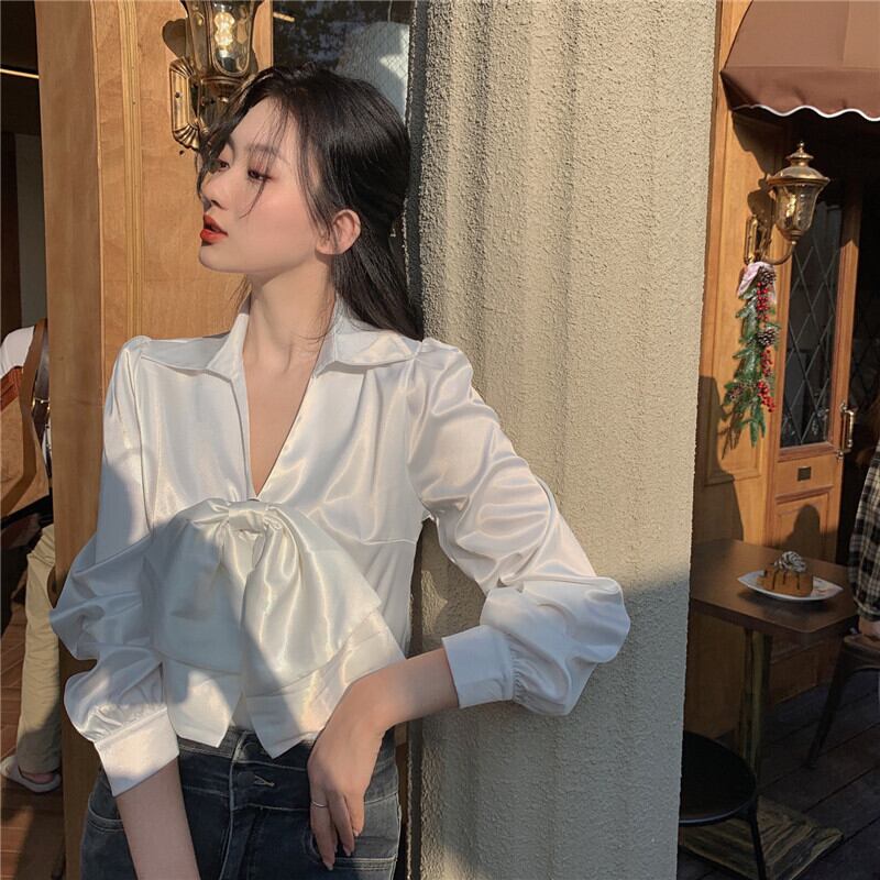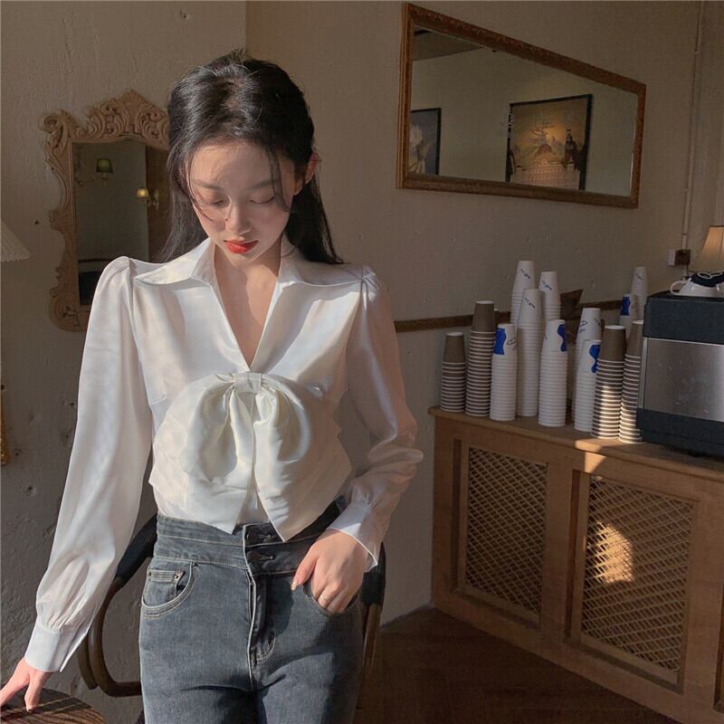 シャツ オータムウィンターVネックホワイトトップス ロング 秋物 冬物 ドラファッションホール54771318035