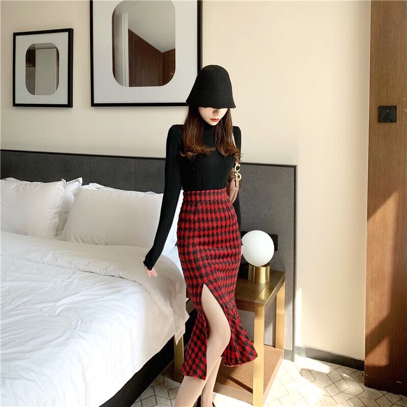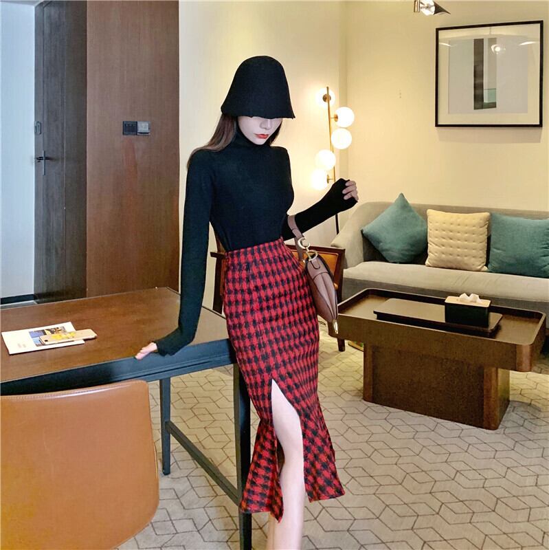 オータムウィンターツィードレッド格子柄スカート レディース 秋物 冬物 ドラファッションホール70245400668