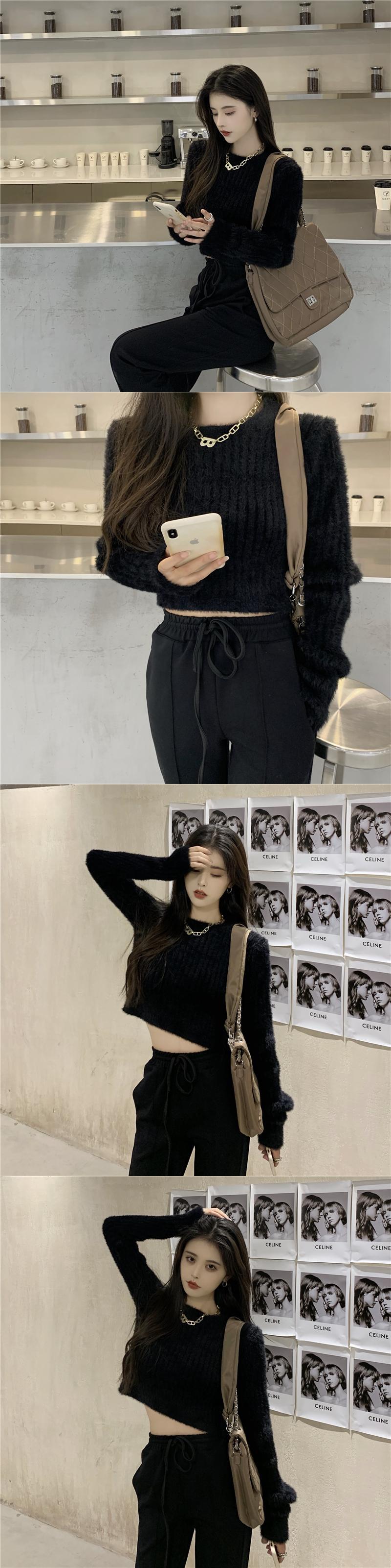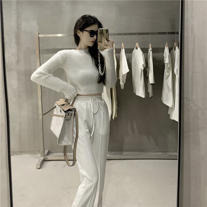 カジュアルオータムウィンターショートセーター ハイウェストウェストワイドレッグ 秋物 冬物 ワイドパンツ ドラファッションホール34409201534