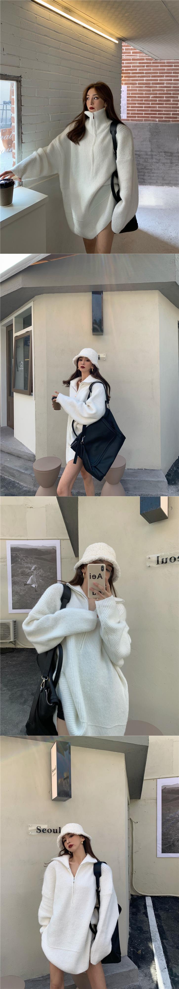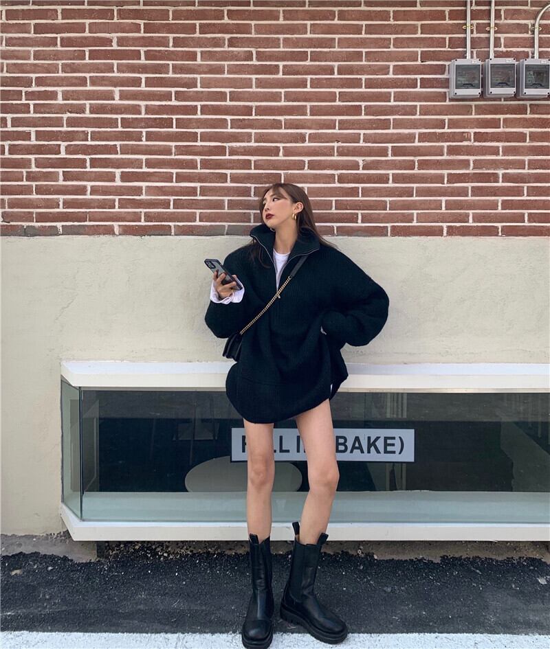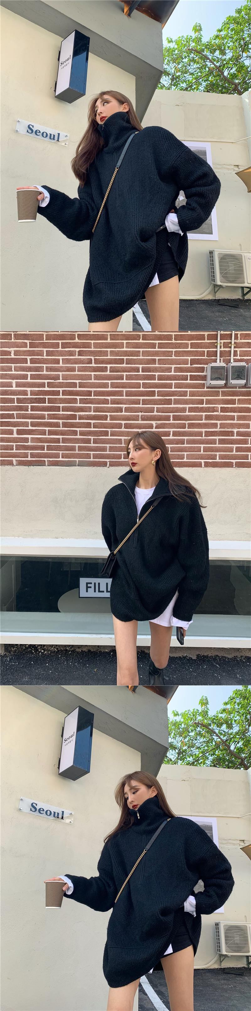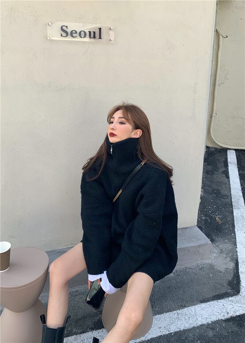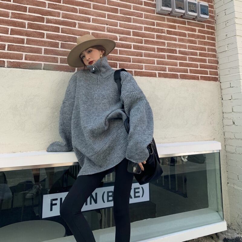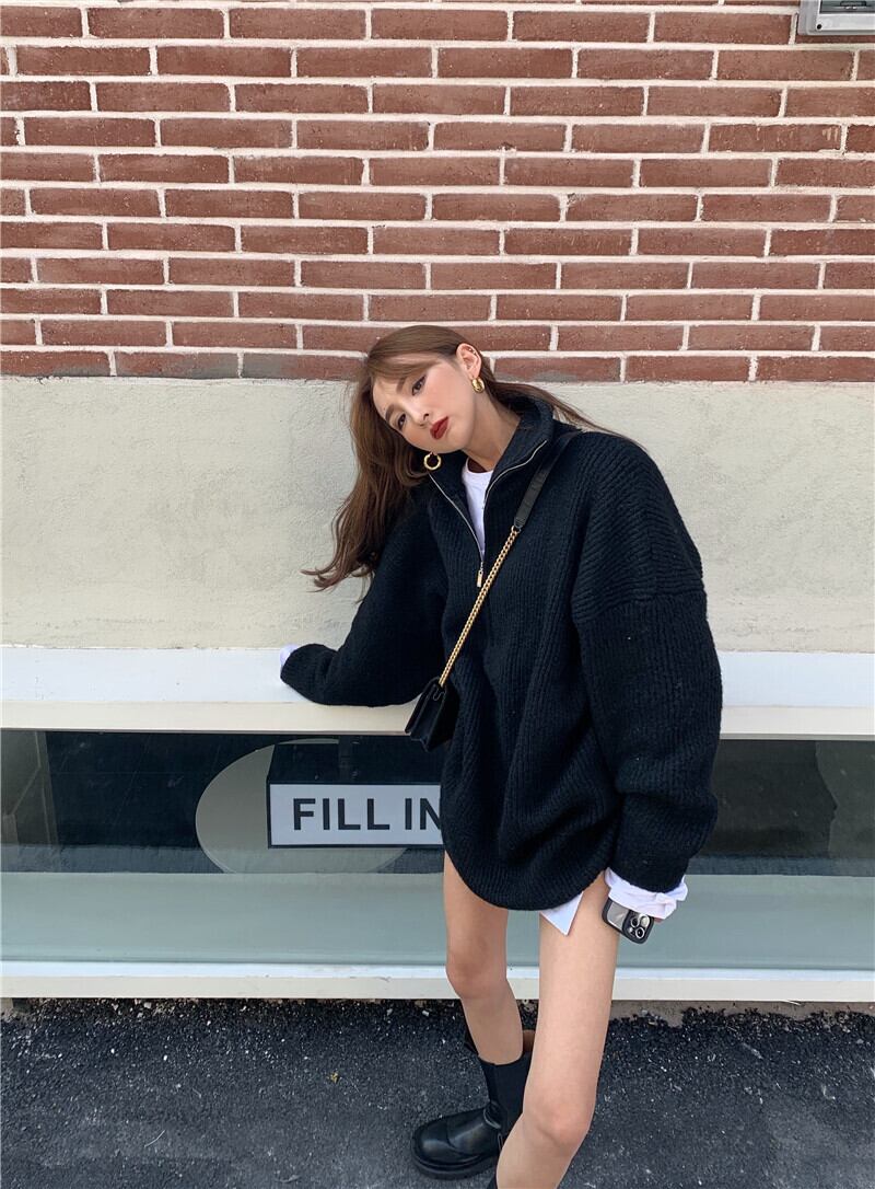 ルーズセーター レディースオータムウィンタージッパーカラートップス ストリート 秋物 冬物 ドラファッションホール5913770091