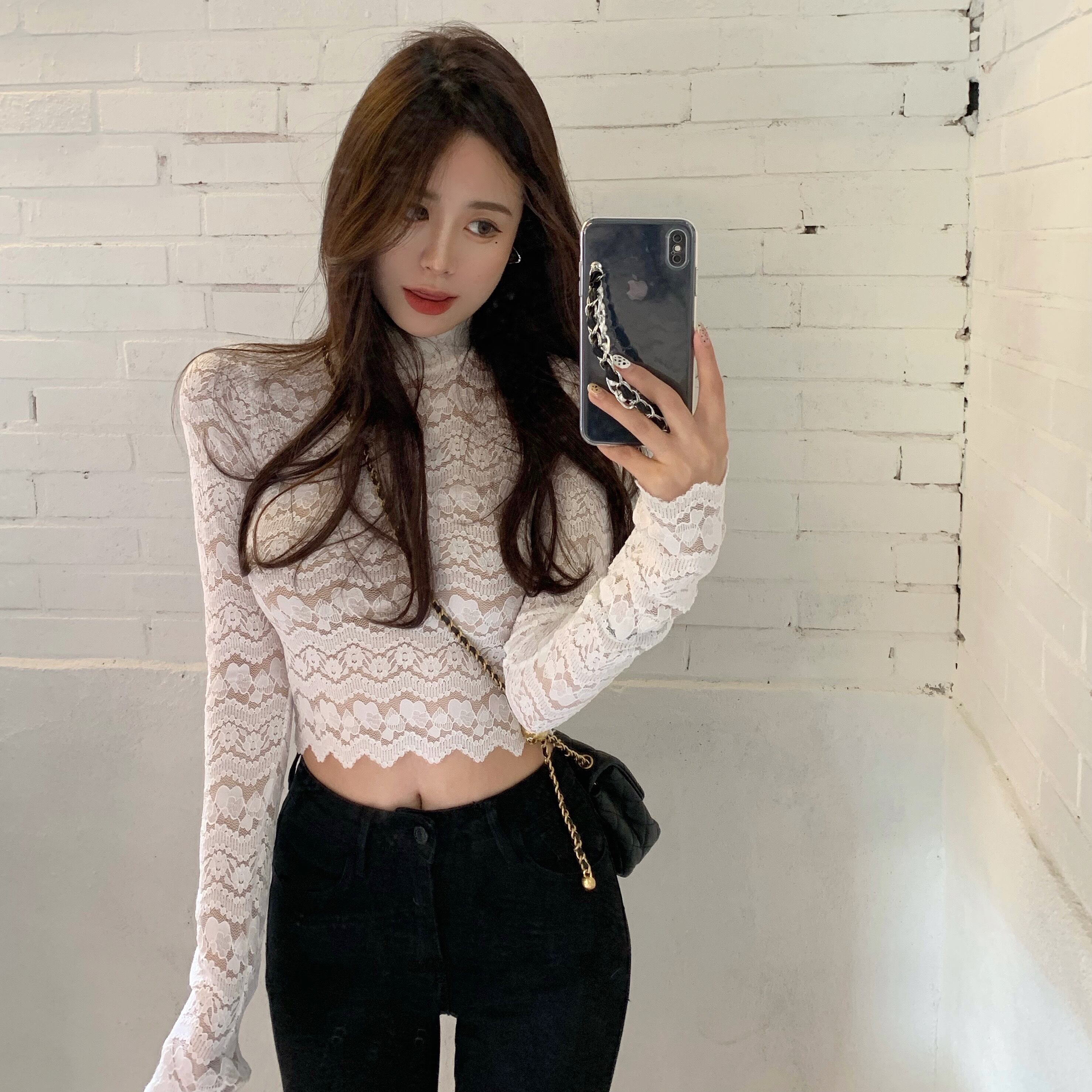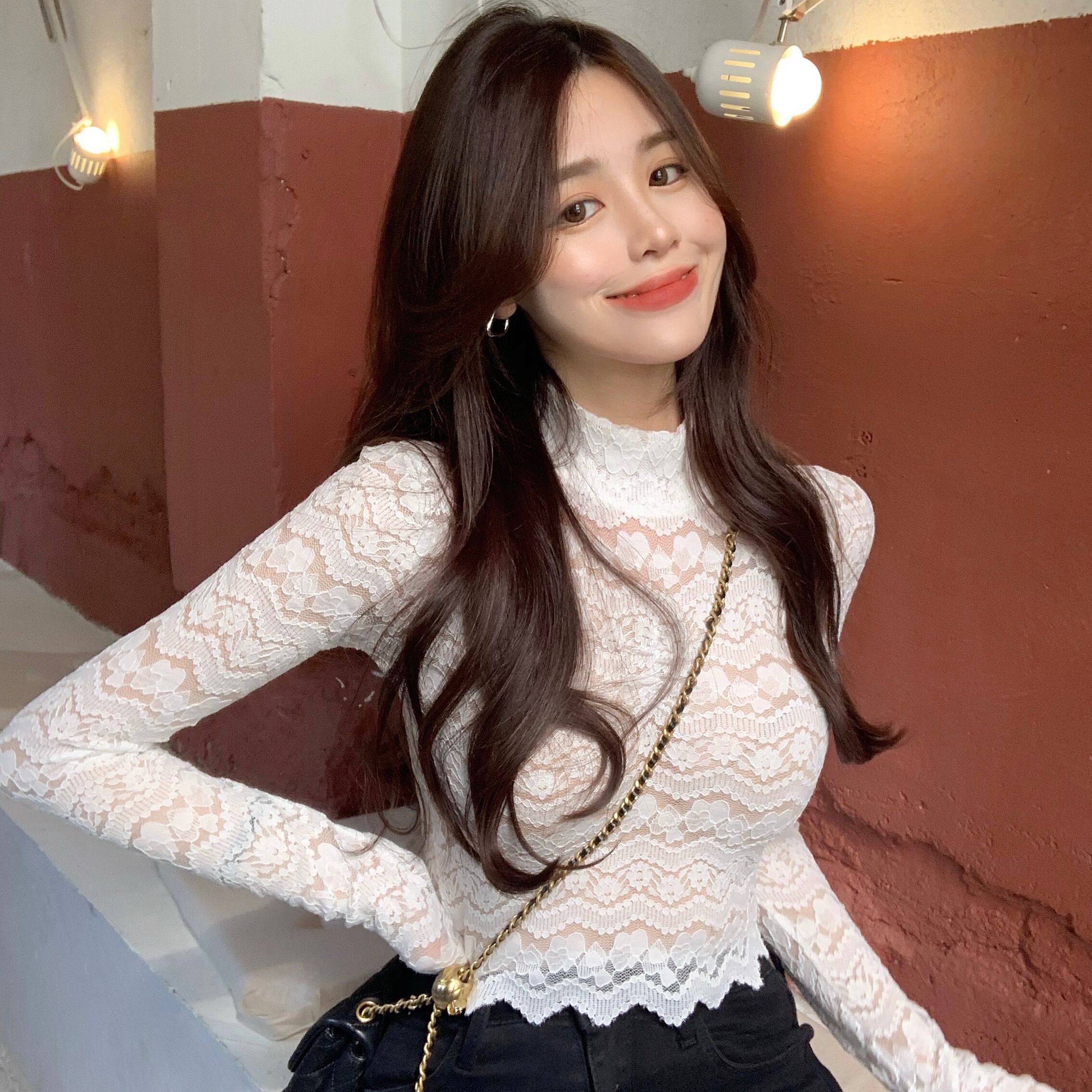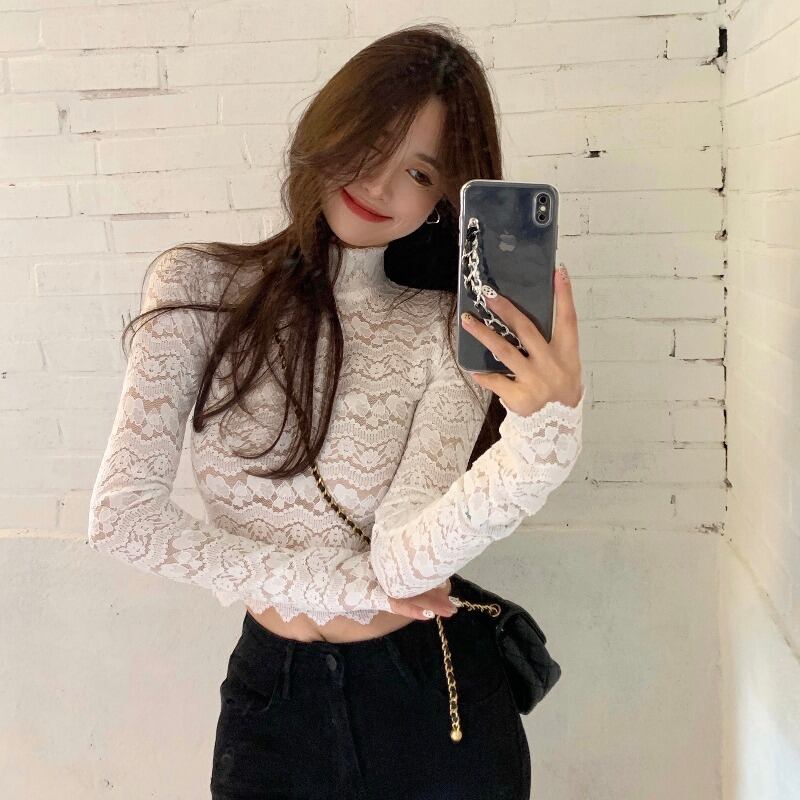 レースシャツ オータムウィンタースリムトップス ロング 秋物 冬物 ドラファッションホール70478228306