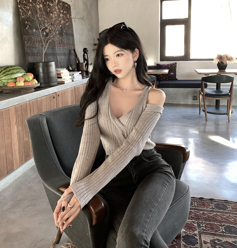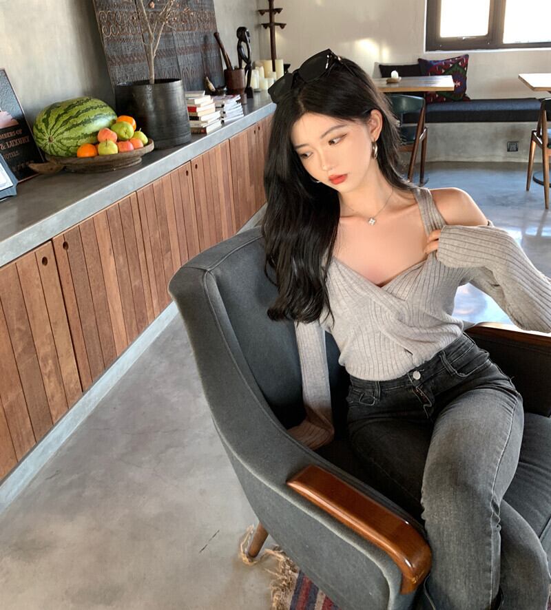 オータムウィンタースタンダードスタイルニットセーター スリムトップス レディース ロング レトロ 秋物 冬物 ドラファッションホール9620950811