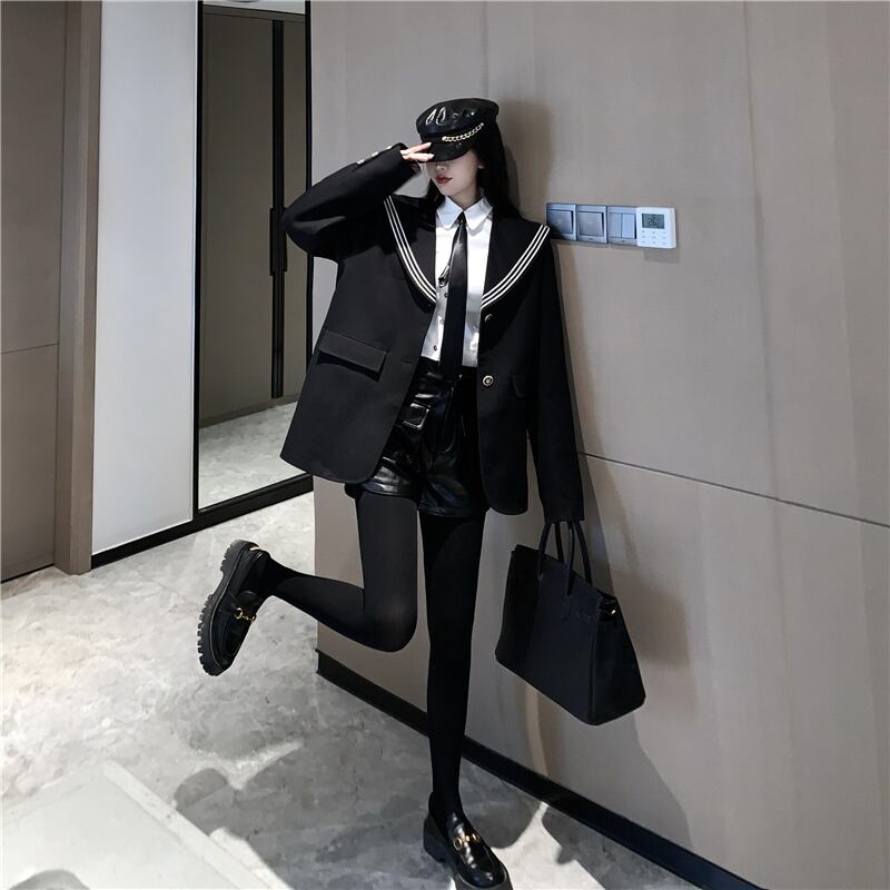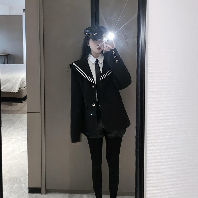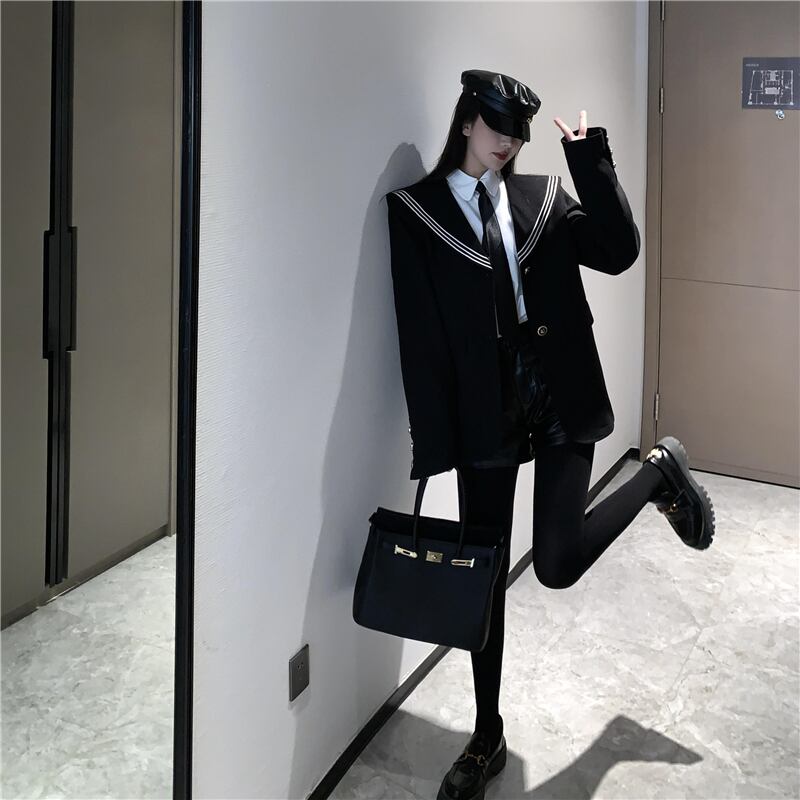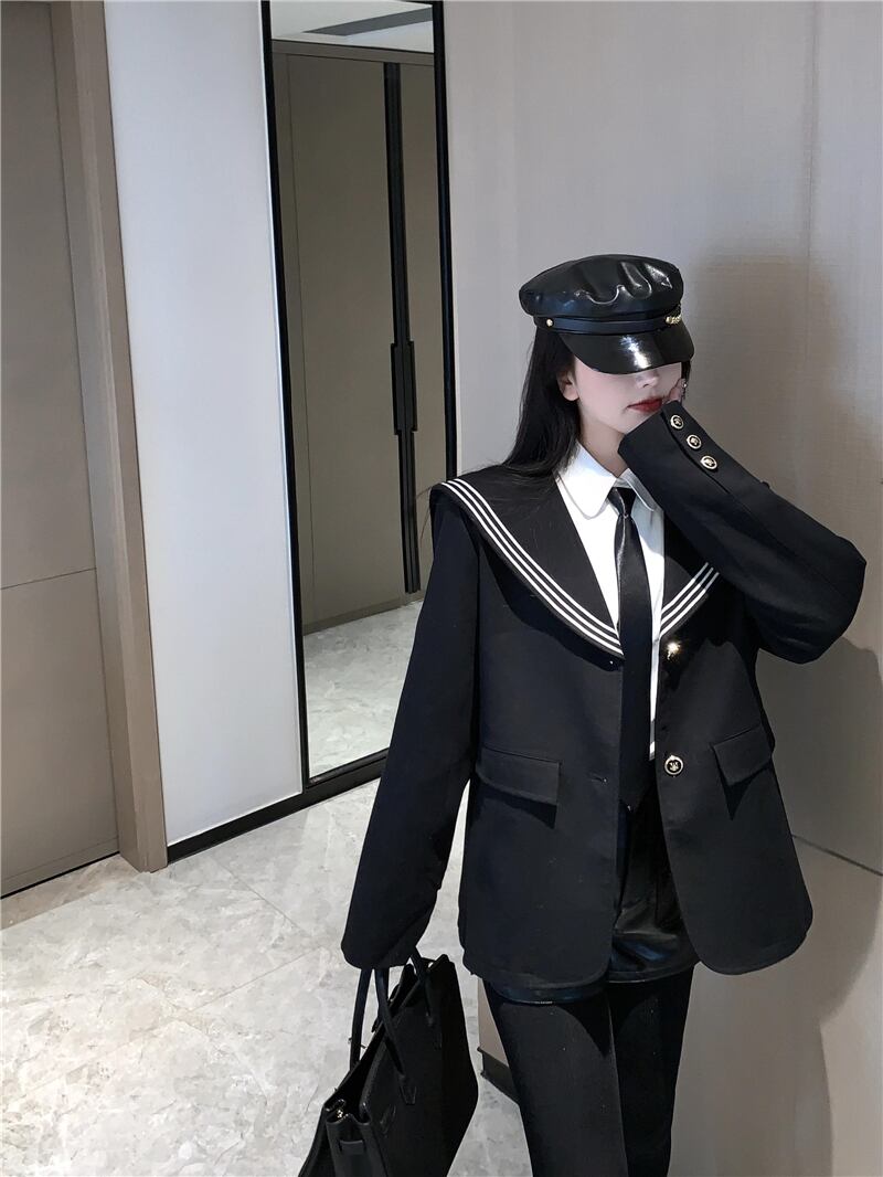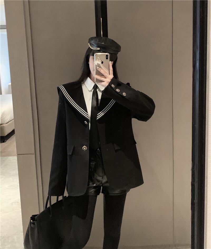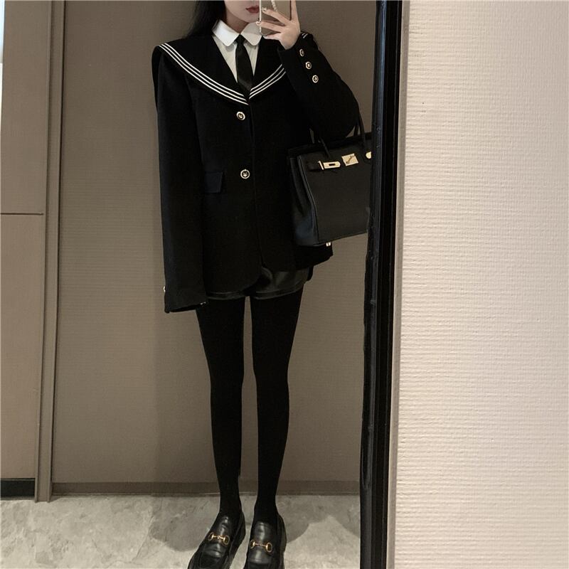 オータムウィンターブラックルーズネイビーカラー長袖スリーブスタイルジャケット レディース ロング 秋物 冬物 ドラファッションホール683772773