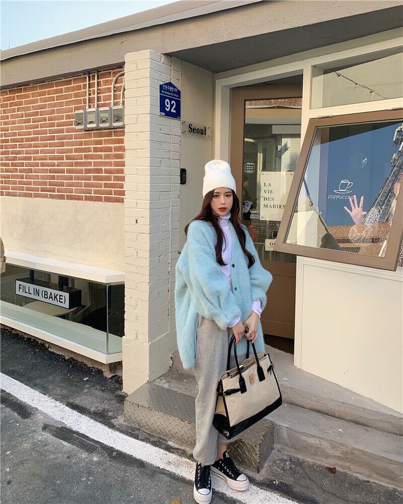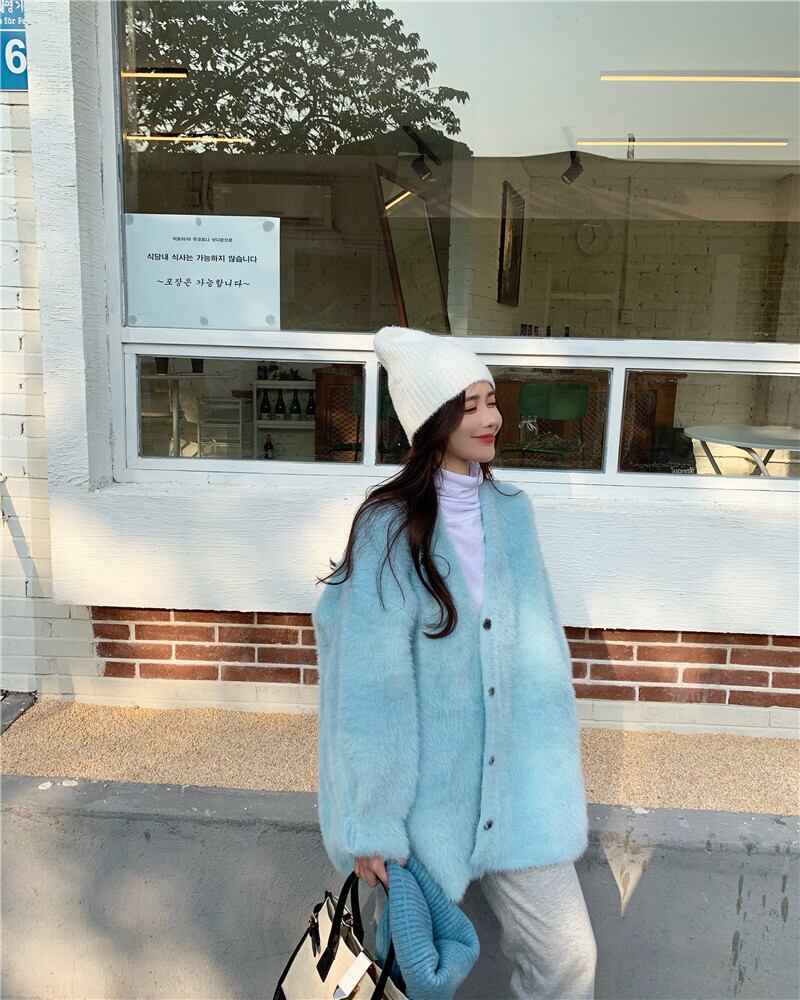 カーディガンセーター オータムウィンターVネックニットジャケット ロングルーズ 秋物 冬物 ドラファッションホール70031359617