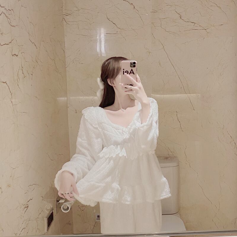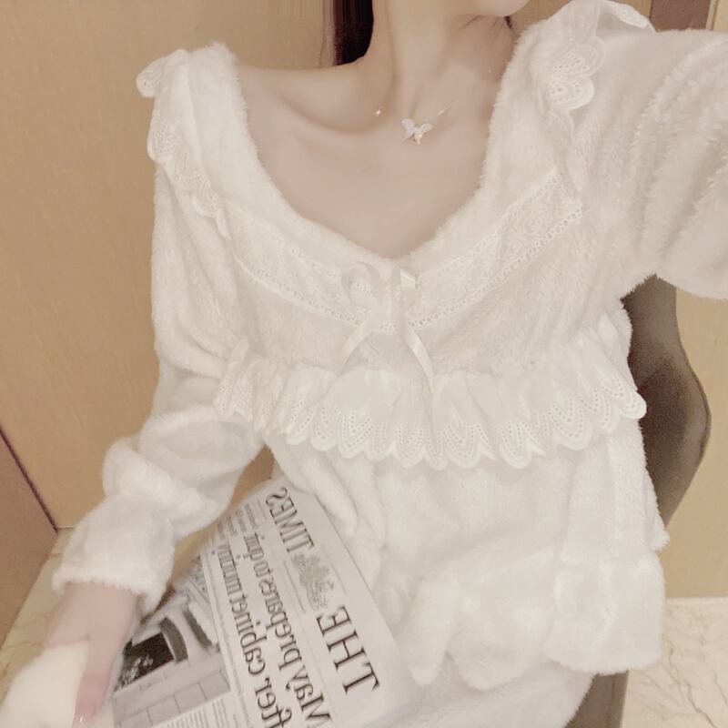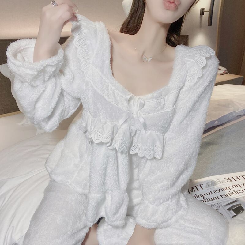 レディースオータムウィンターソリッド カラーホワイトレース ロング 大人ガーリー スウィート キュート カジュアル 秋物 冬物 ソリッドカラー ドラファッションホール59060749131