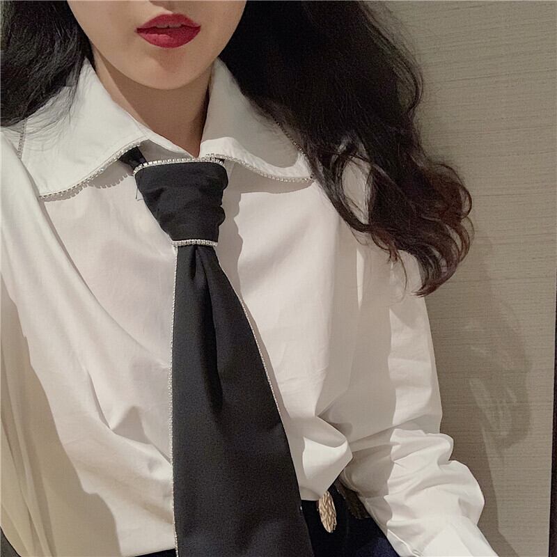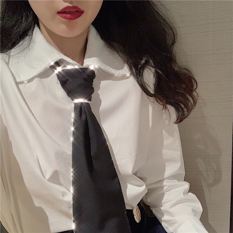 ラインストーンルーズホワイトシャツ レディースオータムウィンタースタイルブラックスタンダードパンツ ブーツ レトロ 靴 シューズ 秋物 冬物 ドラファッションホール55729690990