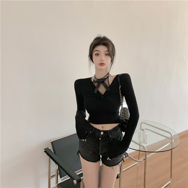 シャツ オータムウィンターVネックニットセーター レースセット 秋物 冬物 ドラファッションホール33202986719