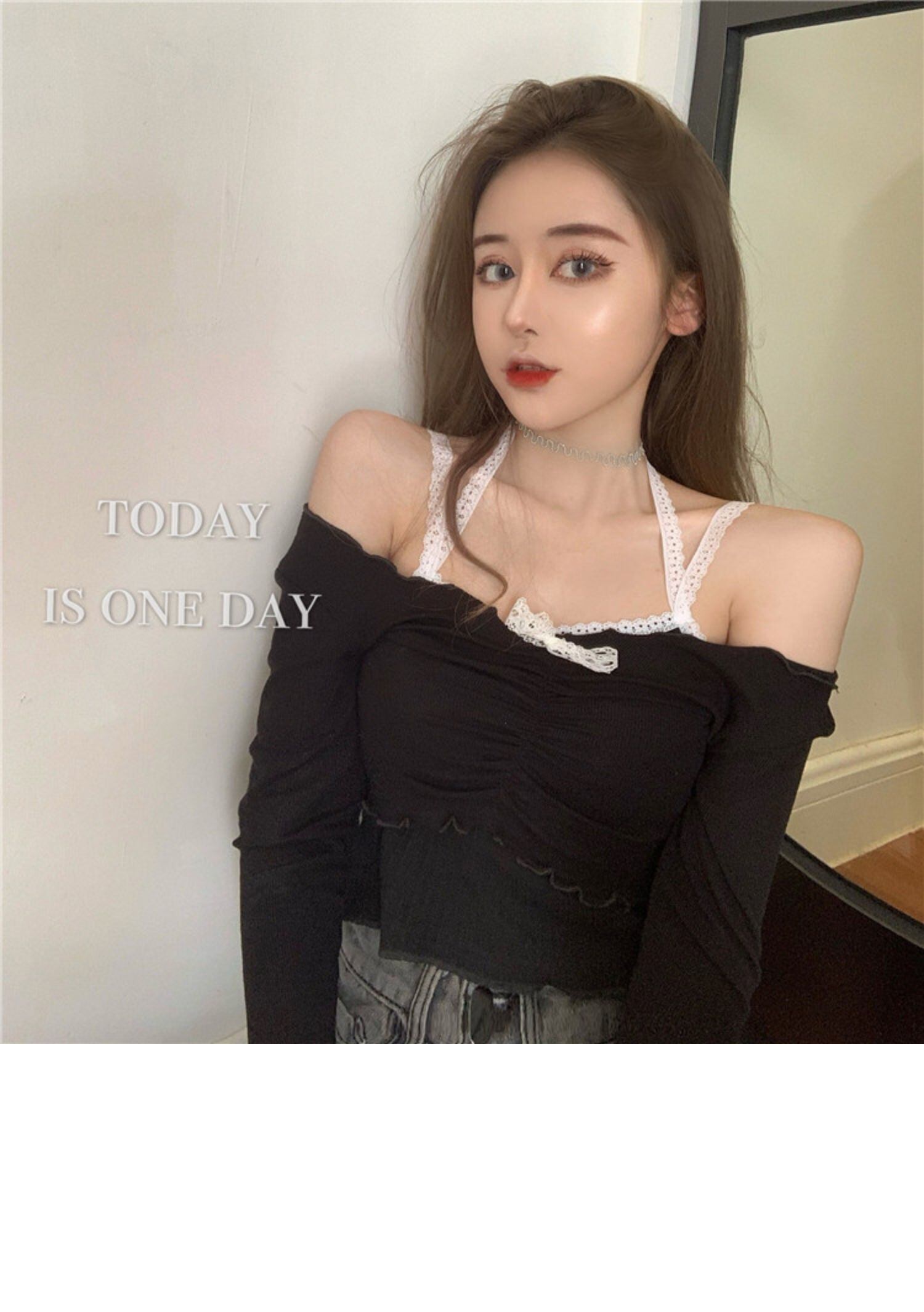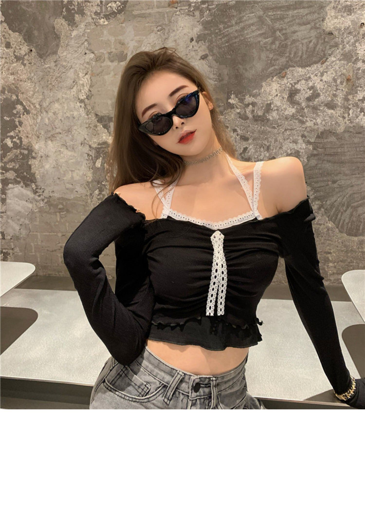 スリムシャツ レディーススプリングホルターレースTシャツ ショートレッドトップス ロング 春物 ドラファッションホール79809315100