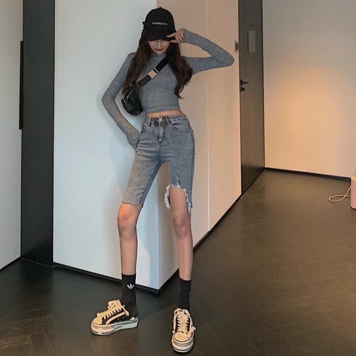 スプリングサマースタイルハイウェストウェストストレッチパンツ 薄手ジーンズ エラスティック 伸縮 春物 夏物 ドラファッションホール41892998367