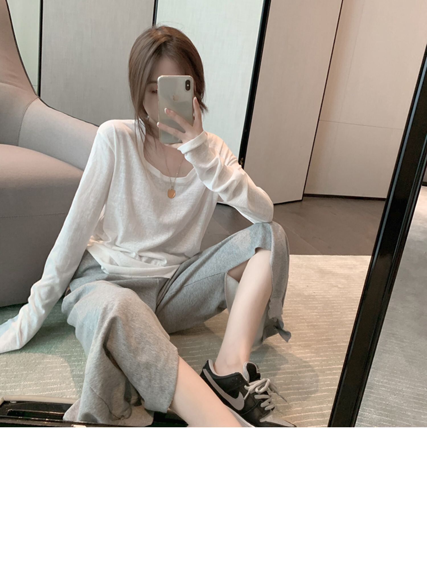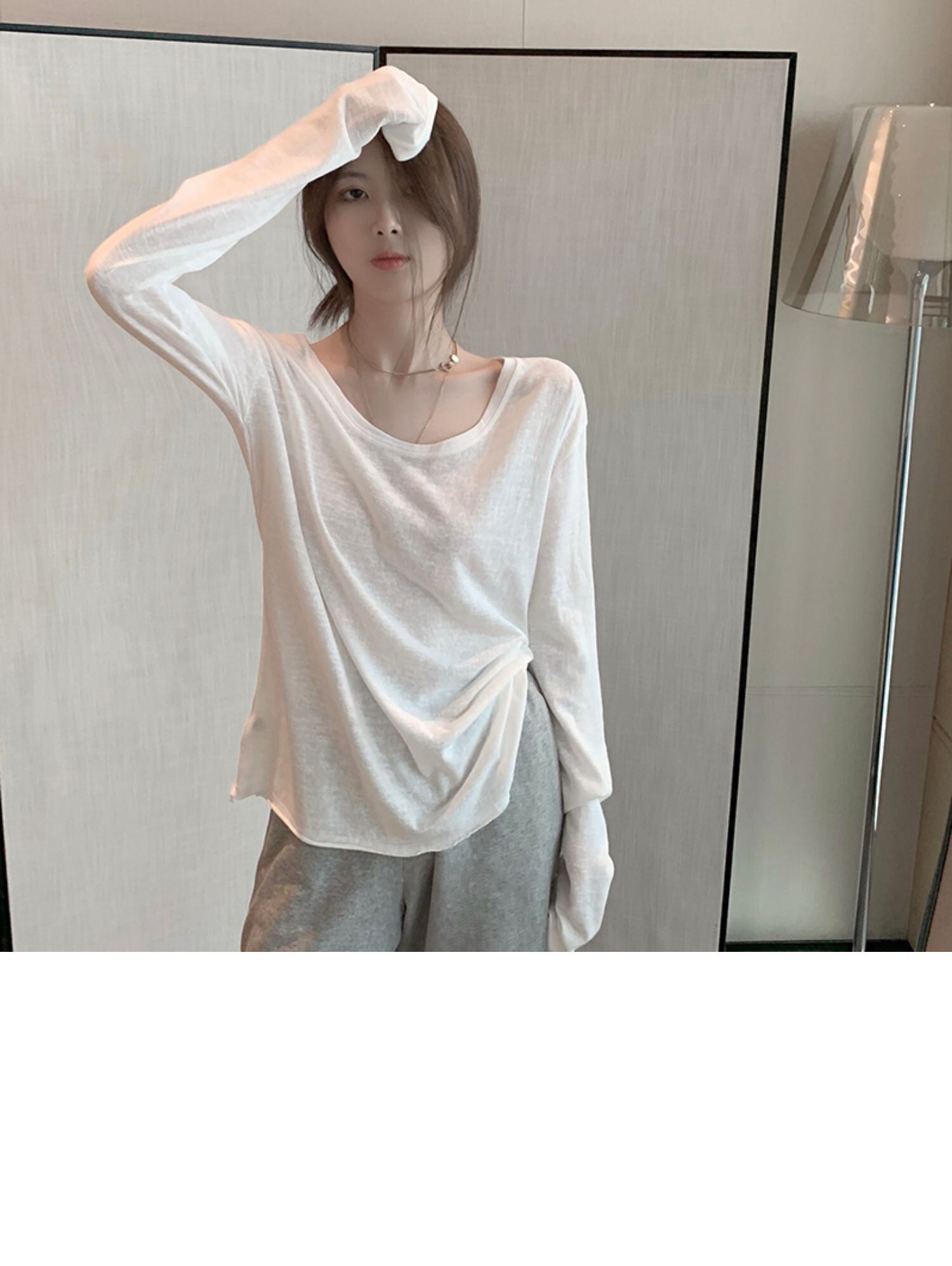 ホワイトTシャツ シャツ レディースソリッド カラーブラウス スタイルルーズ薄手 ロング ソリッドカラー ドラファッションホール88557595786