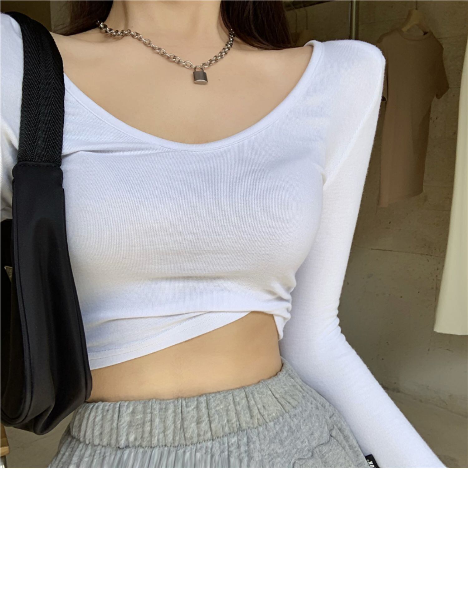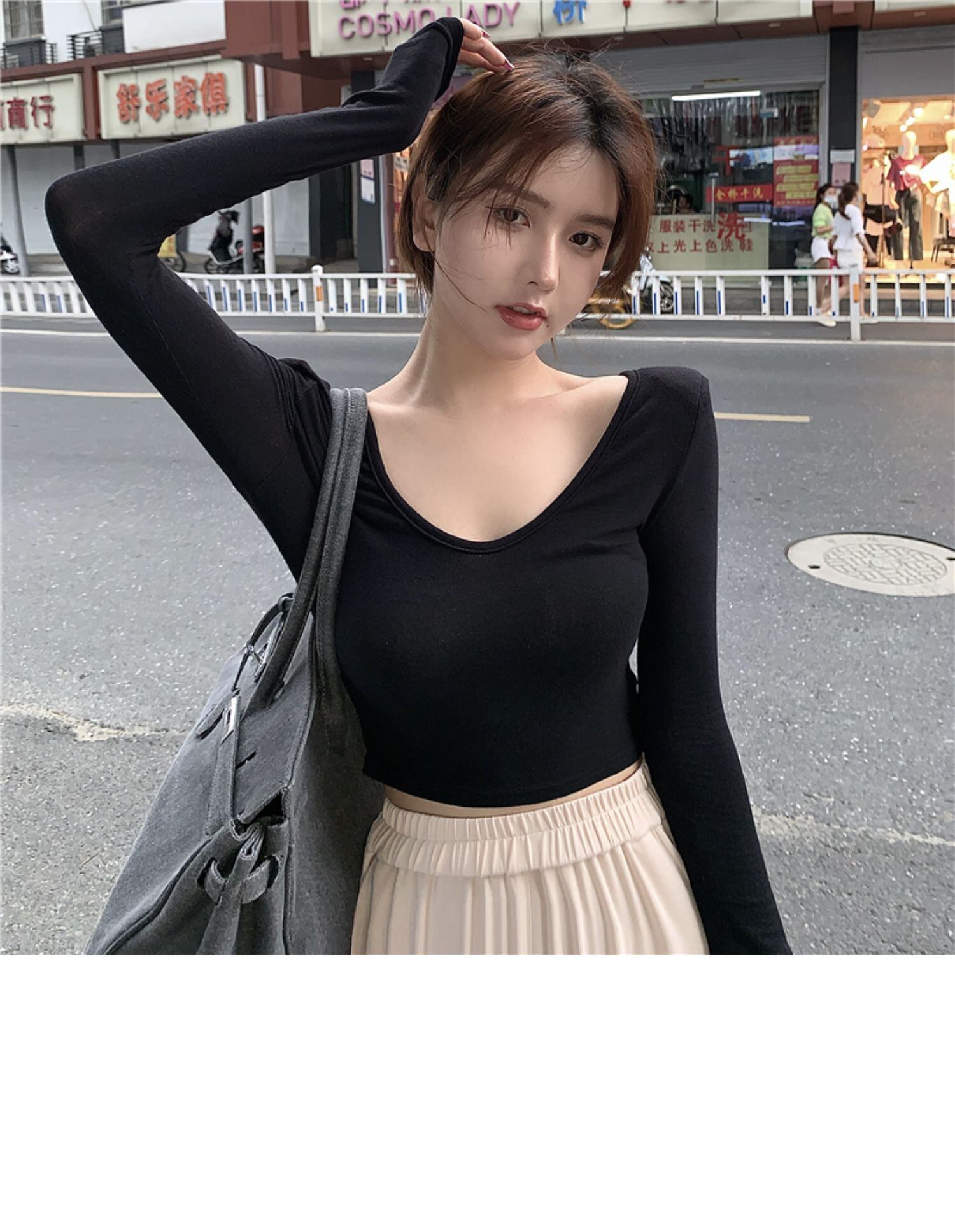 スリムシャツ レディーススプリングソリッド カラーTシャツ ショートクロップドレッドトップス ロング 春物 ソリッドカラー ドラファッションホール37550105009
