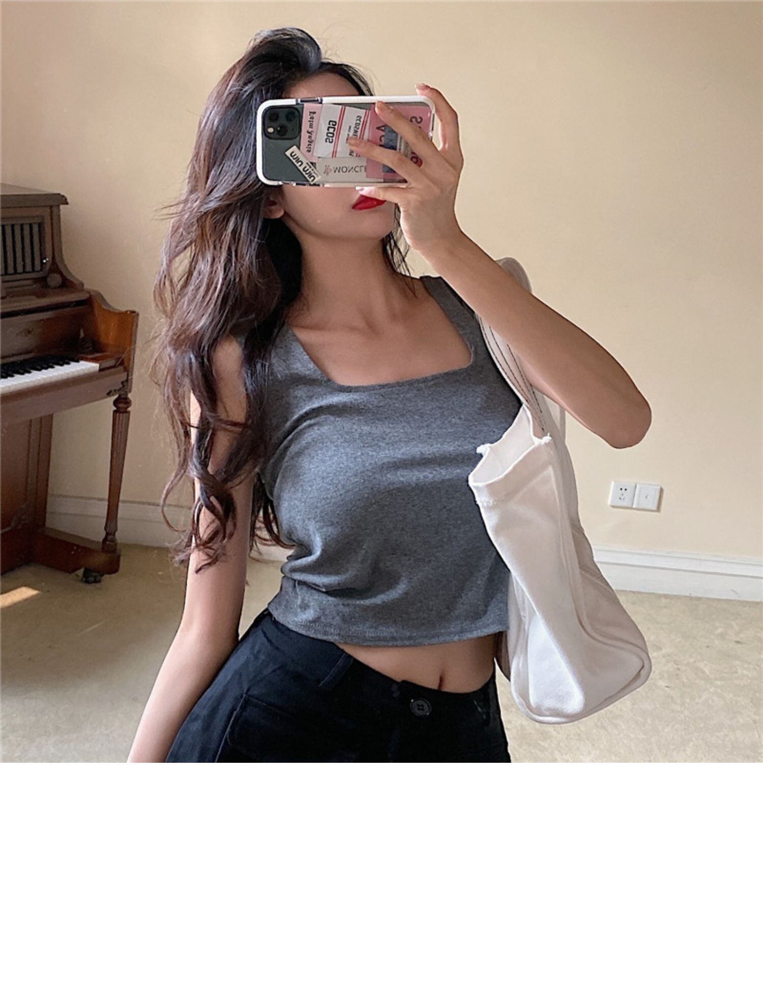スプリングサマーカラースリムスタイルショートレッドトップス レディース 春物 夏物 スクウェア ドラファッションホール47250540661