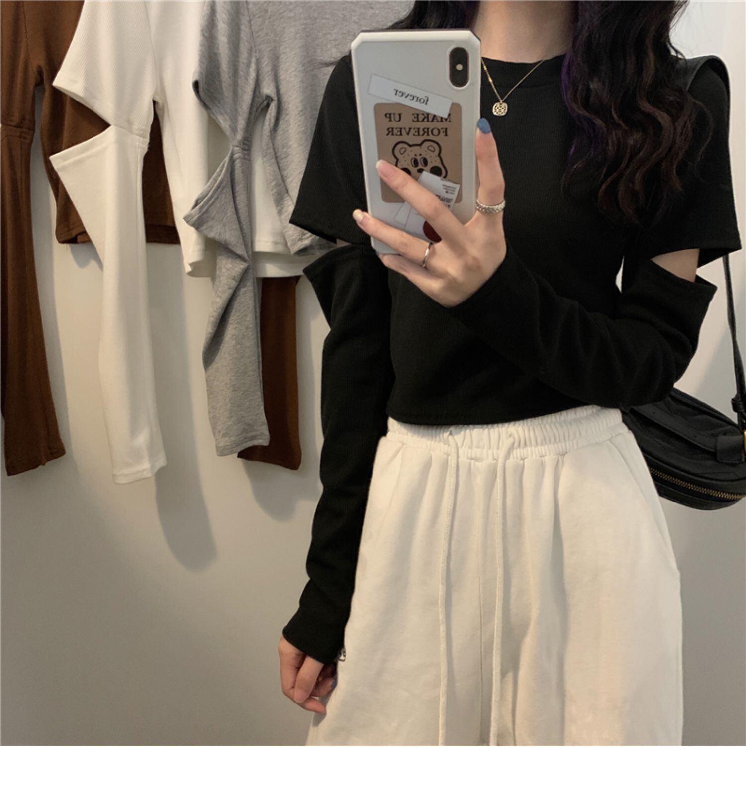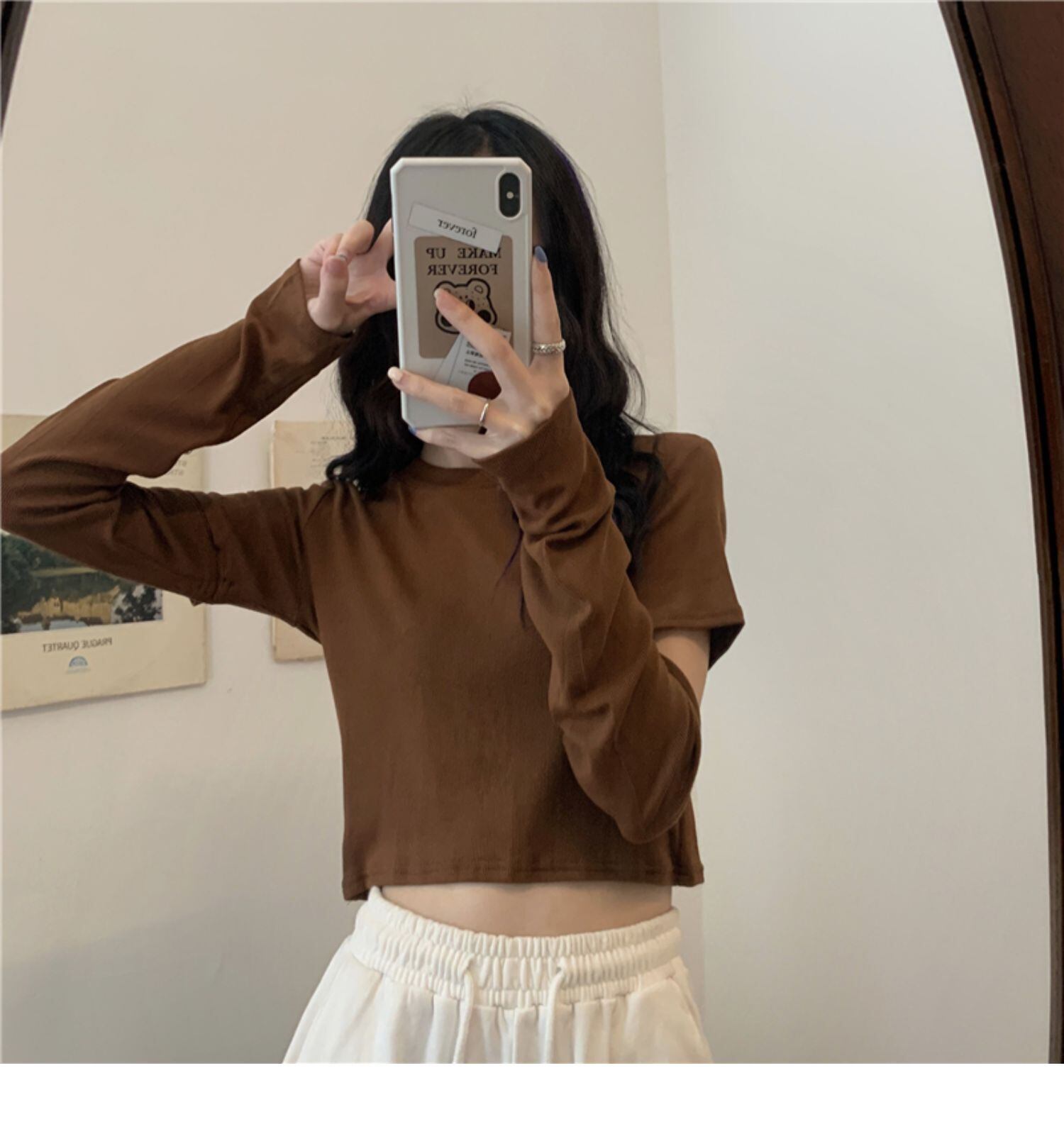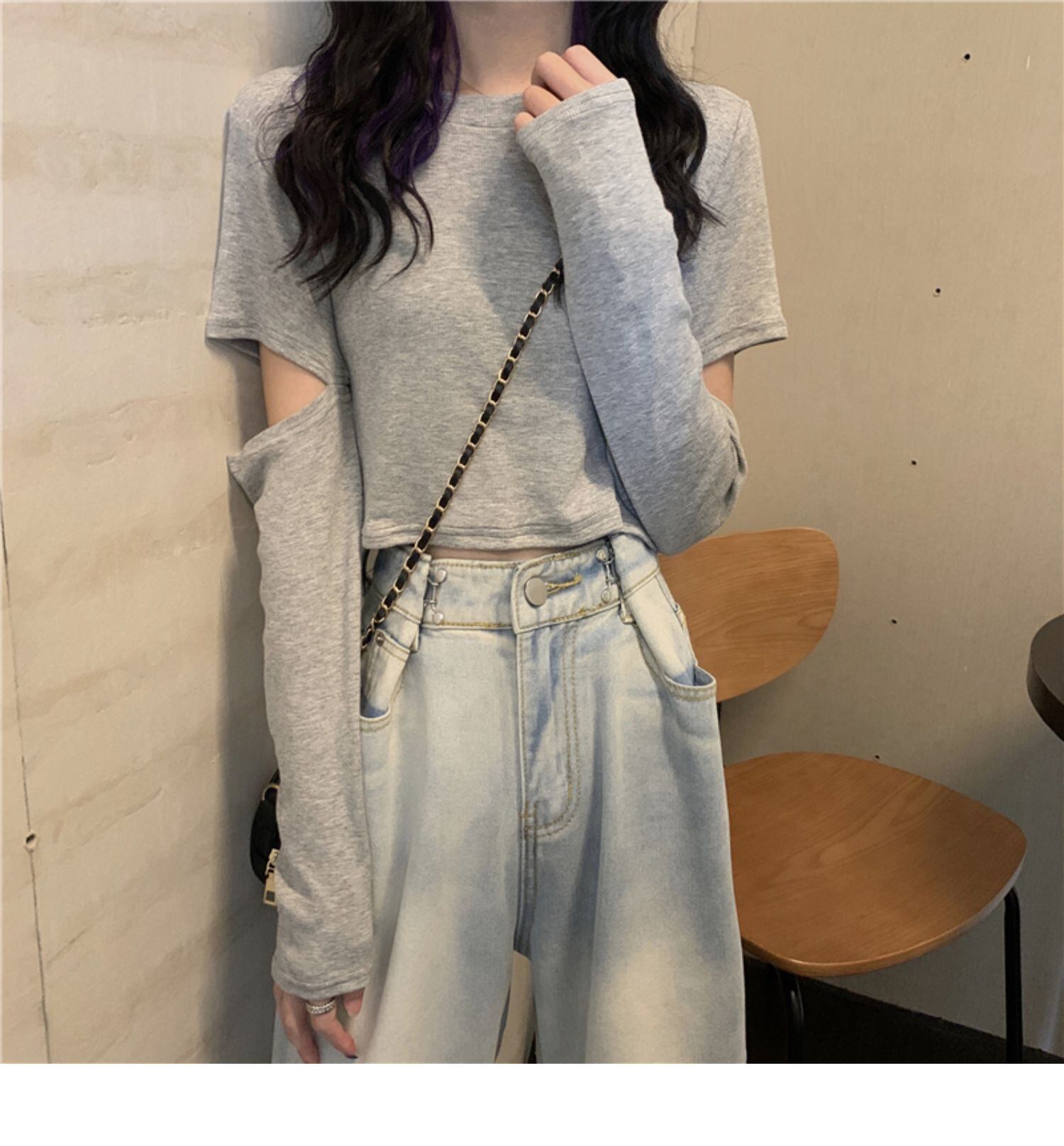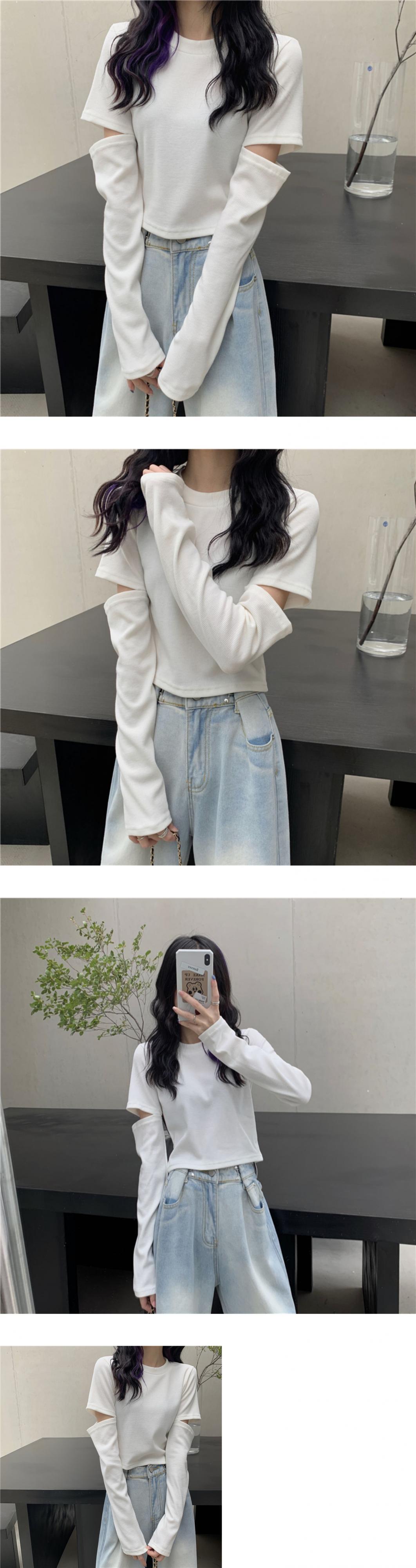 ラウンドネックショートTシャツ スプリングスタイルスリムトップス ロング 春物 Oネック ドラファッションホール11228995048