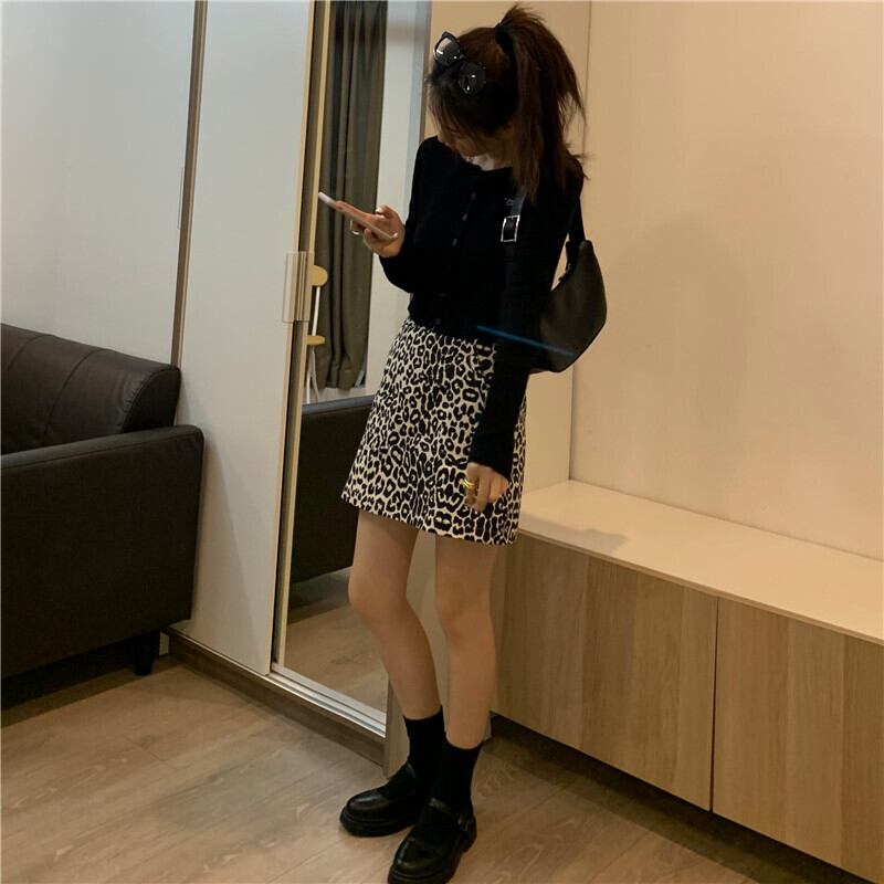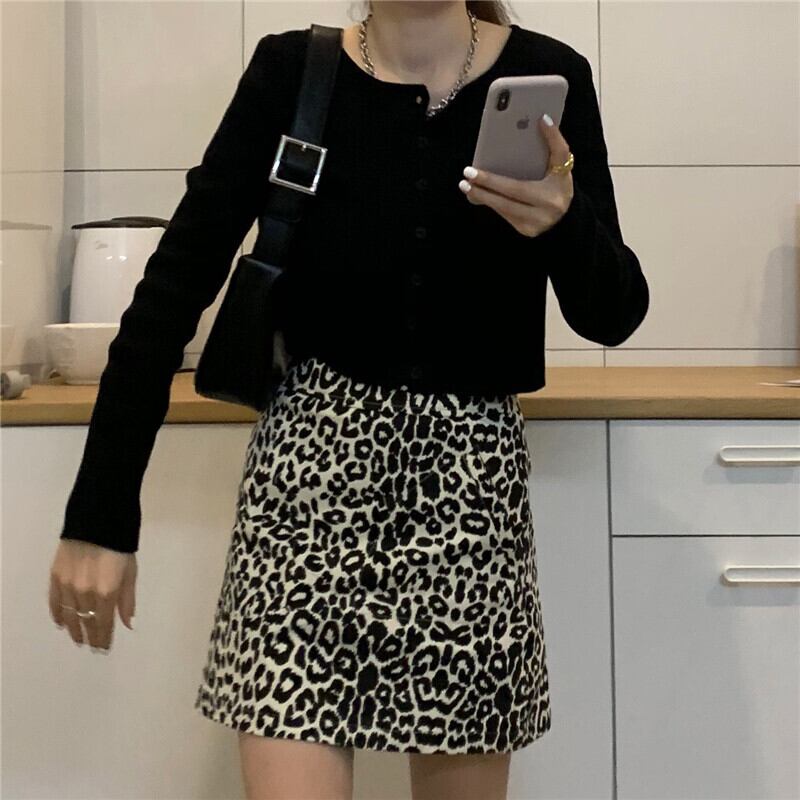 ソリッド カラーショートニットコート カーディガンスプリングレオパードスカート レッド 刺繍 春物 ソリッドカラー ドラファッションホール68119644149