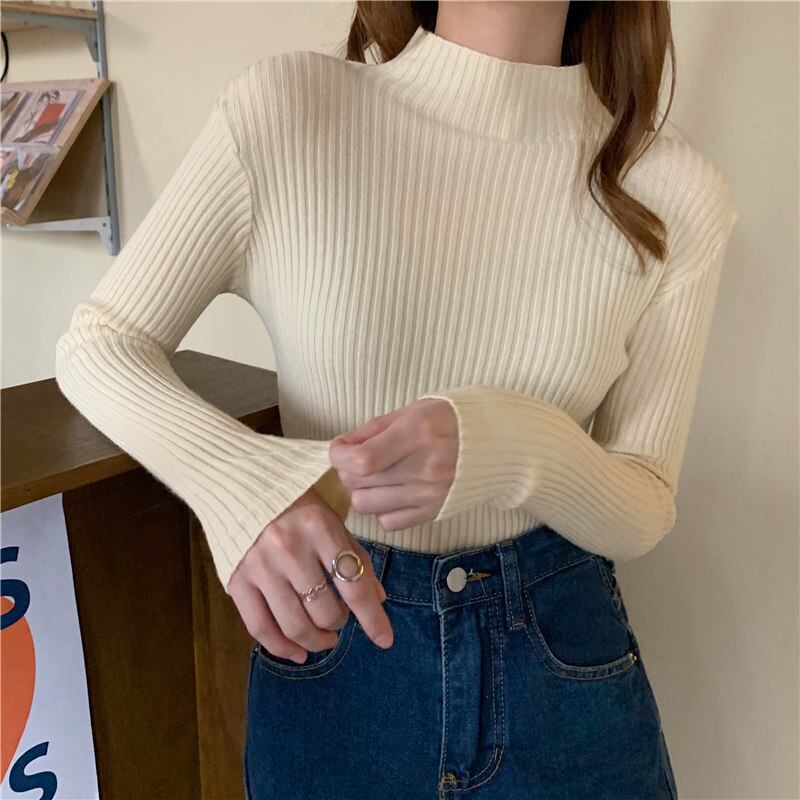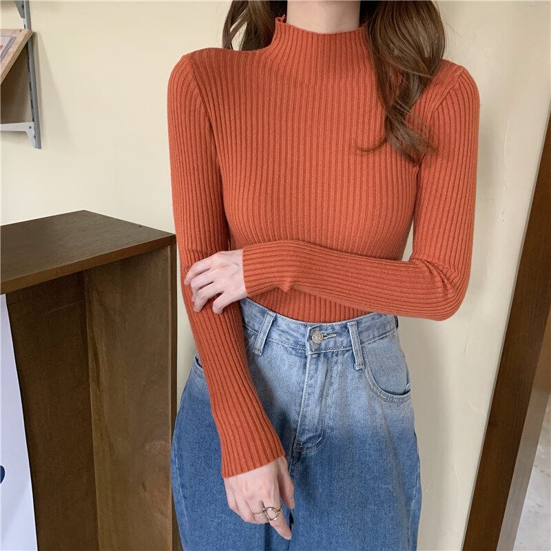 オータムウィンターカラーソリッド スリムニットセーター トップス レディース 秋物 冬物 ソリッドカラー ドラファッションホール10001230602