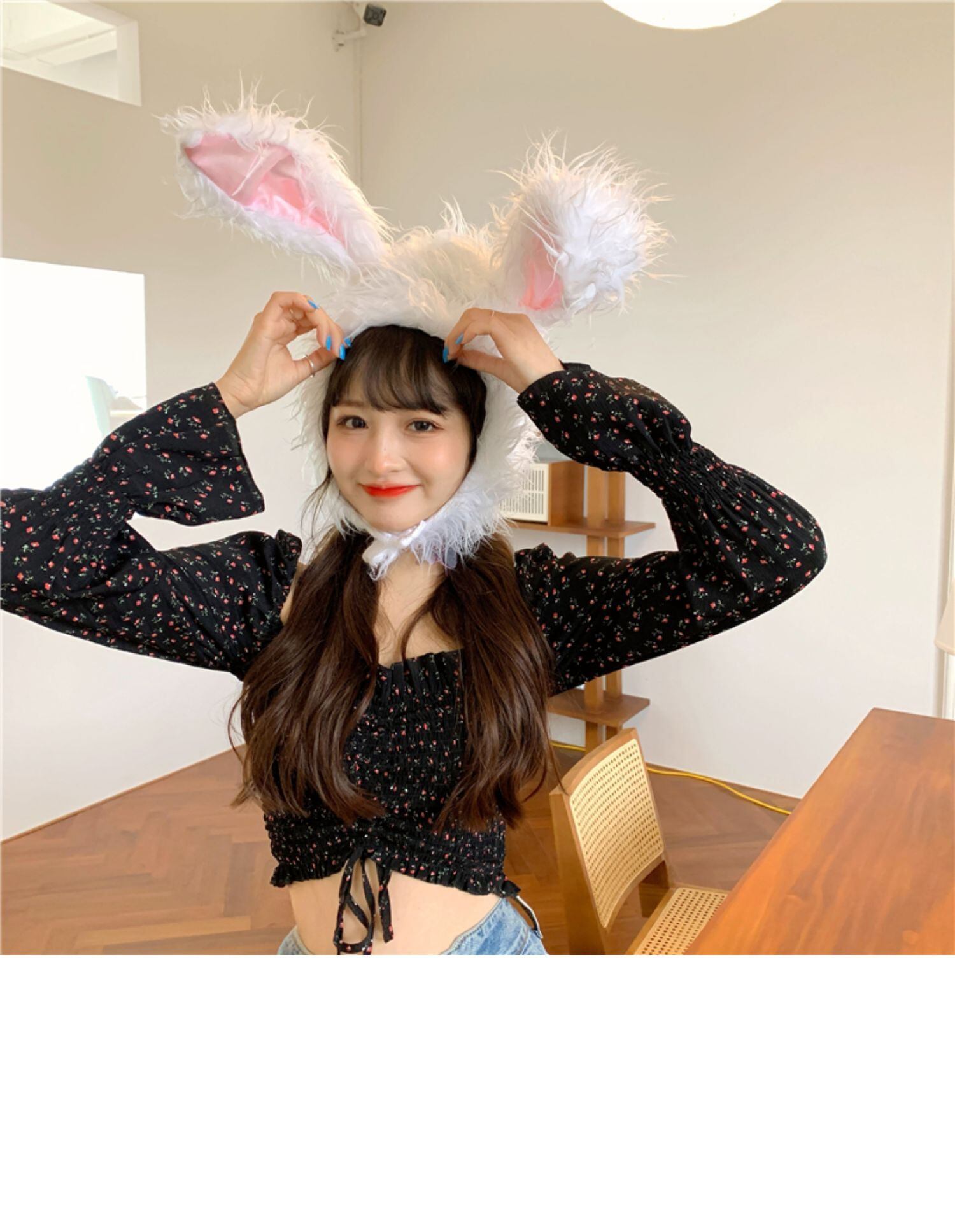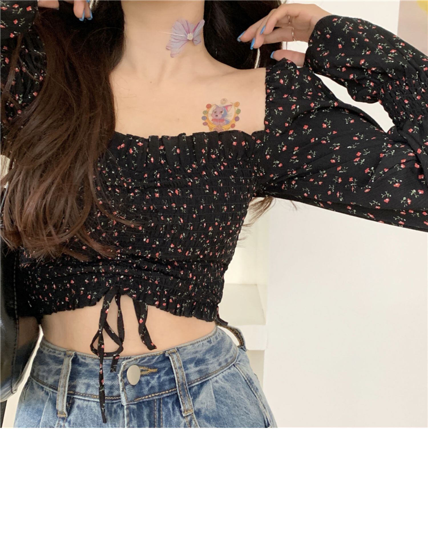 スプリングフローラルギャザークロップドシフォンシャツ ショートスリムレッドトップス レディース ロング 春物 花柄 ドラファッションホール47329081725