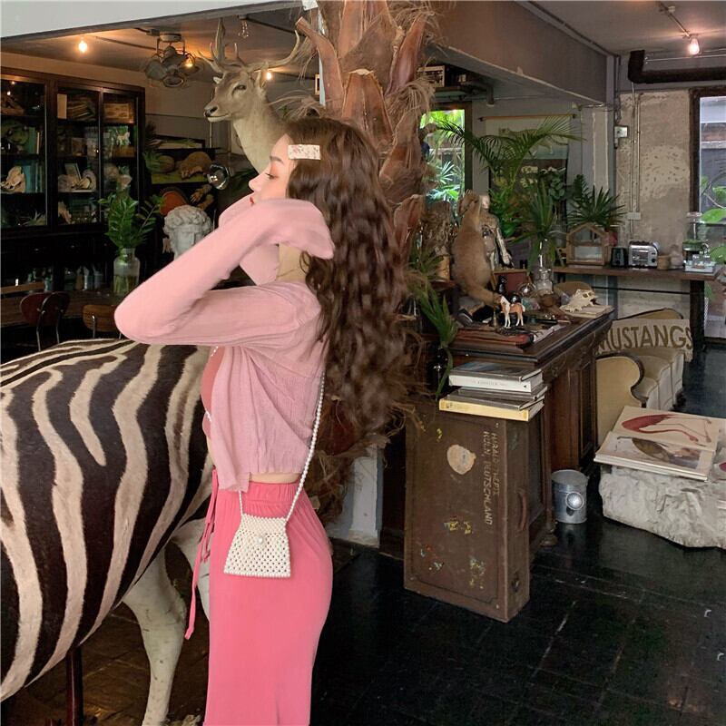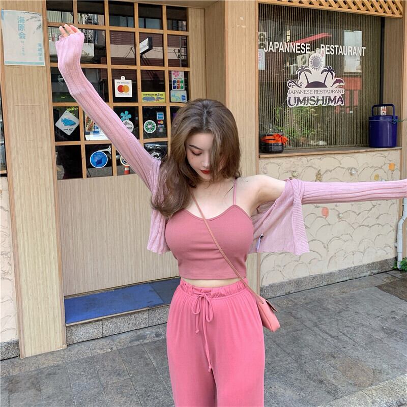 ショートVネックニットカーディガンジャケット レディーススタイルカジュアルルーズパンツ ドラファッションホール97696223028