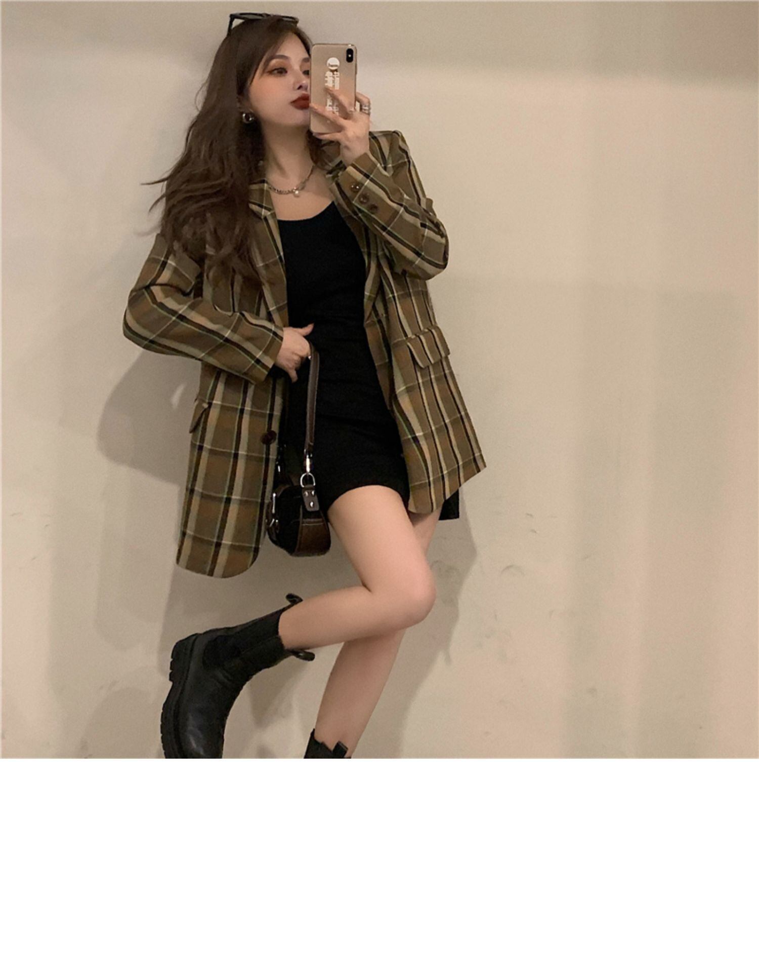 スプリングスタンダードルーズ格子柄ジャケット スリムスカート スタイルレディース レトロ 春物 ドラファッションホール24821187087