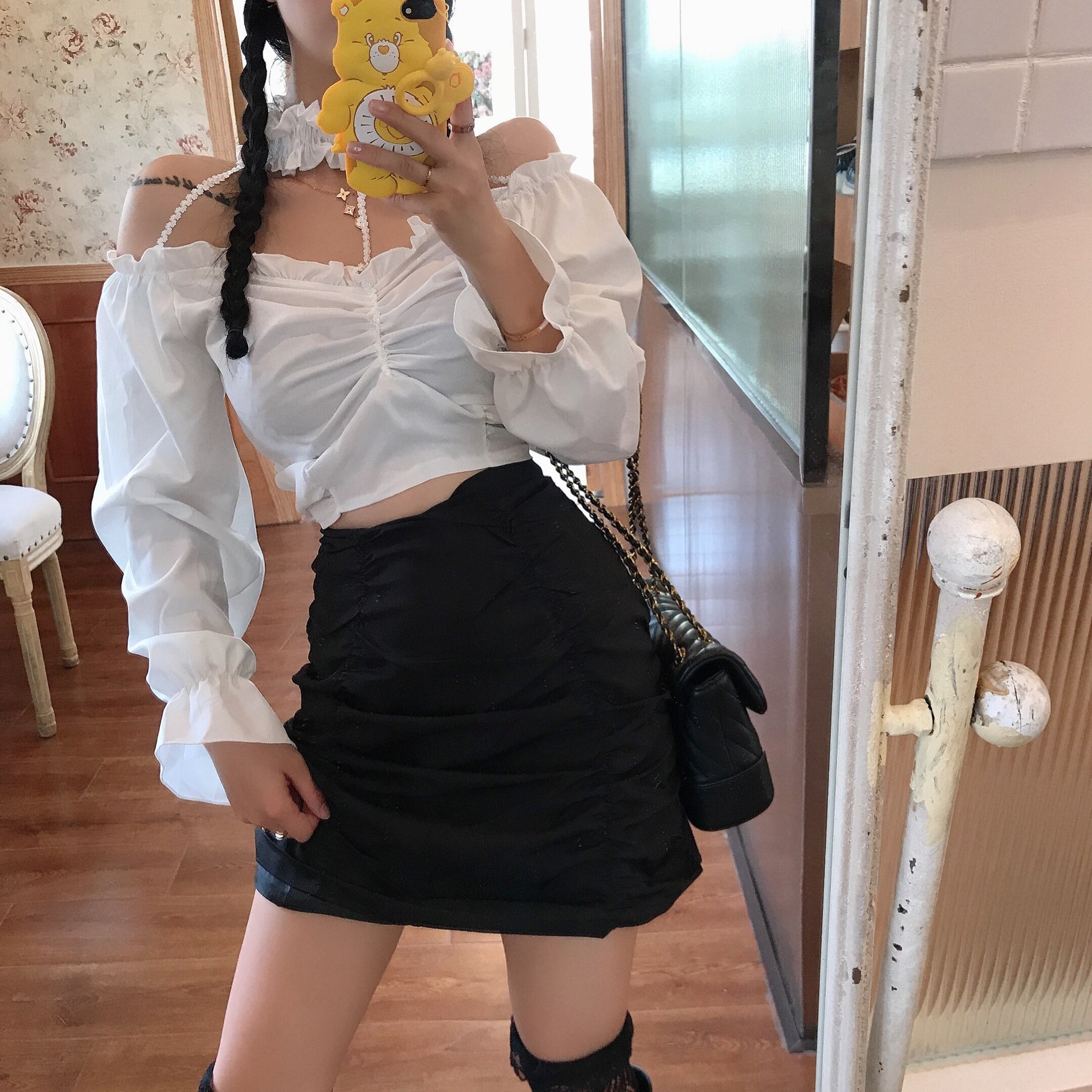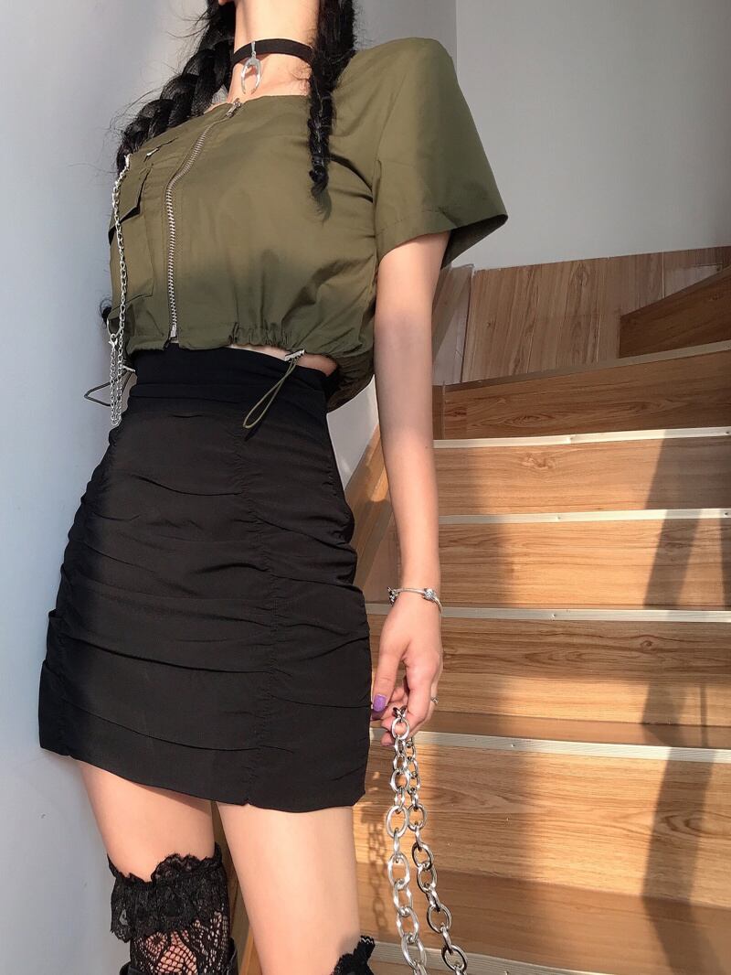 スプリングスタイルプリーツブラックハイウェストスカート ソリッド カラーショート 春物 ソリッドカラー ドラファッションホール58785234259