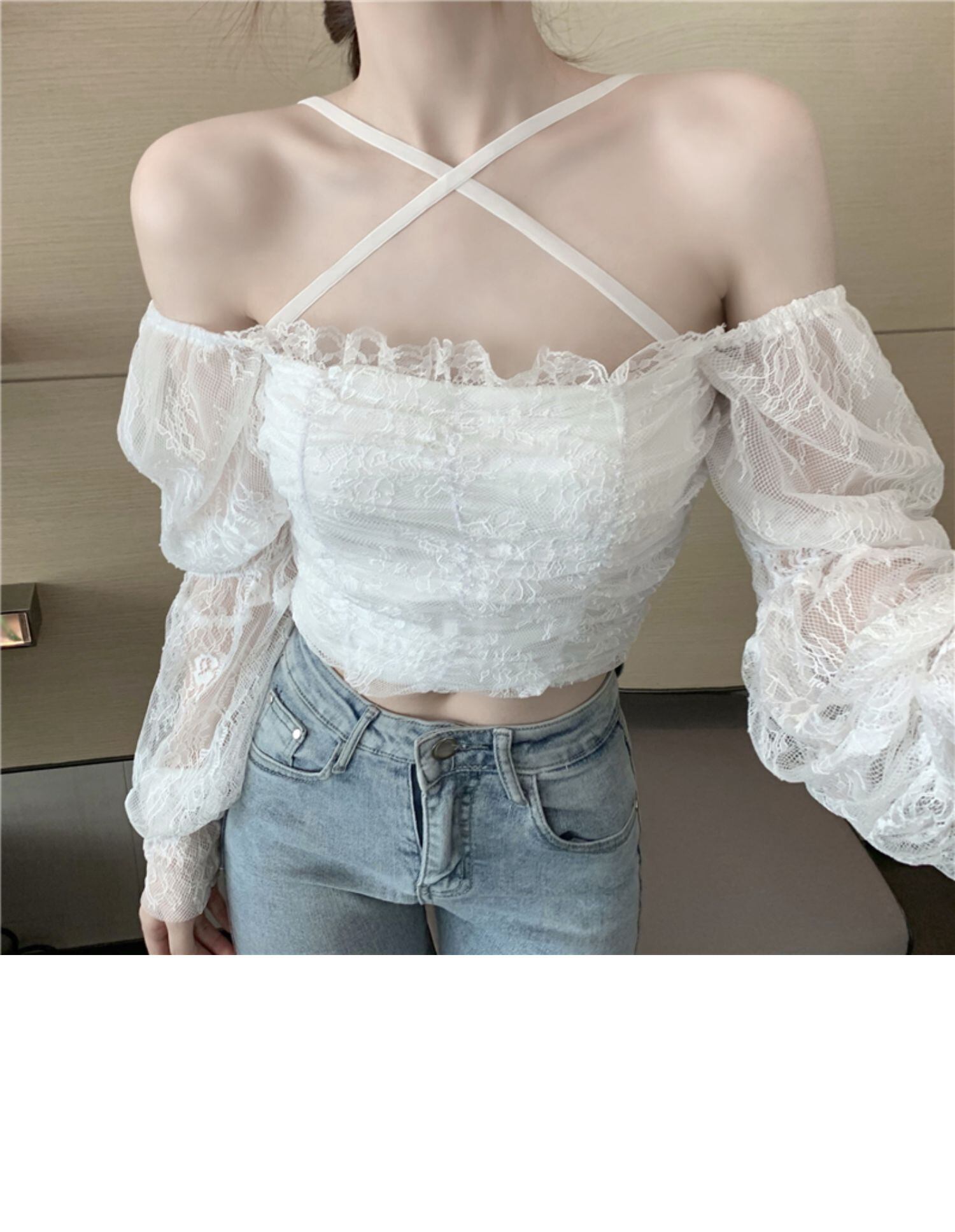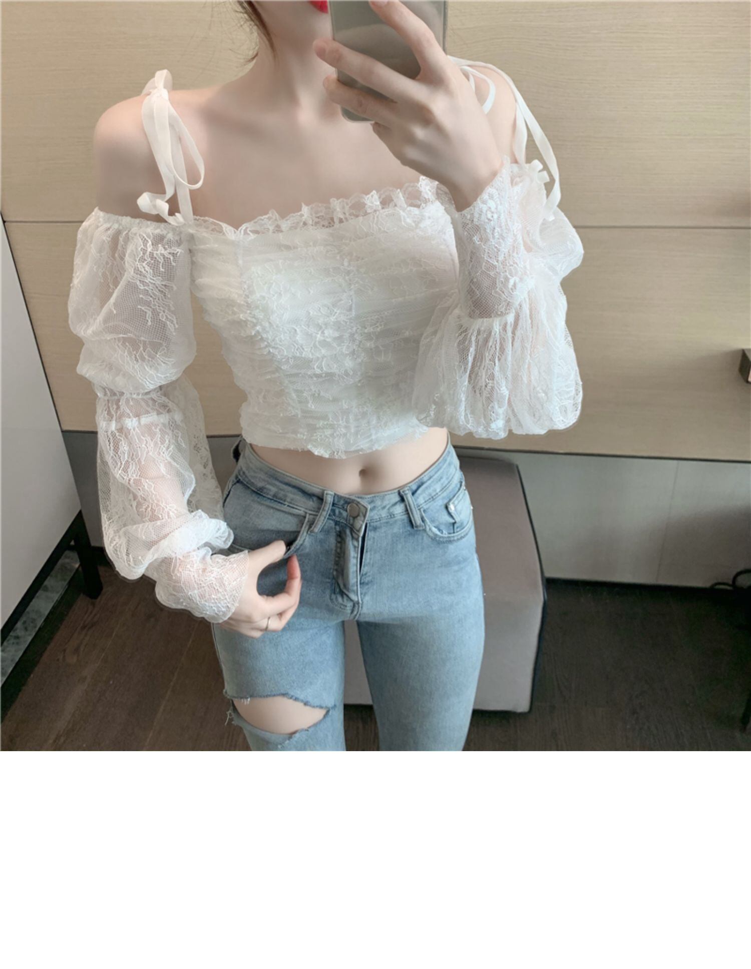 スプリングオータムレースシャツ ショートレディース ロング 春物 秋物 レースアップ ドラファッションホール70145691794