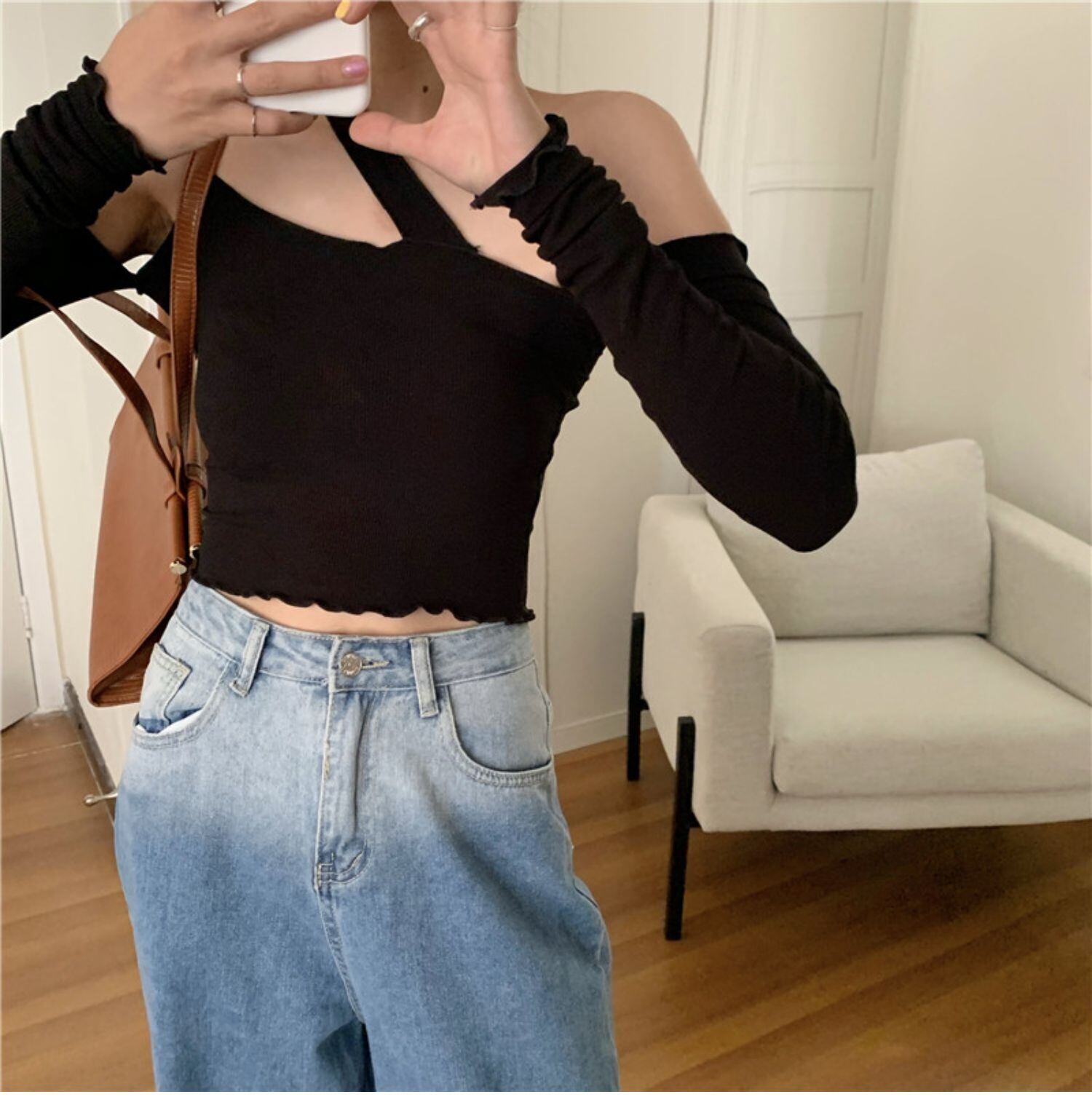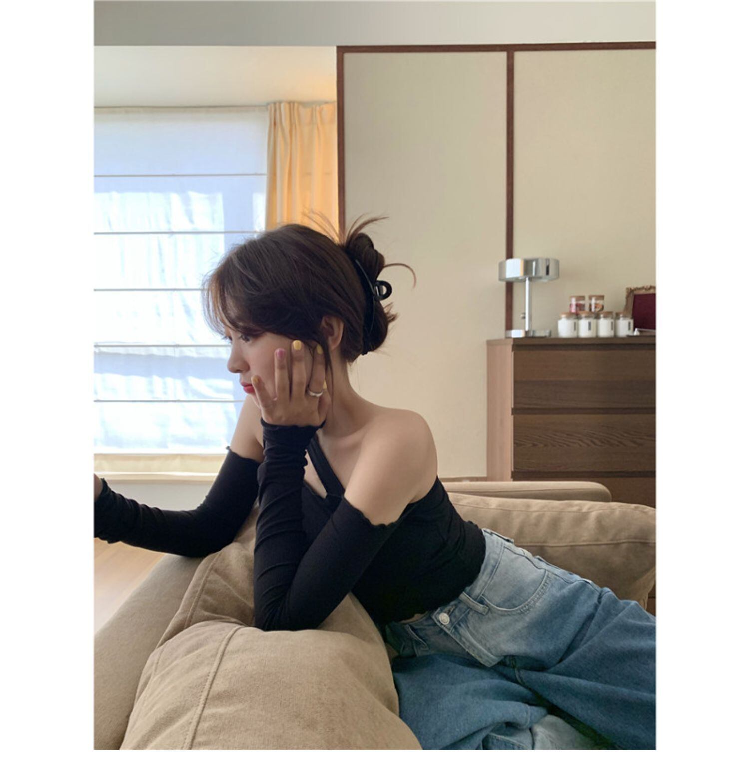 ウェストTシャツ ショートブラックトップス ロング オフショルダー ドラファッションホール92595981042