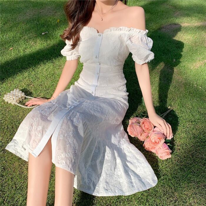 サマースタンダードスリーブスカート ウェストドレス レディース レトロ 夏物 ドラファッションホール92961908585
