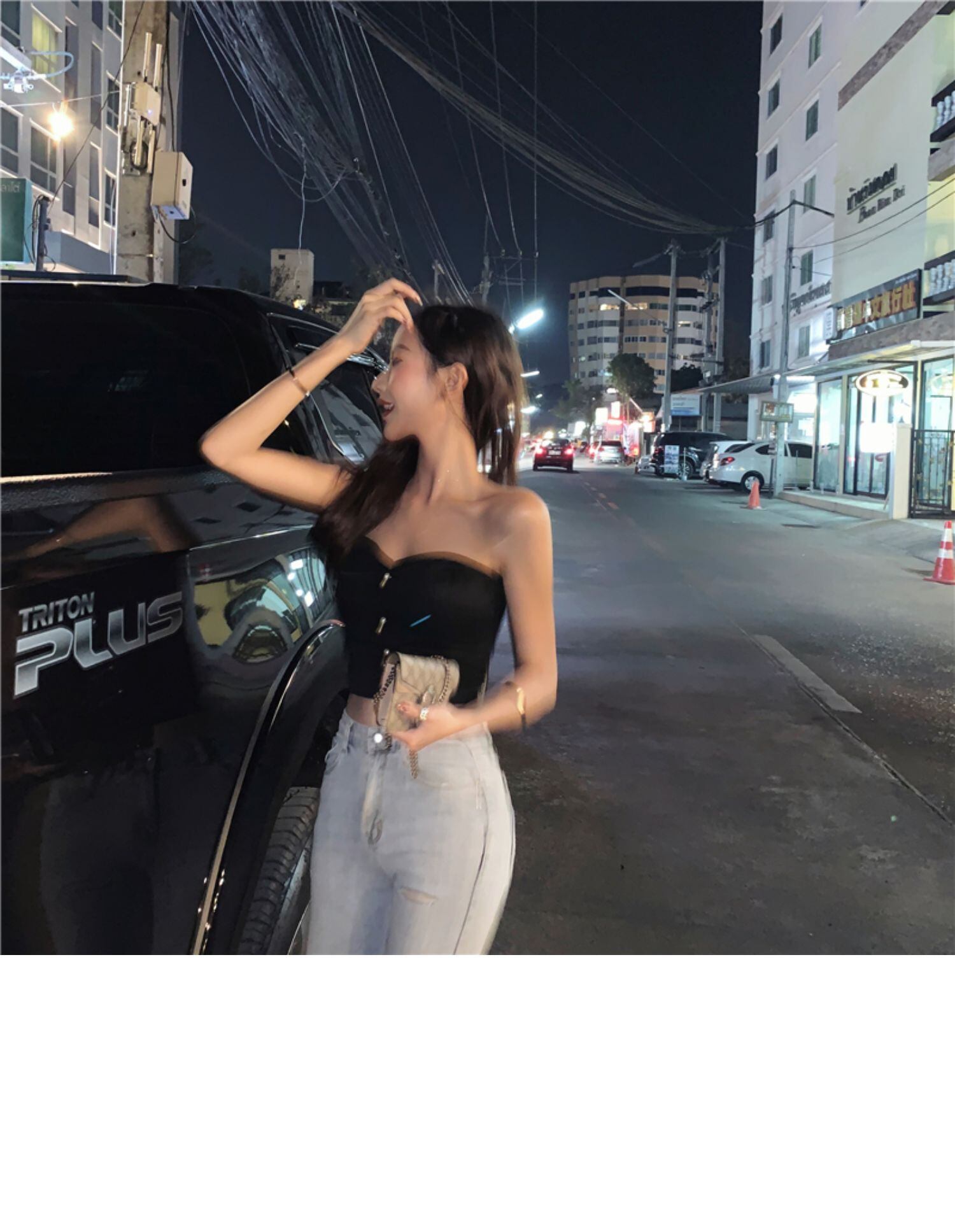 色:黒いチューブトップ