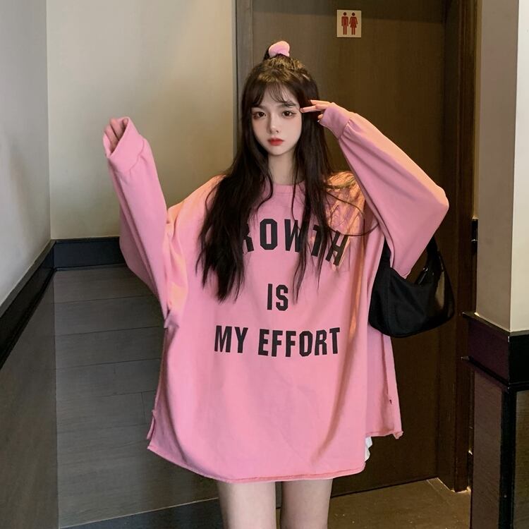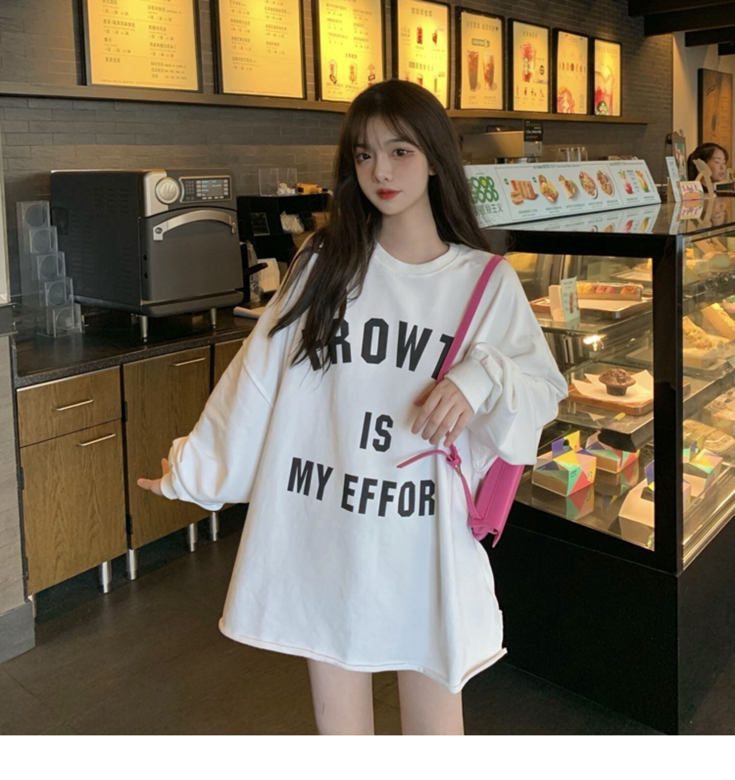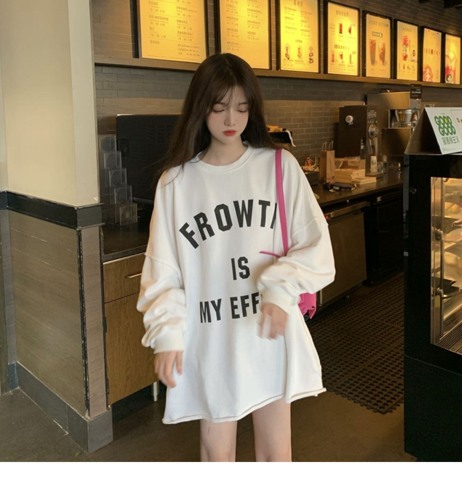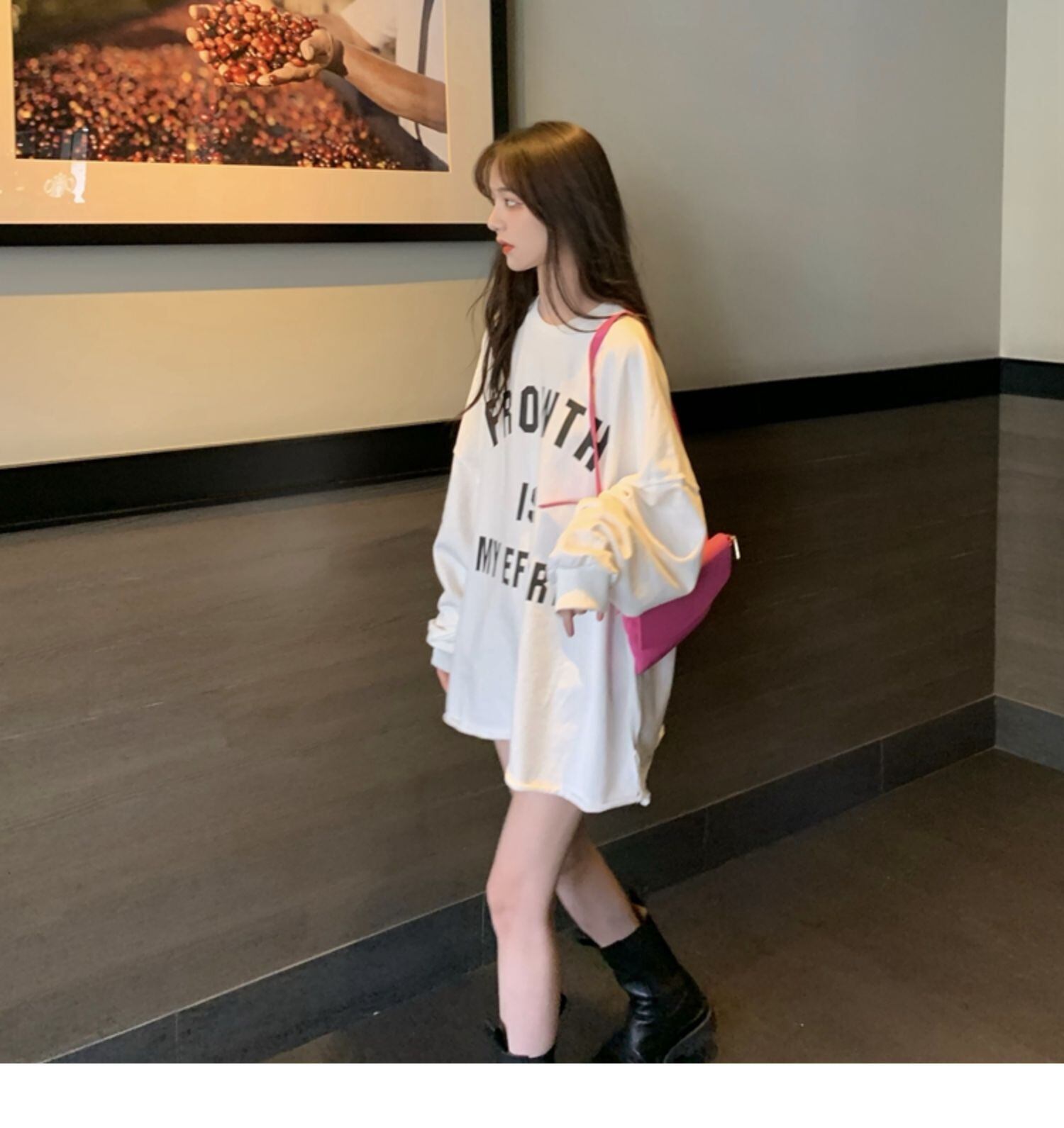 ルーズラウンドネックトップス プリントホワイトTシャツ ロング Oネック ドラファッションホール61213495904