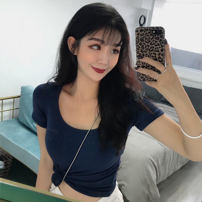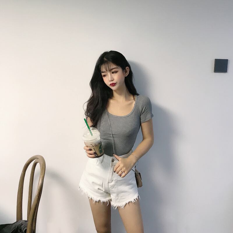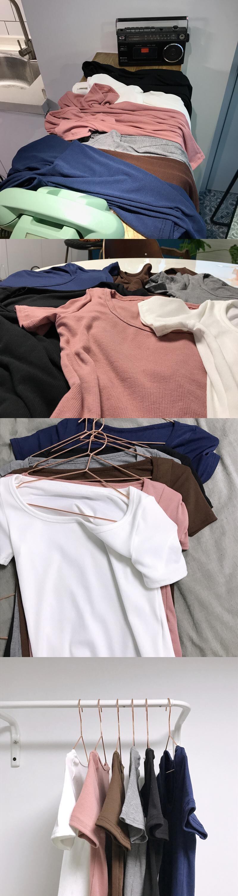 ベーシックソリッド カラー薄手Tシャツ スタイルトップス レディース ソリッドカラー ドラファッションホール95547246573