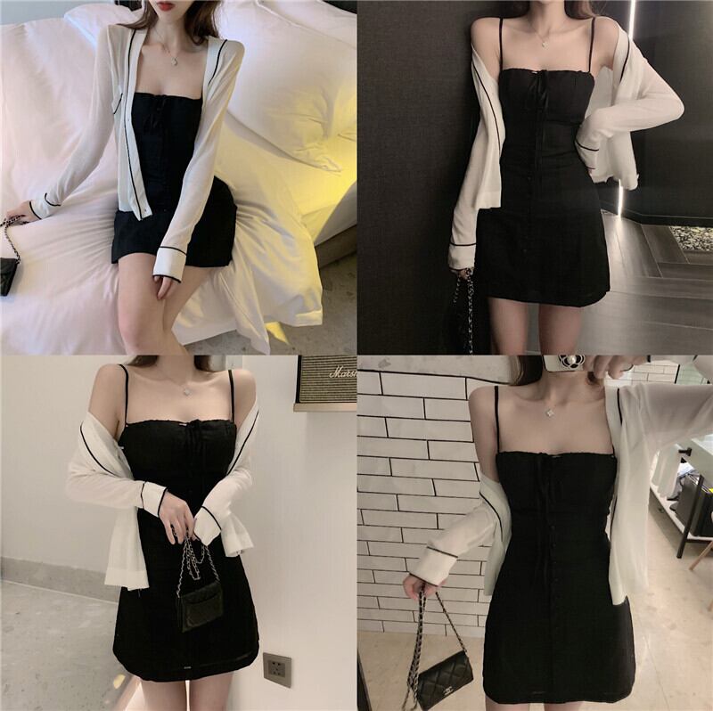 Vネックセーター レディースサマースタイル薄手ストラップ ドレス スカート 夏物 ドラファッションホール25532277632