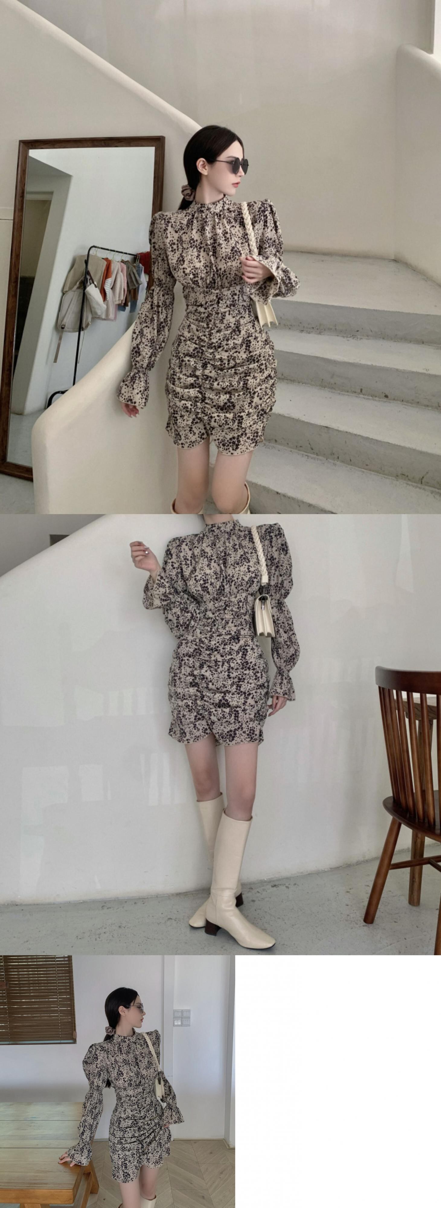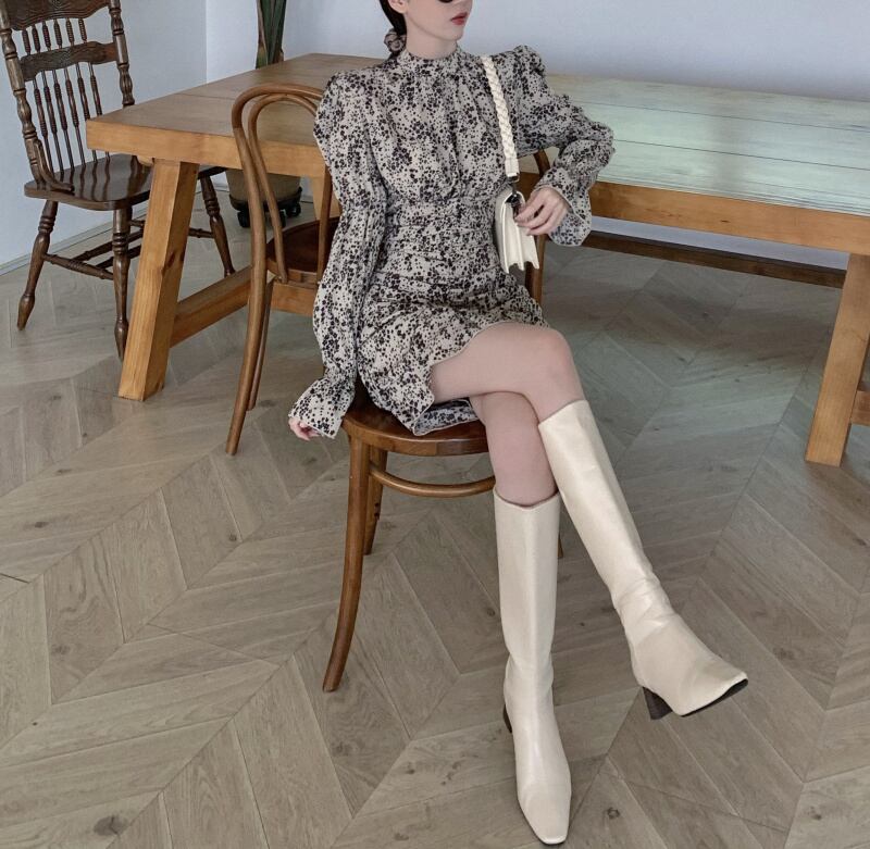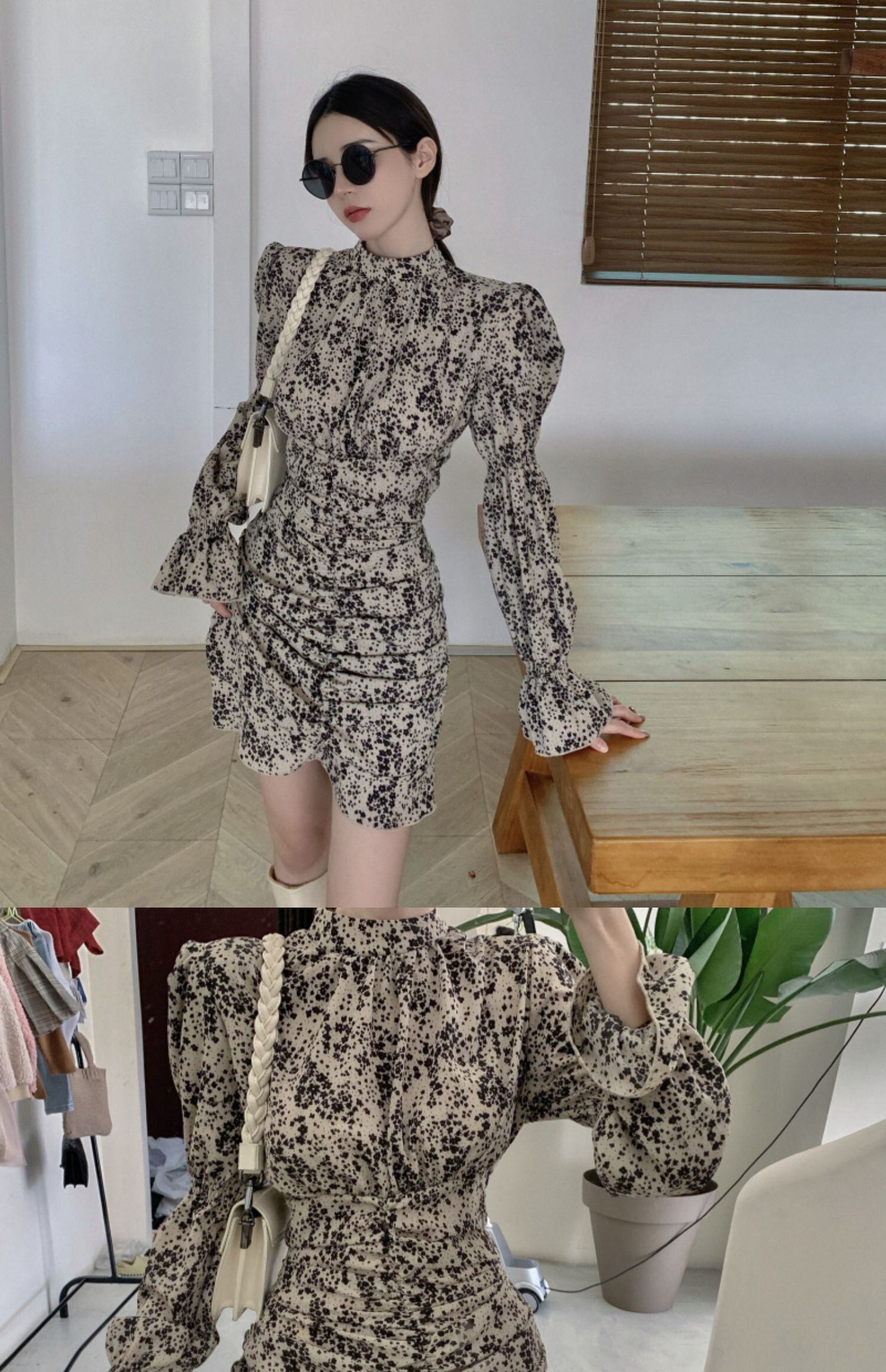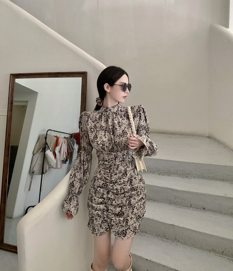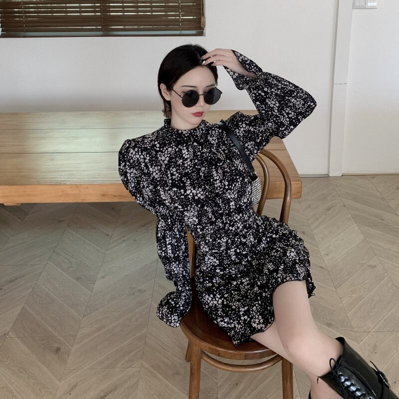 スタンダードフローラル薄手ドレス スプリングカラースカート レトロ 春物 花柄 ドラファッションホール19667789034