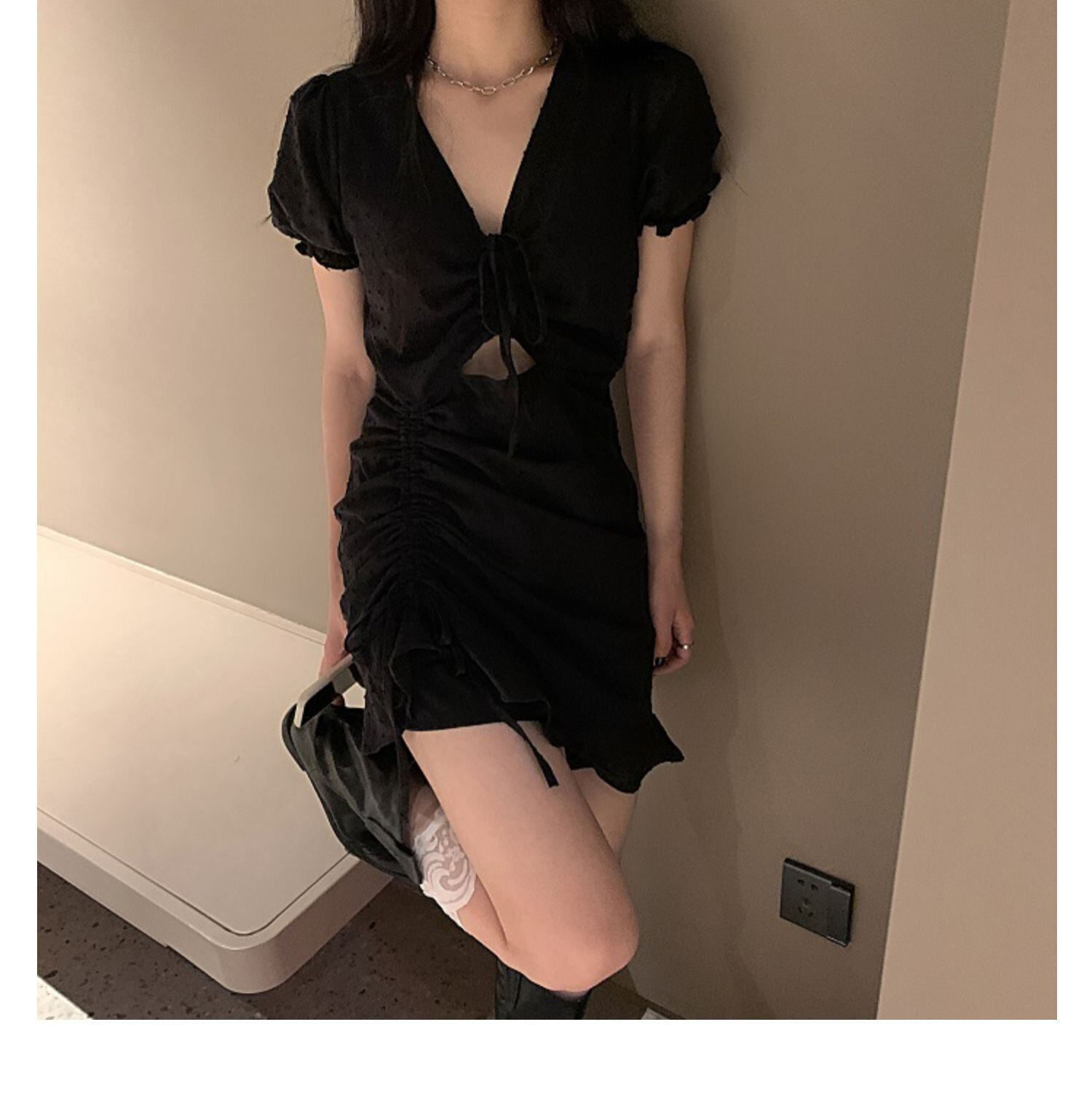 ダークギャザーサマーソリッド カラーウェストドレス 夏物 ソリッドカラー ドラファッションホール73862761600