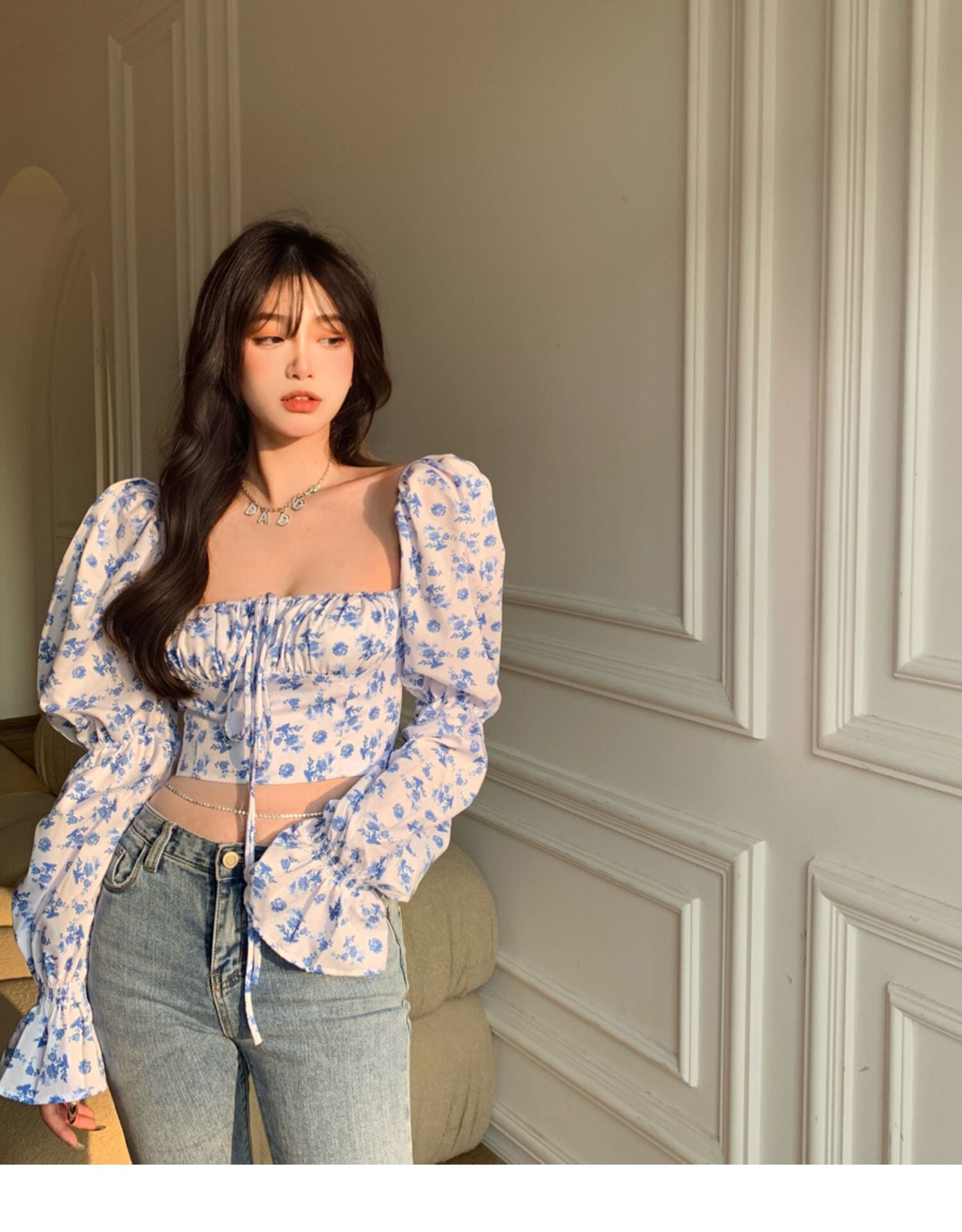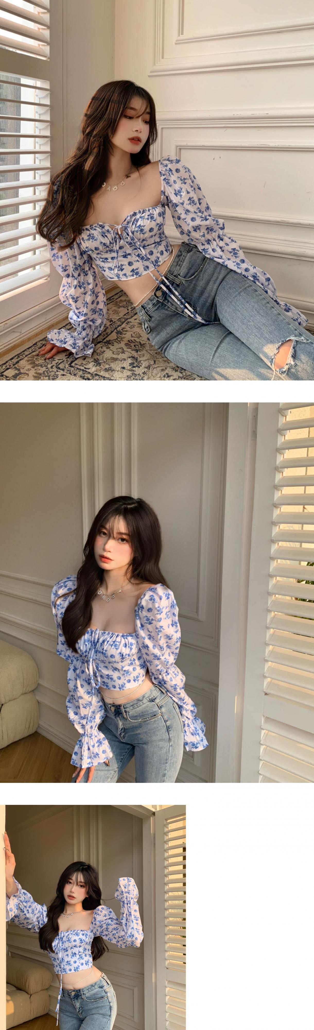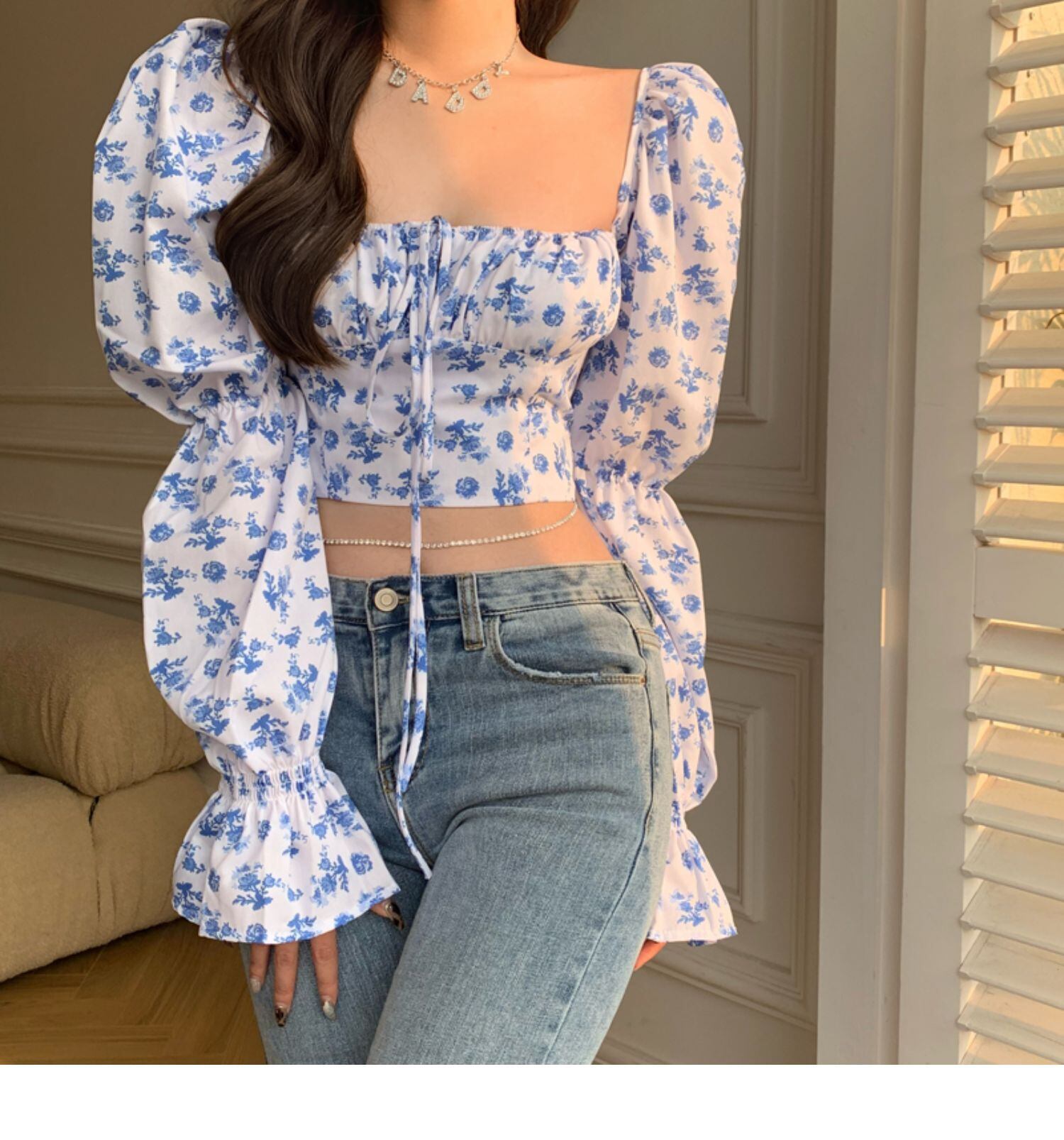 スタイルフローラルシャツ スリーブトップス レディーススプリングストラップ スリム 春物 花柄 スクウェア ヨーロピアン ドラファッションホール73888185126