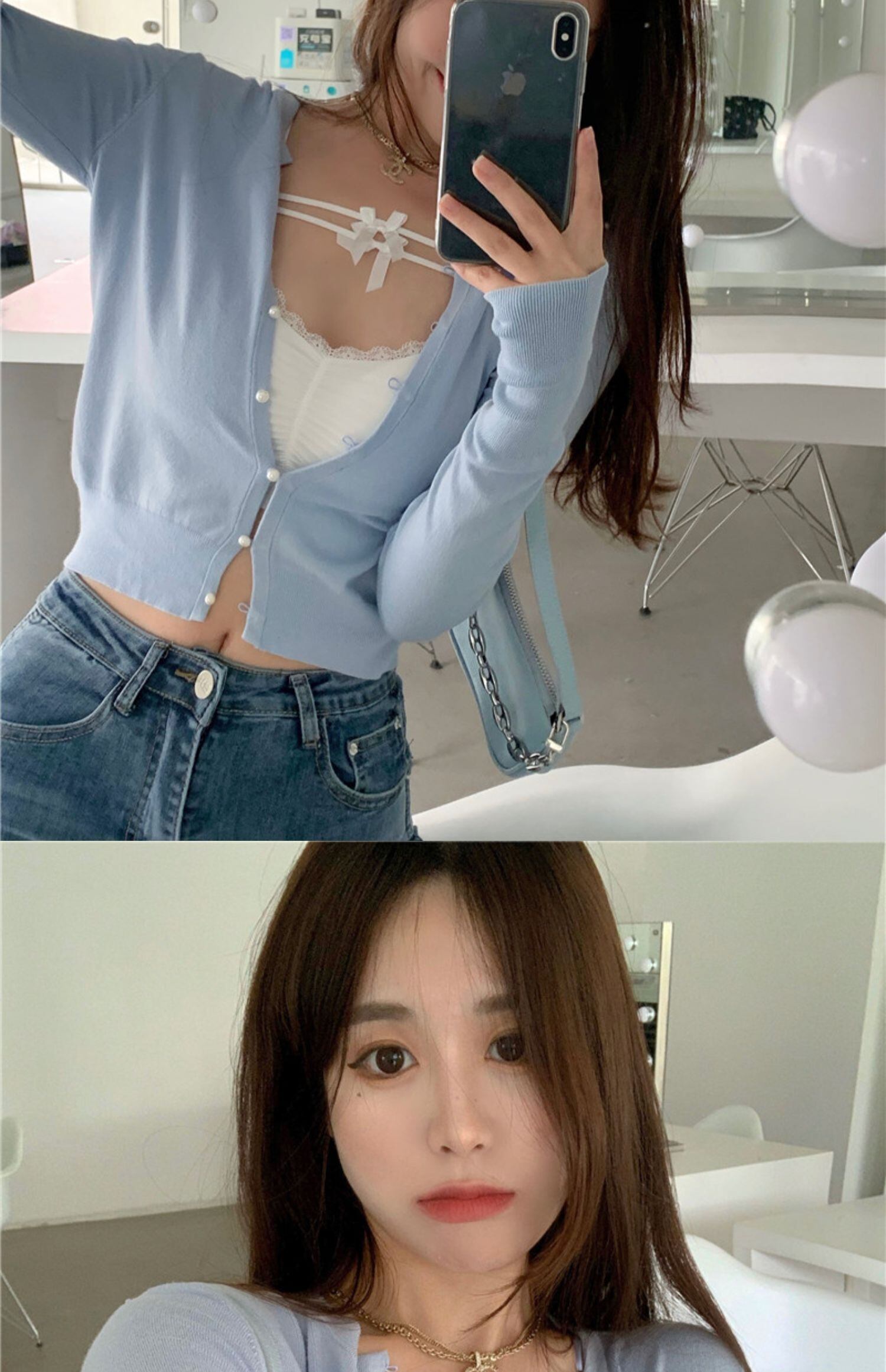 スリム薄手カーディガントップス レディーススプリングスタイルセーター 春物 シルク ドラファッションホール10474626679