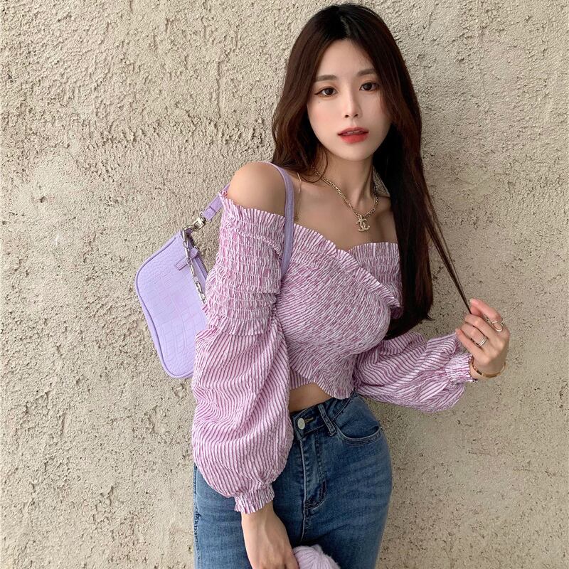 カラー薄手ブラウス レディーススプリングクロスVネックシャツ ランタンスリーブ 春物 ドラファッションホール59853004839