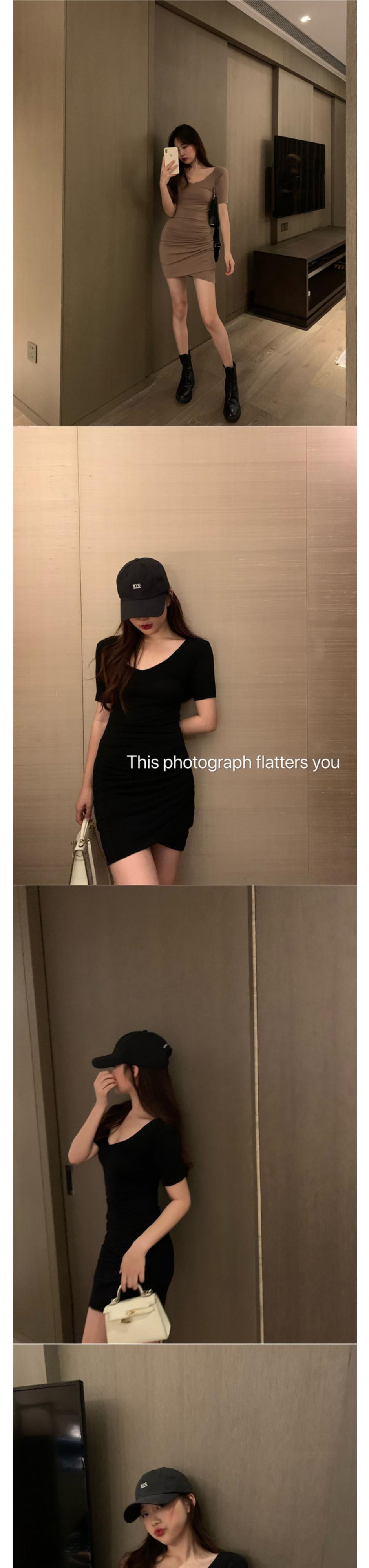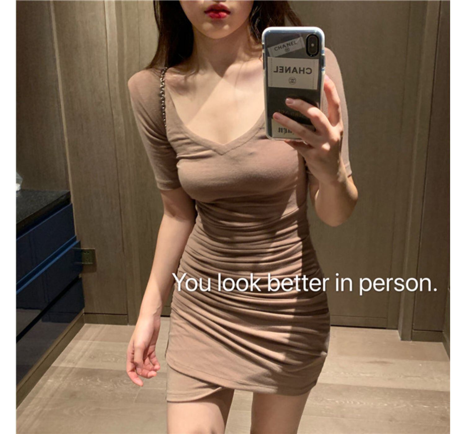 薄手ウェストVネックドレス スリムハイウェストスカート ドラファッションホール16347410961