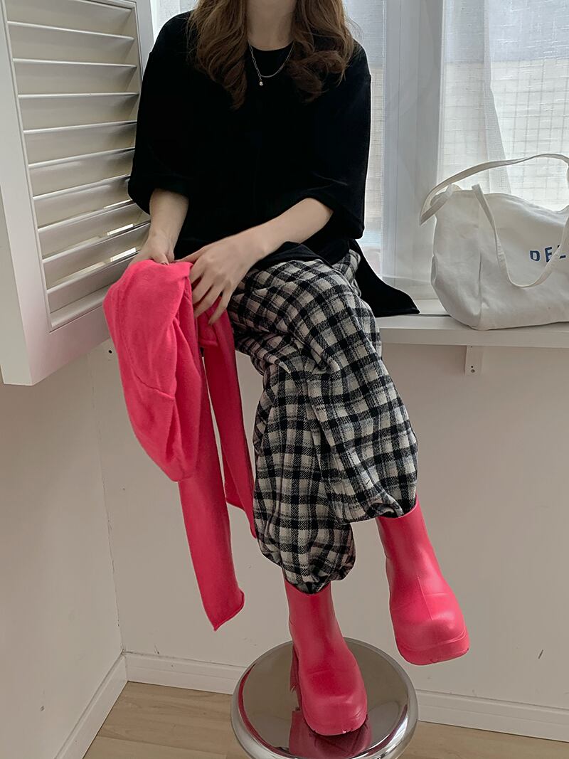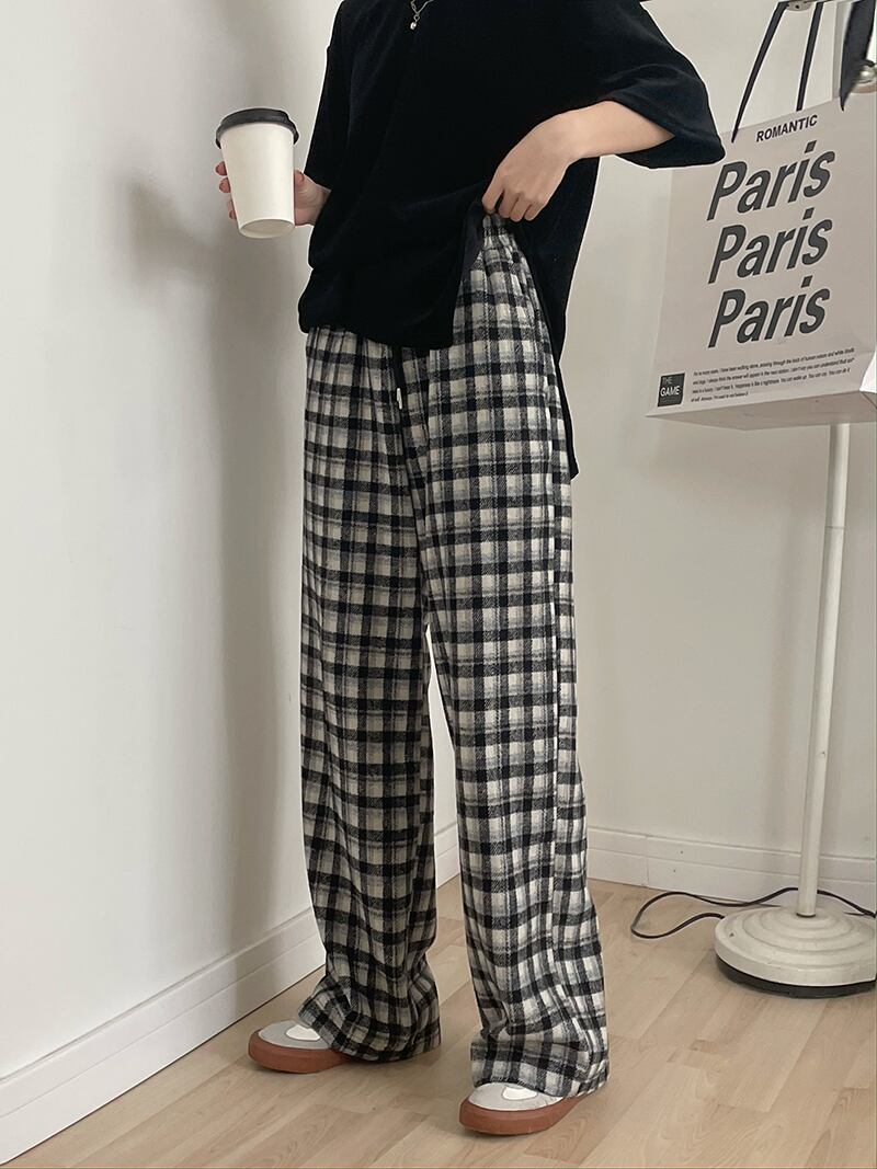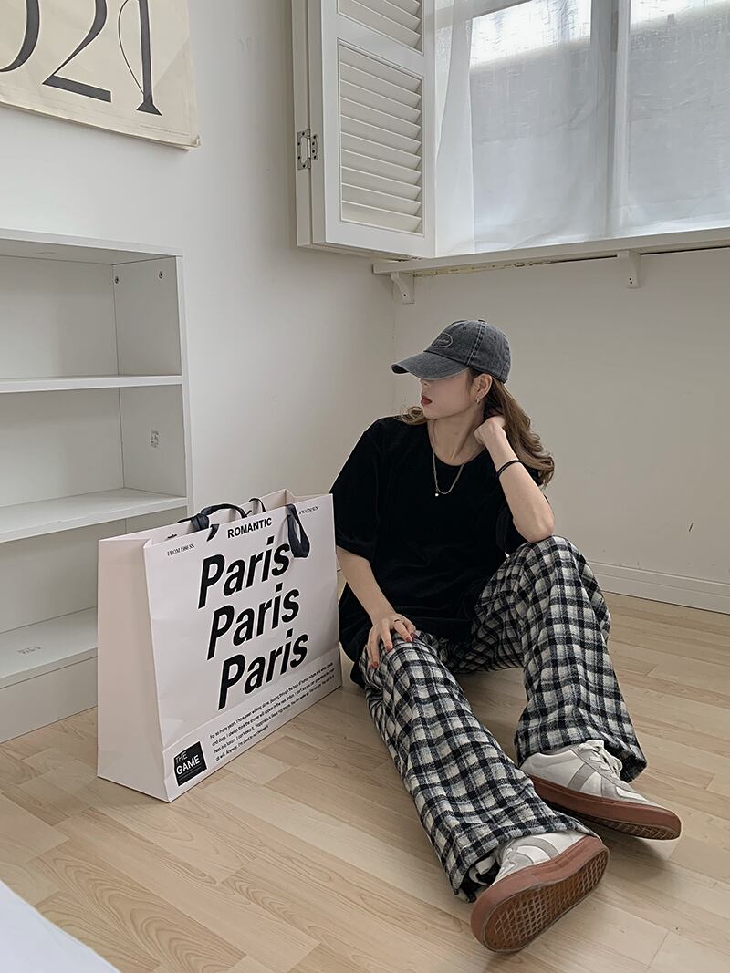 サイドスリットベルベットソリッド カラーサマーカジュアル格子柄パンツ 夏物 Tシャツ ソリッドカラー ドラファッションホール9931049145