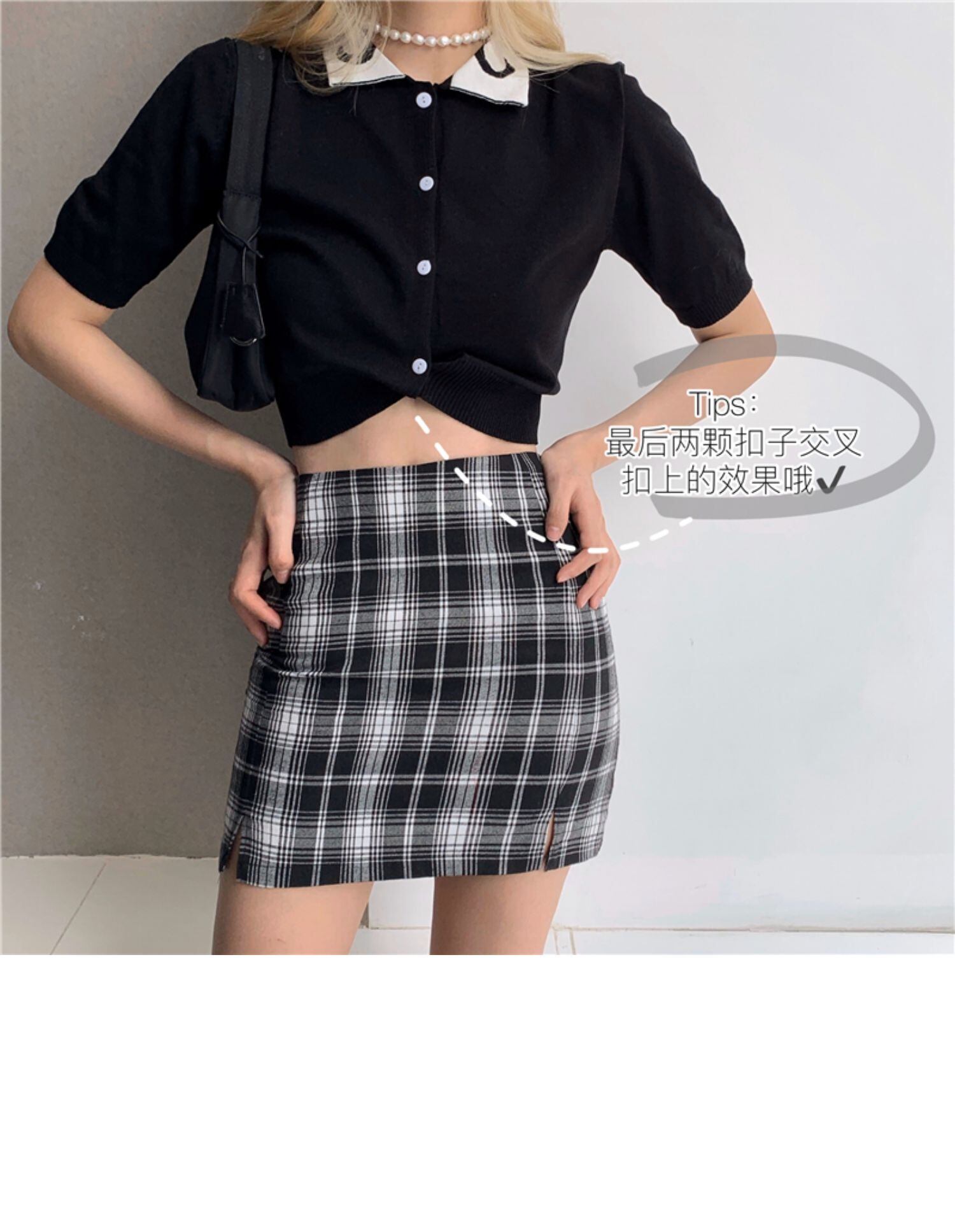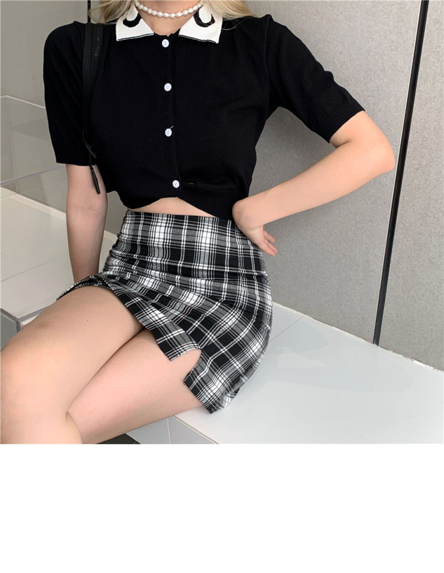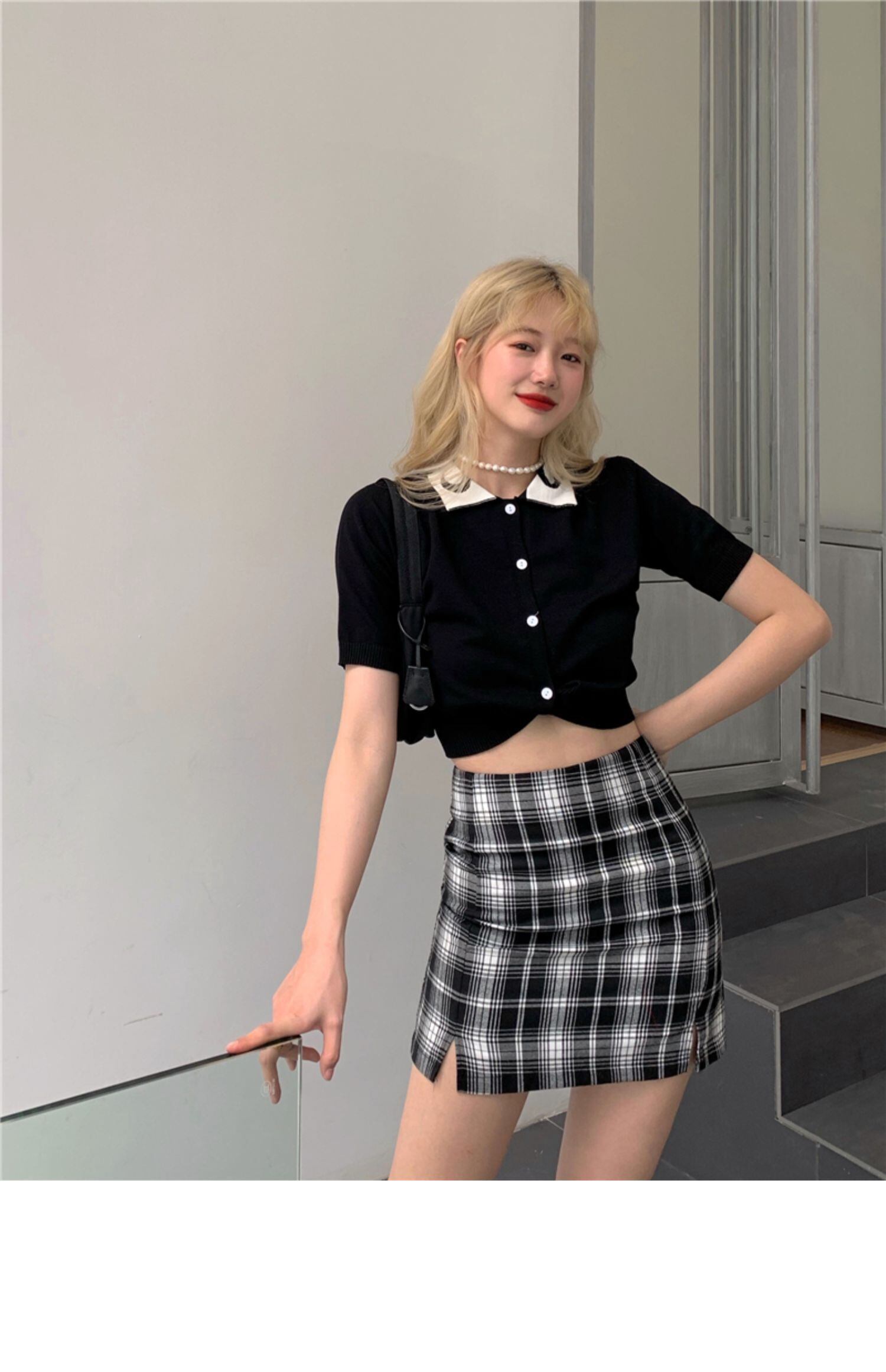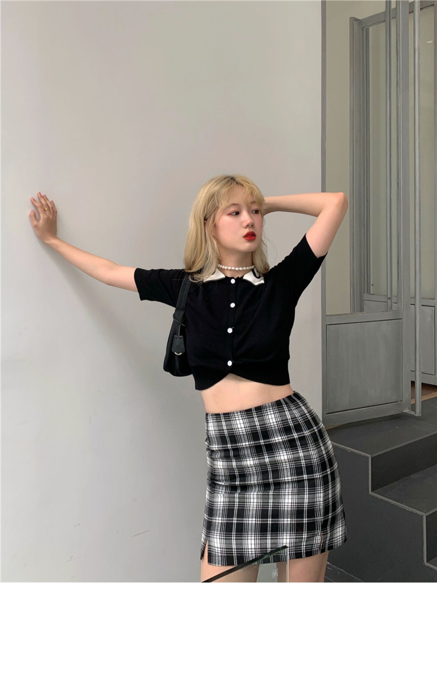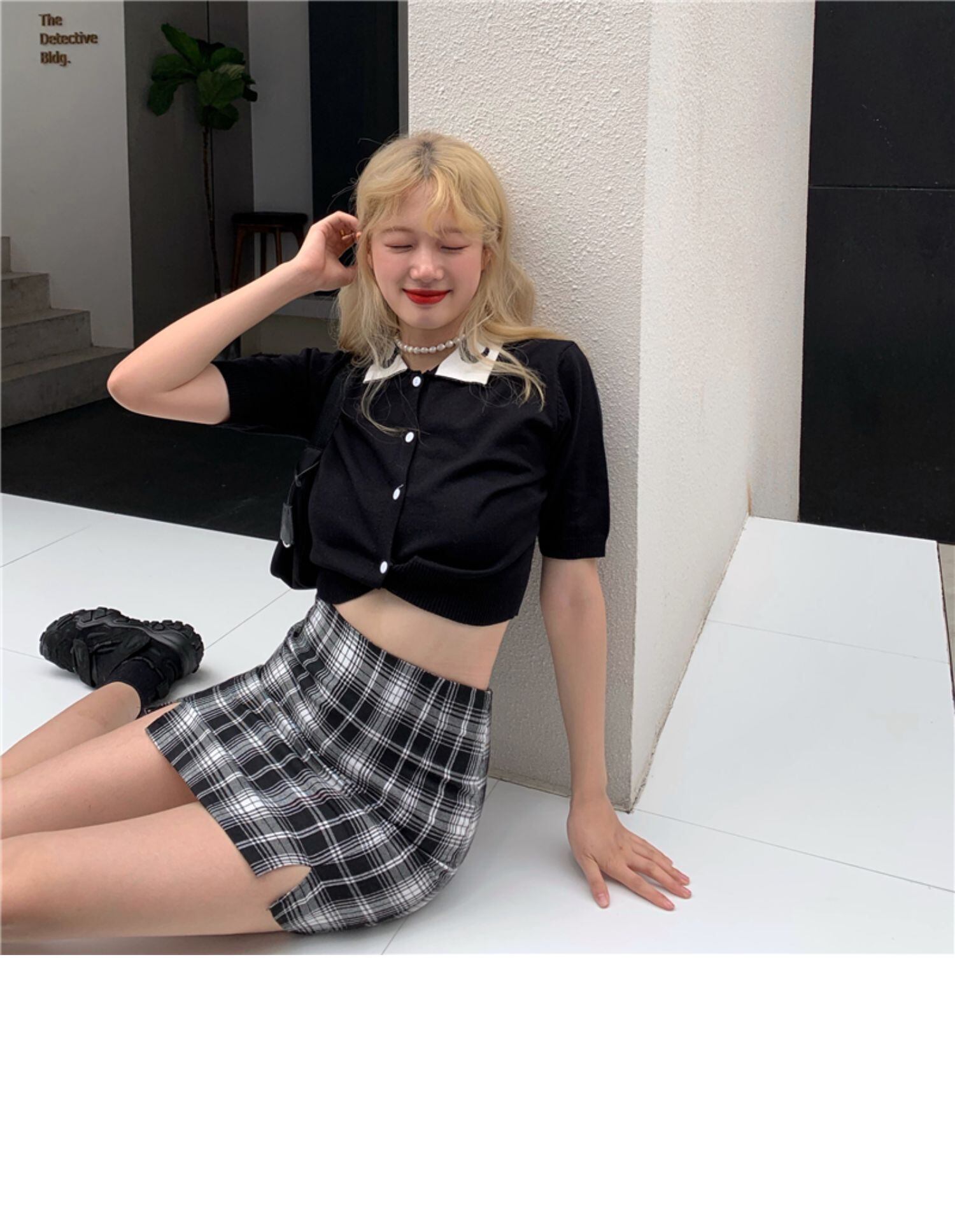 サマースタイルスタンダードショートニットTシャツ 格子柄スカート レディース レトロ 夏物 ドラファッションホール18531760914