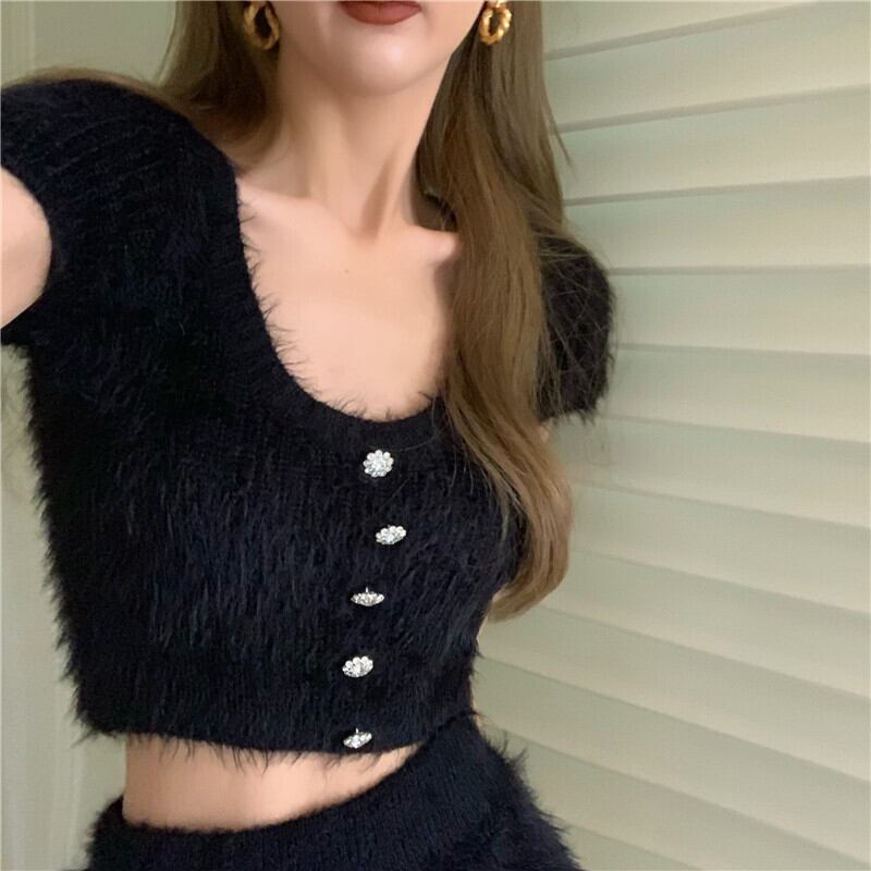 スタンダードショートスリムブラックトップス サマースカート レトロ 夏物 ドラファッションホール29734550079