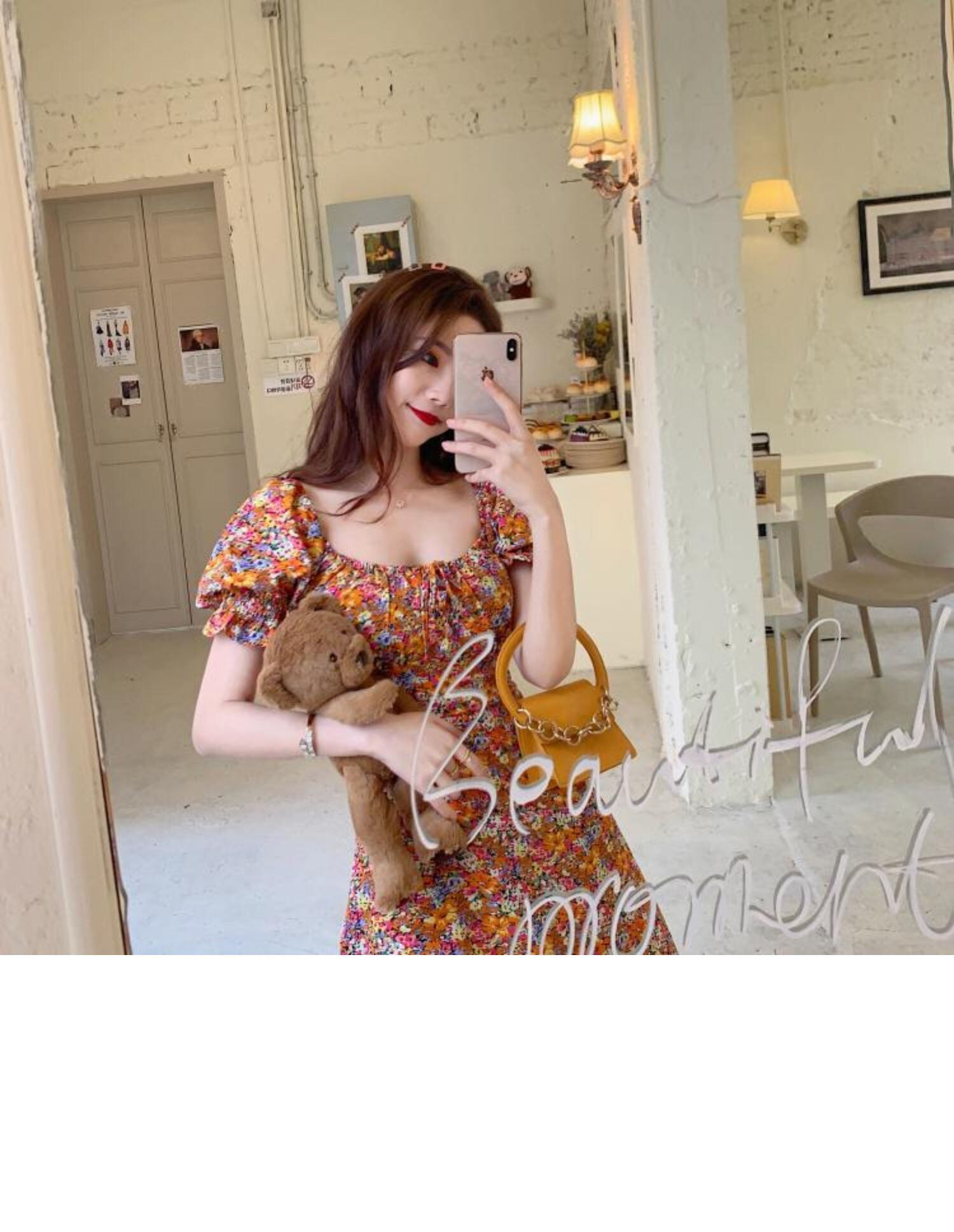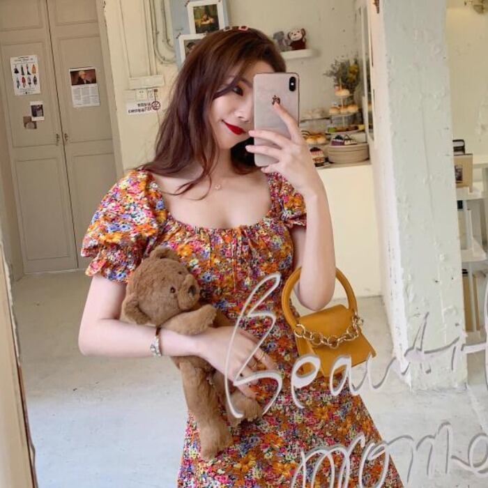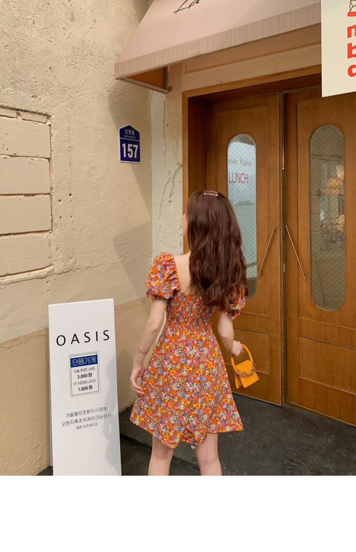 サマースタイルスタンダードスリーブフローラルスカート ウェスト半袖ドレス ショート レトロ ハーフスリーブ 夏物 花柄 ドラファッションホール72712261692