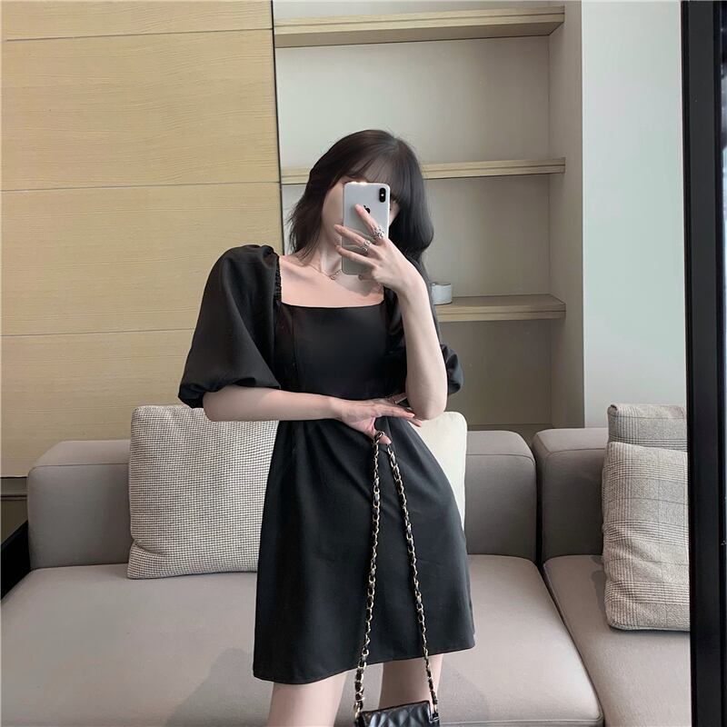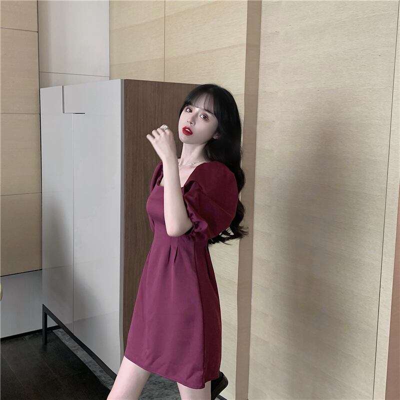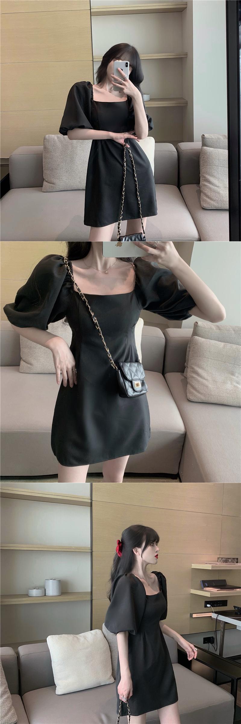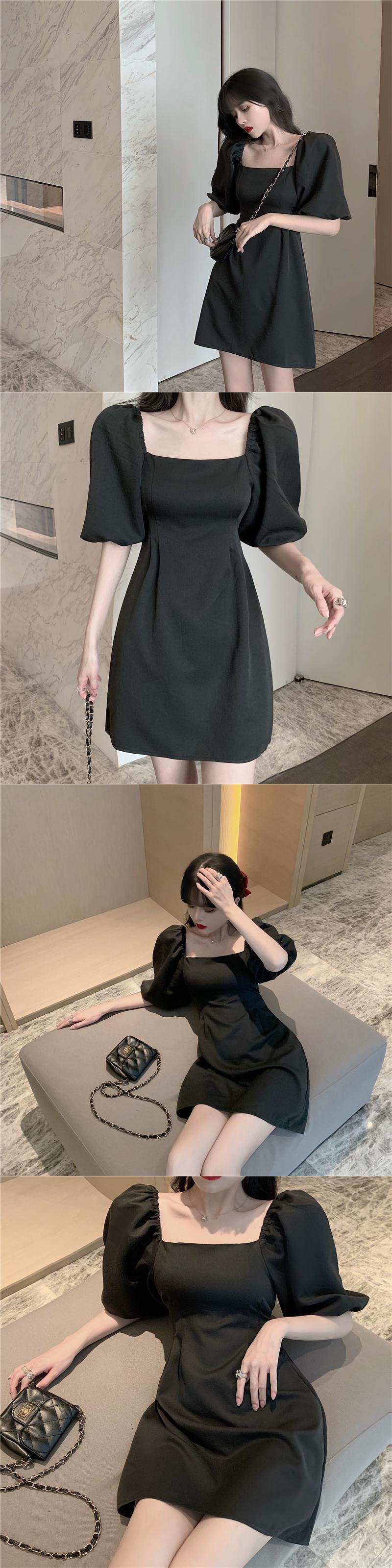 スタンダードカラードレス サマースタイルスリーブ薄手Aラインスカート ショート レトロ 夏物 スクウェア ドラファッションホール12293162444