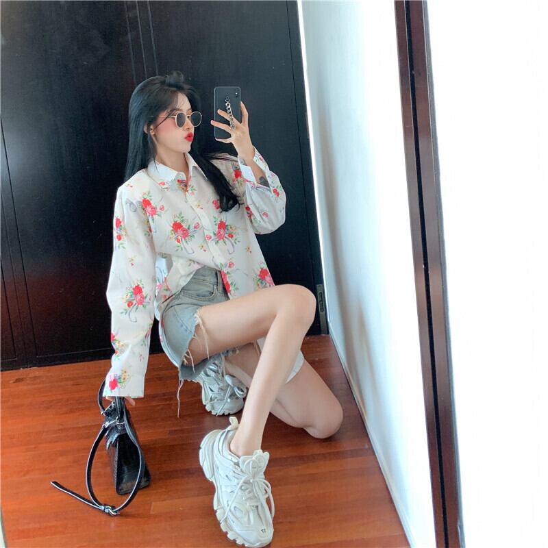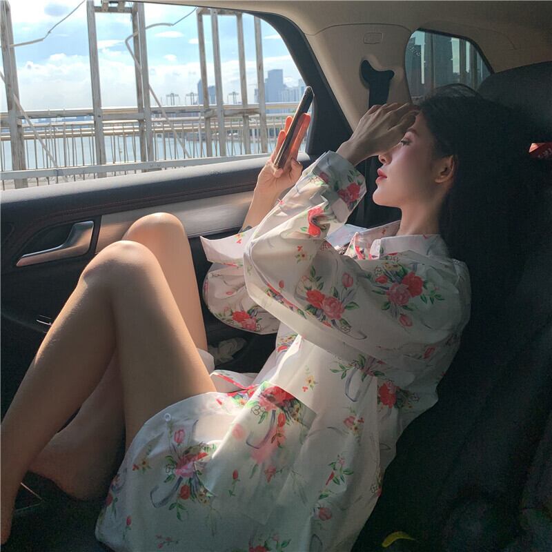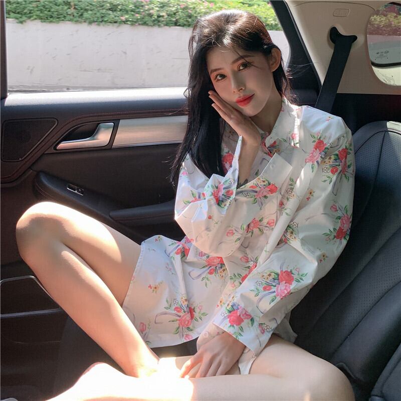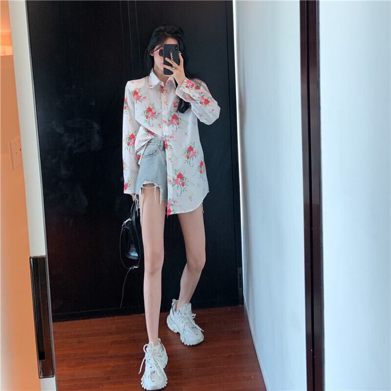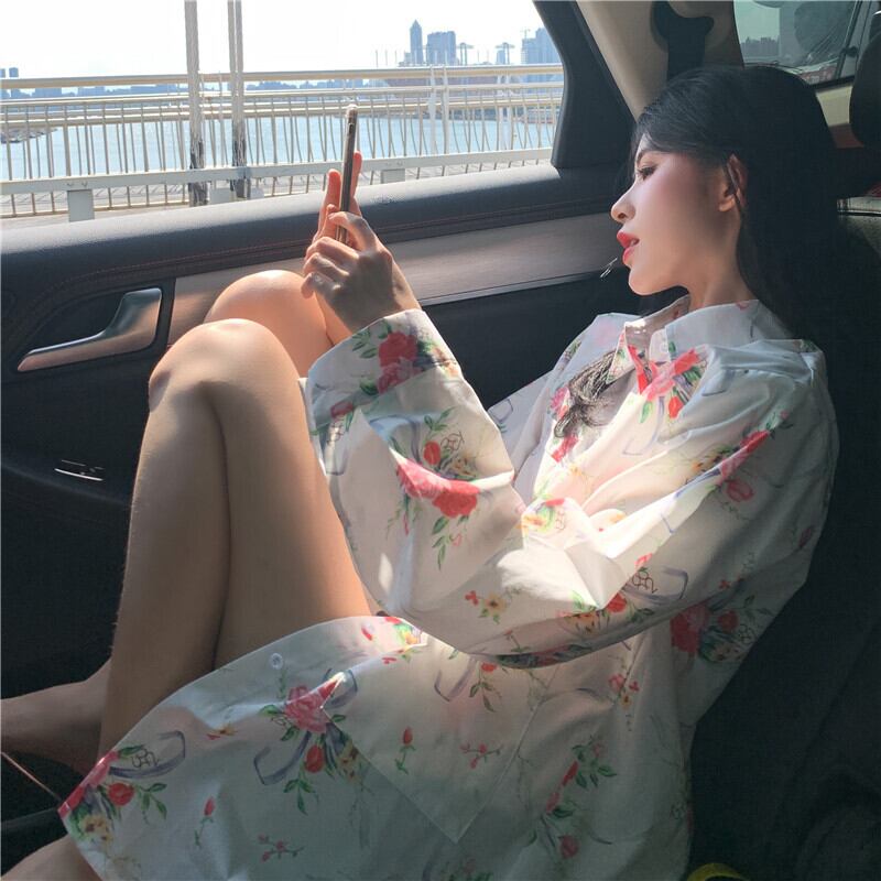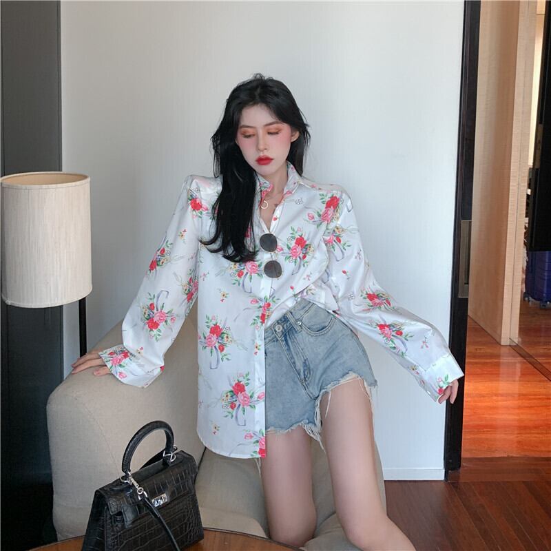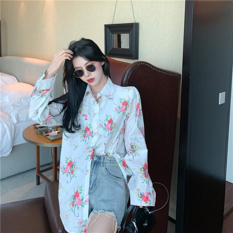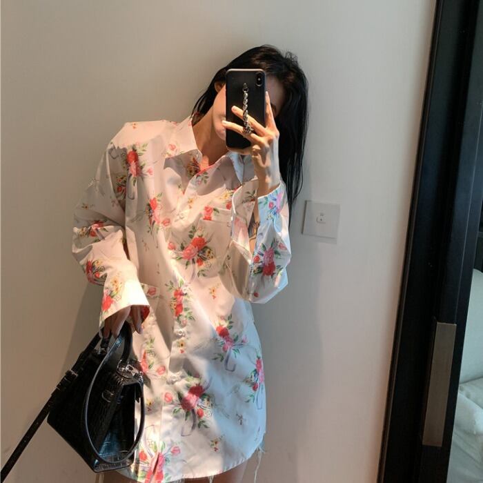 スタンダードスタイルFlowerデザイン プリント柄ルーズシャツ レディースジャケット ロング レトロ フラワーデザイン ドラファッションホール29932628023