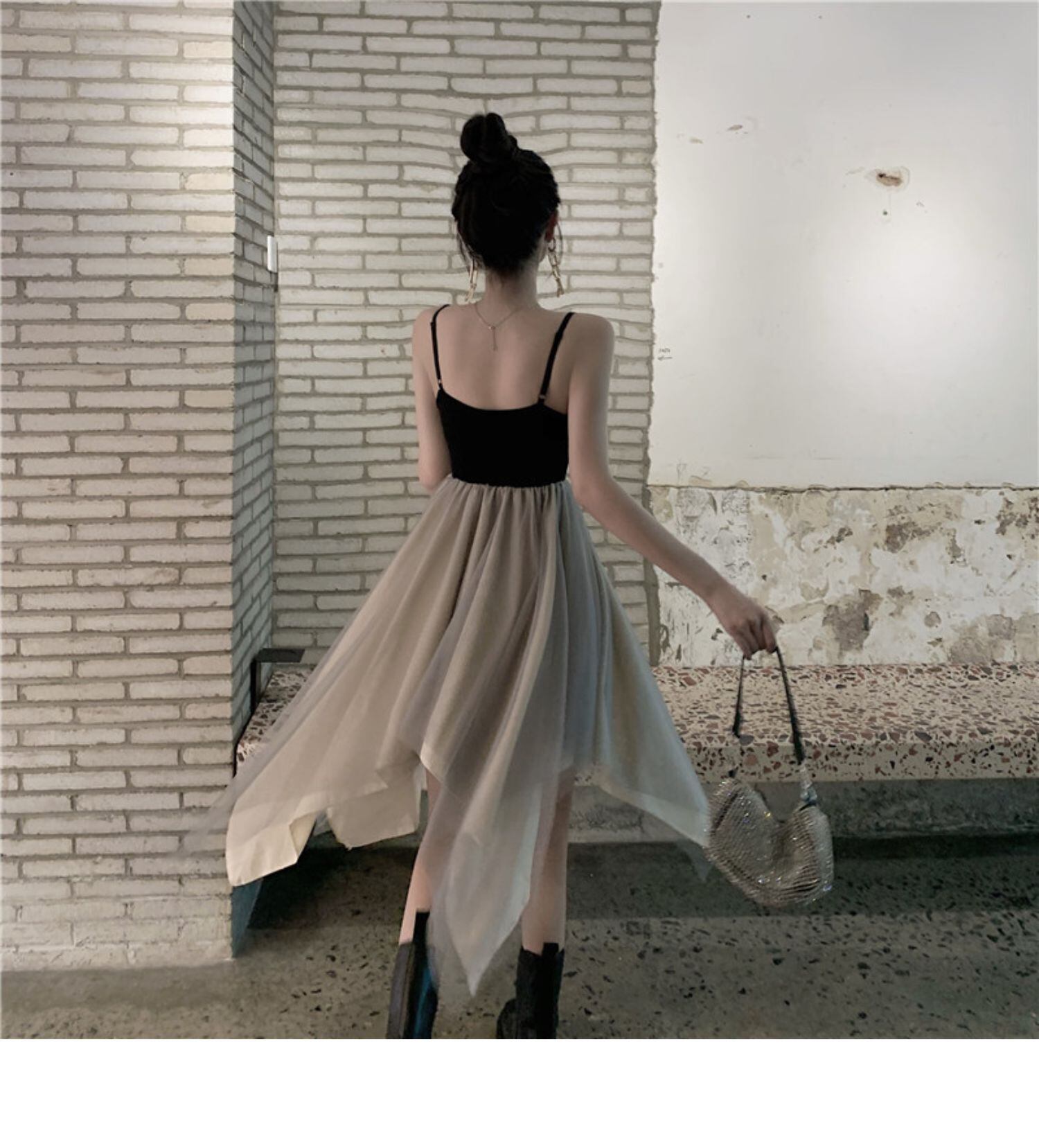 サマースタイルウェストスカート ソリッド カラーブラックドレス 夏物 ソリッドカラー ドラファッションホール15664611028
