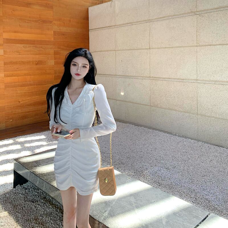 リボンスリムドレス スプリングプリーツスカート 春物 ドラファッションホール19170366233