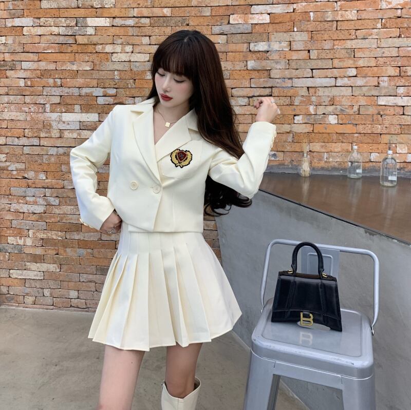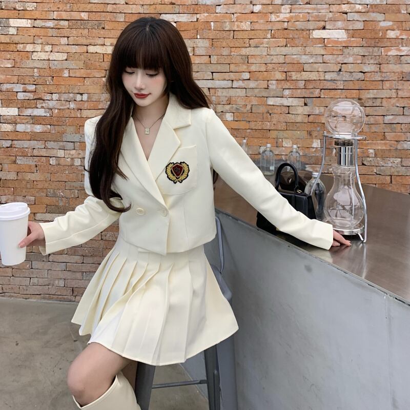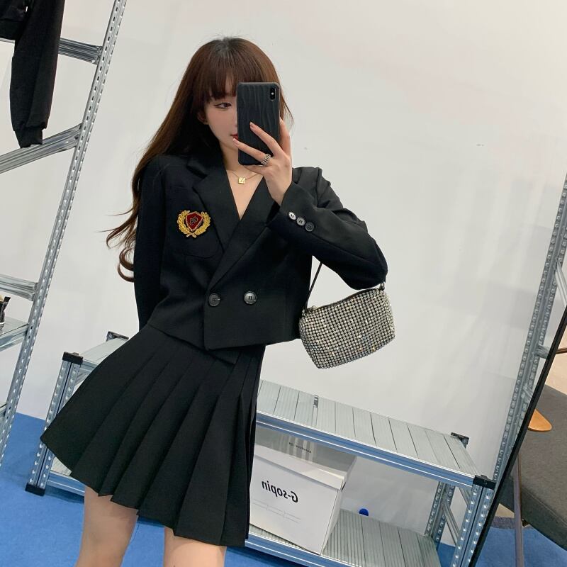 スタイル薄手ショートコート スプリングウェストハイウェストAラインプリーツスカート 春物 ドラファッションホール38870744110