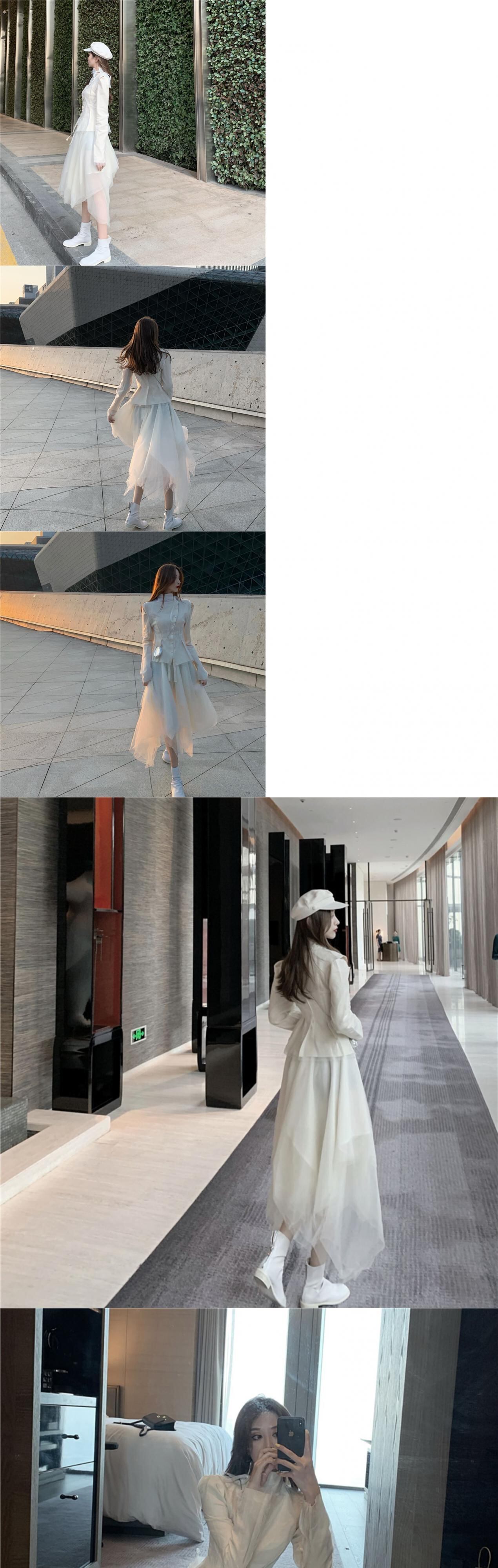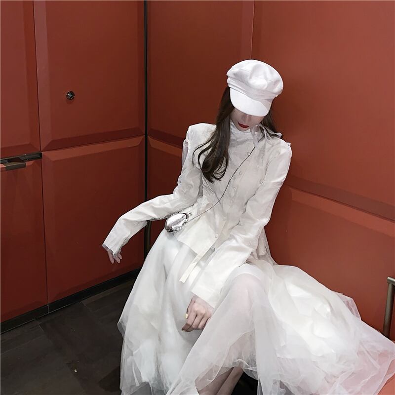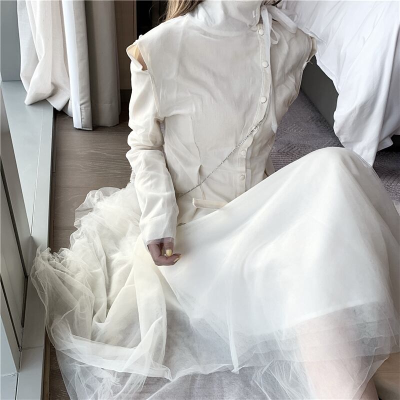 色:クリーミーなホワイトトップ(ほつれデザイン),クリーミーな白いハーフスカート(生のエッジのあるデザイン)