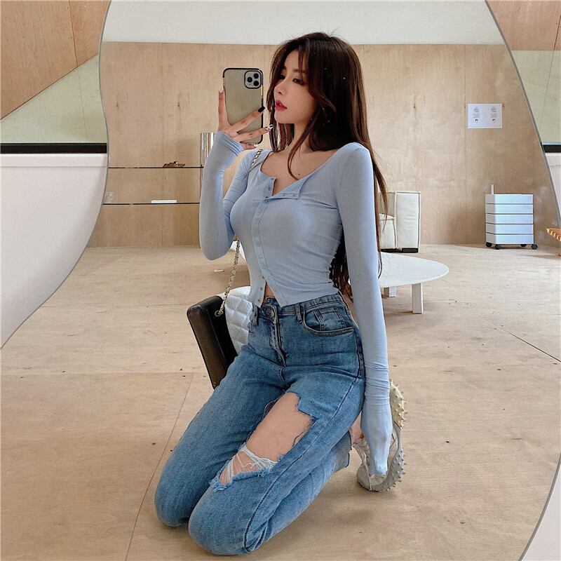 スプリングVネックショートカーディガンハイウェストジーンズ レディース 春物 ドラファッションホール91555589753