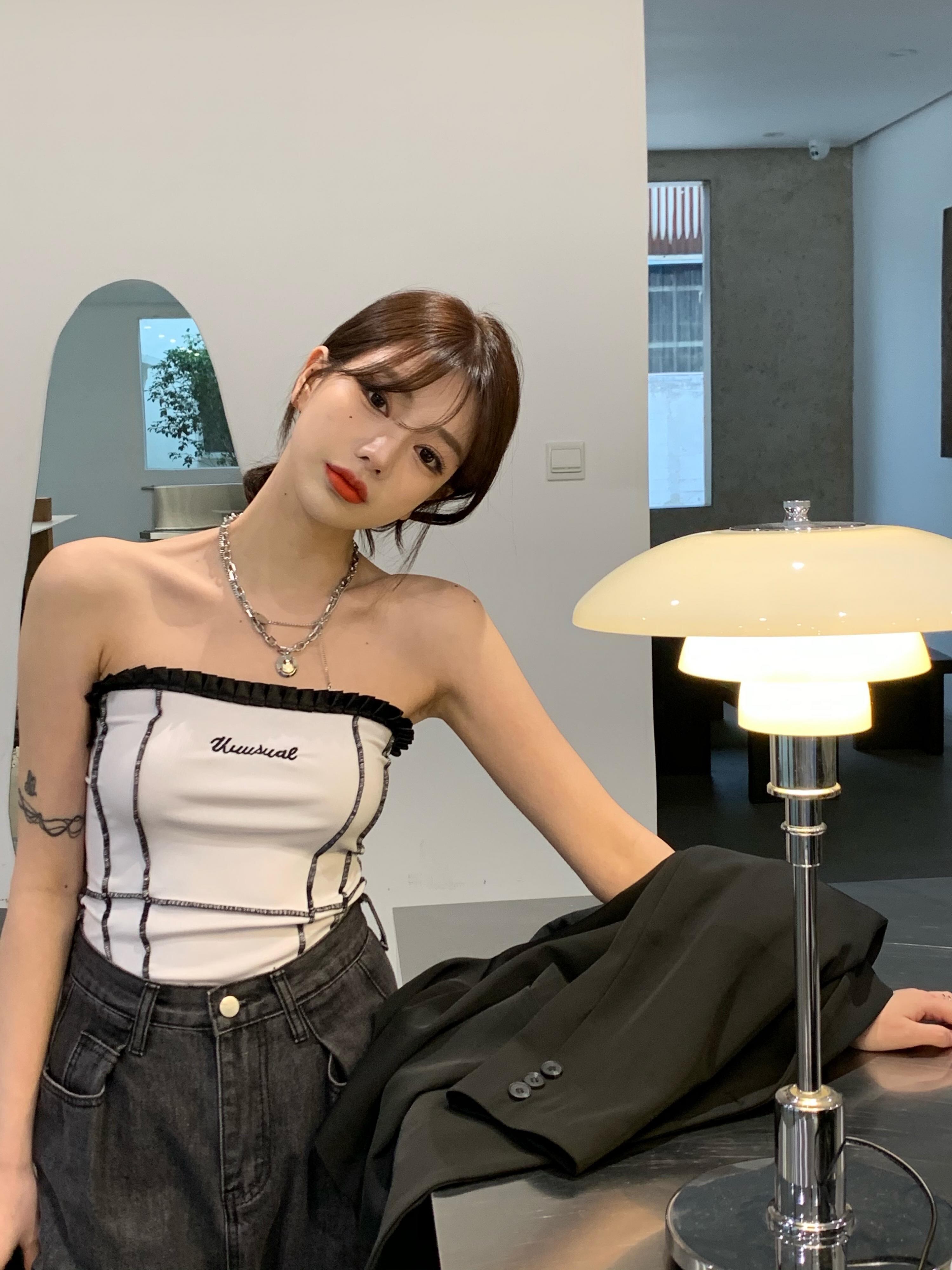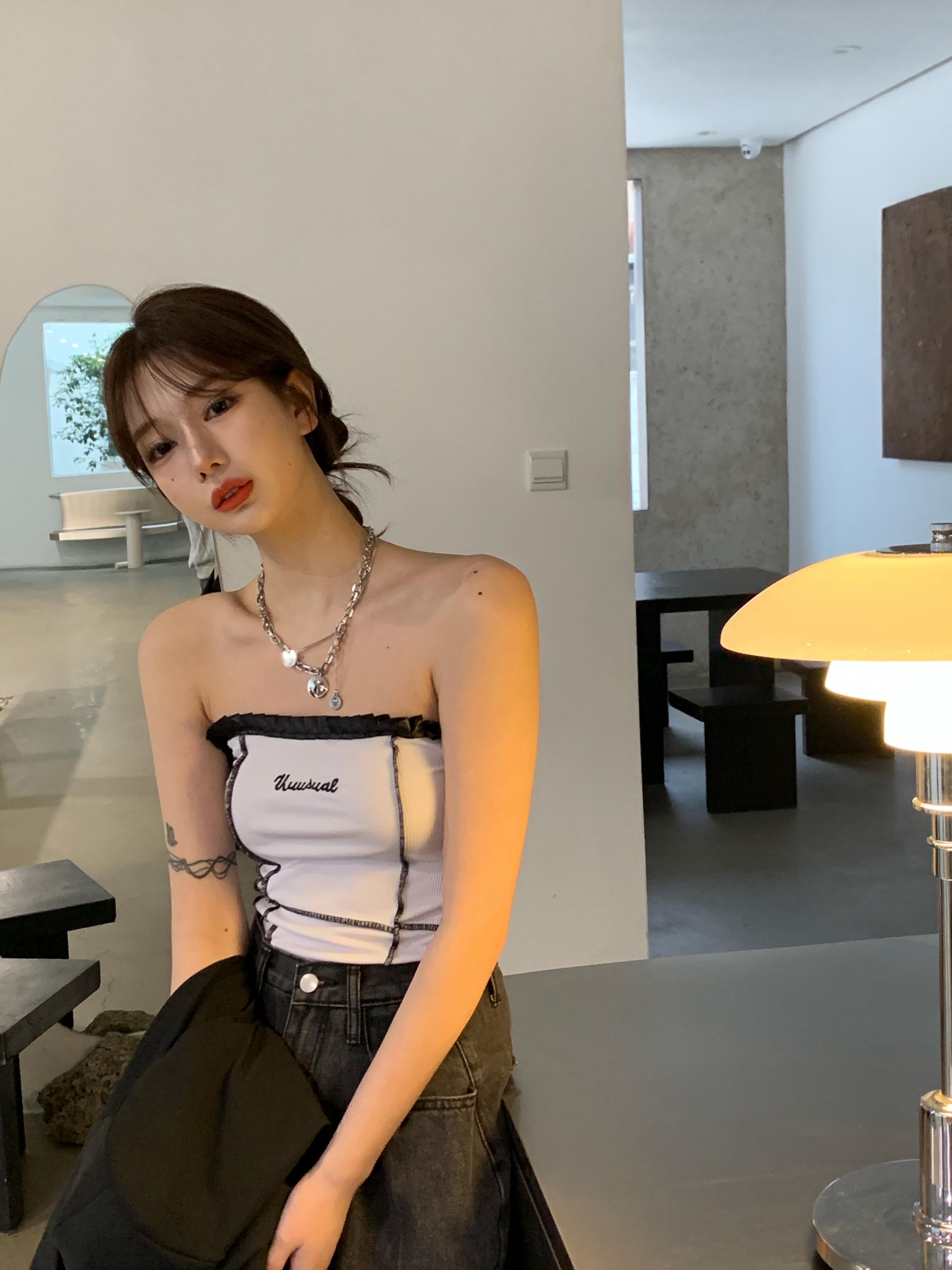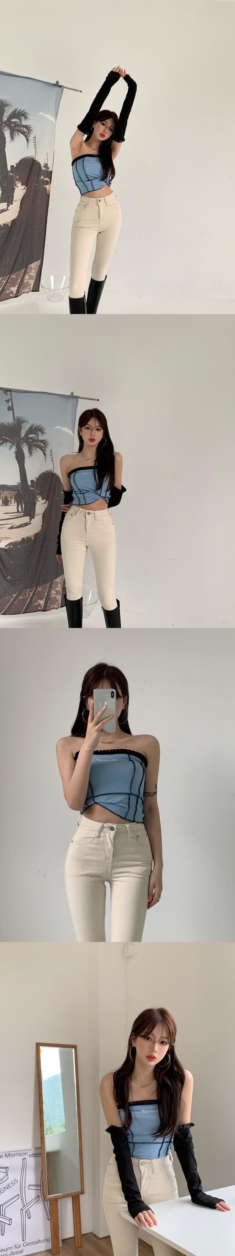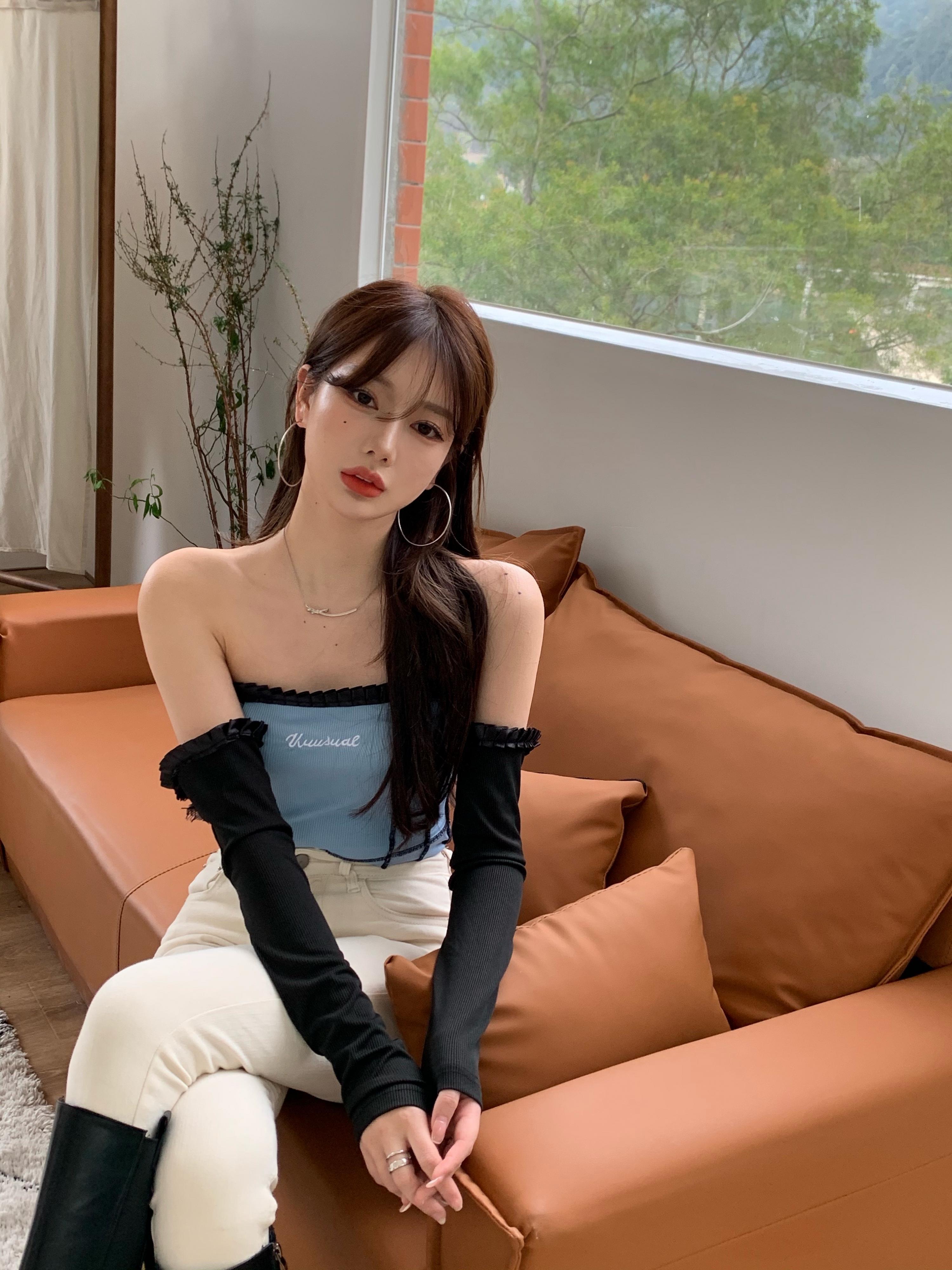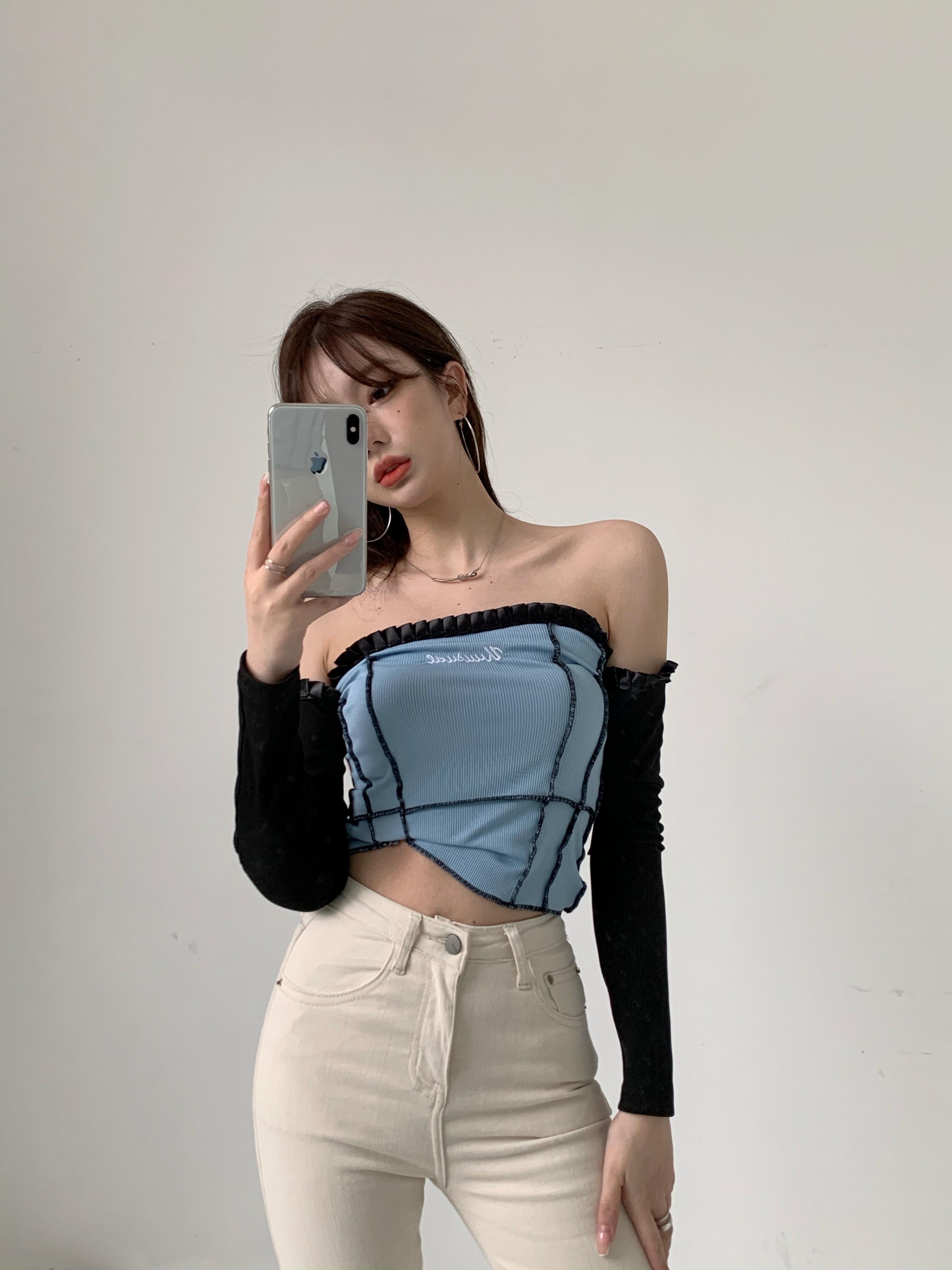 色:白いチューブトップ,青いチューブトップ,レーススリーブ