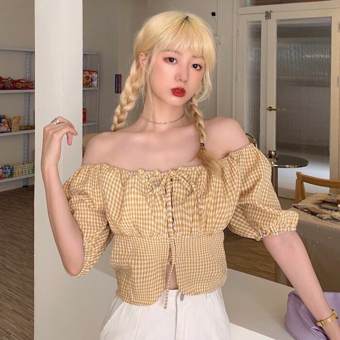 サマースタイルスタンダードショートトップス シャツ レディース レトロ 夏物 ドラファッションホール14022123108
