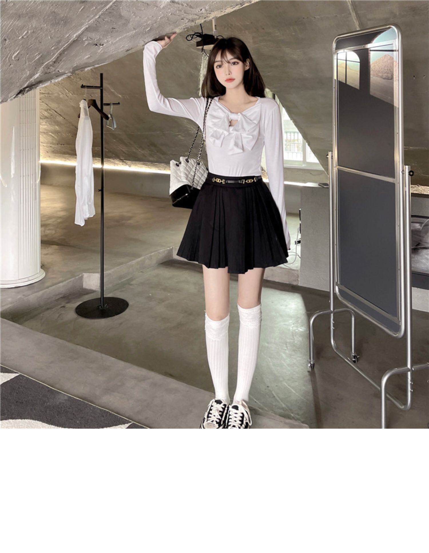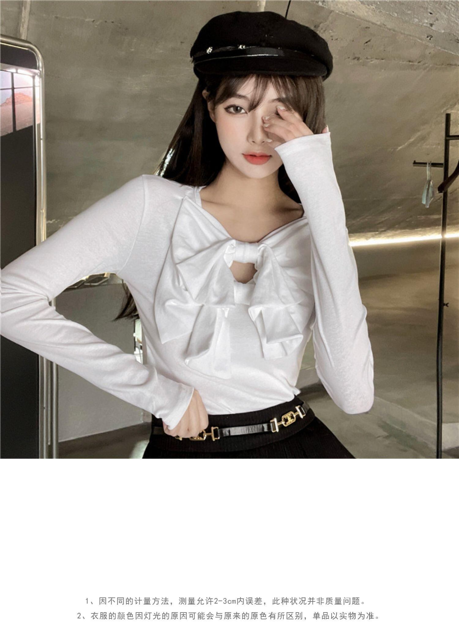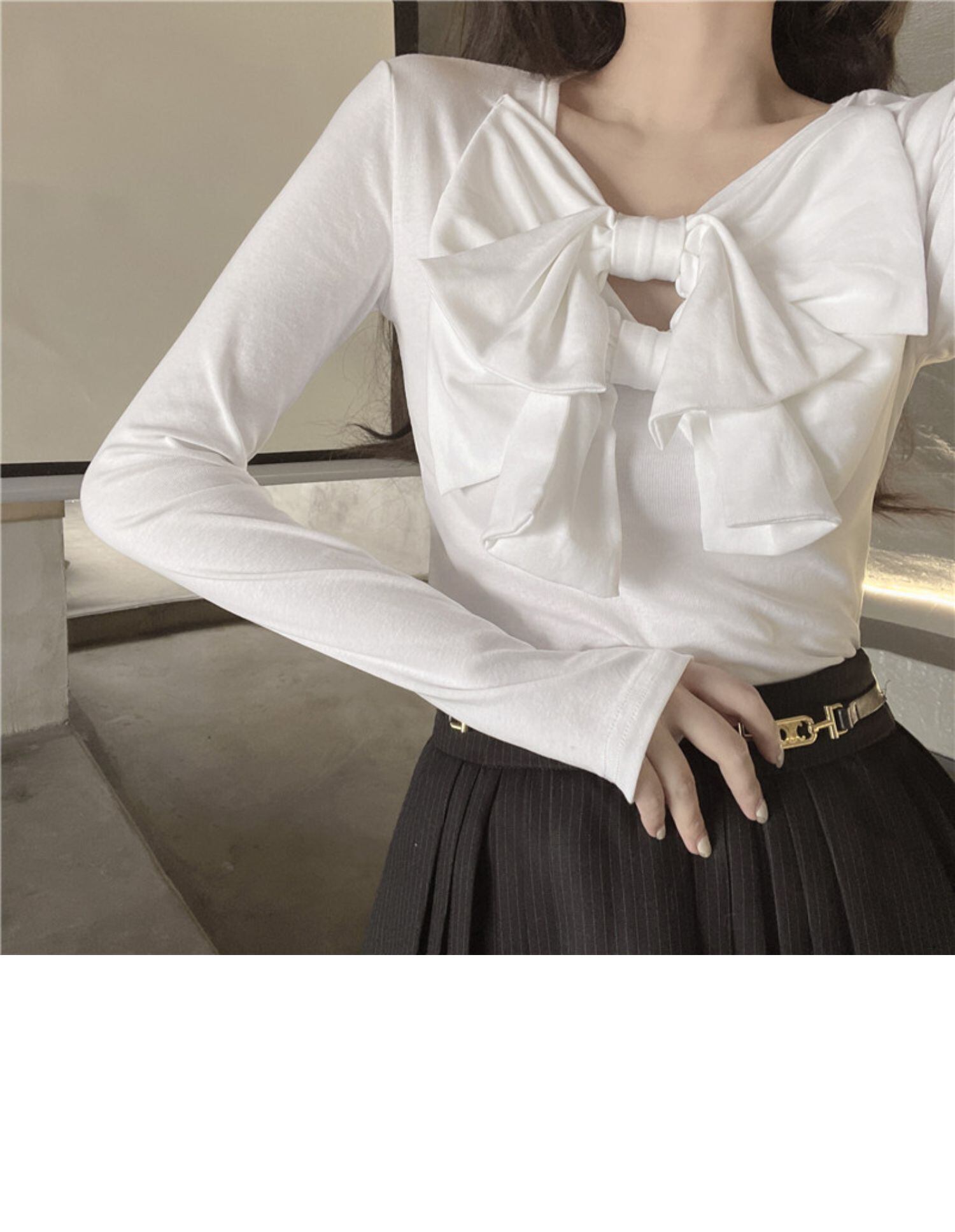 スプリングスリムシャツ レッドトップス Tシャツ レディース ロング リボン 大人ガーリー スウィート キュート カジュアル 春物 ドラファッションホール78233427368